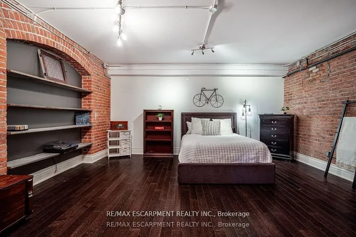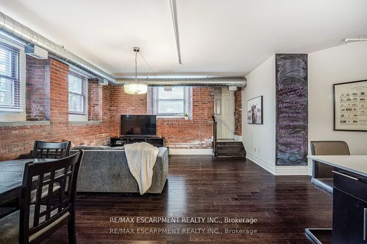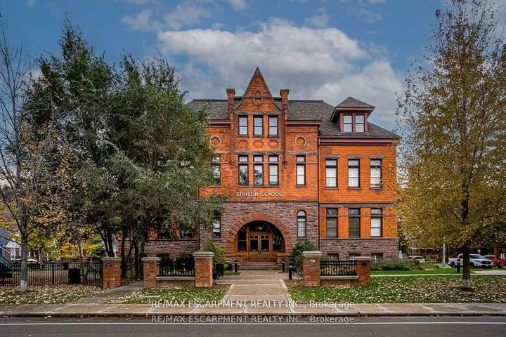Discover a truly distinctive opportunity at the historic Stinson Lofts, where old-world character and modern comfort converge. This rare main-floor corner unit offers exceptional value for its generous square footage, highlighted by a remarkable 28 x 12 private patio with sweeping views of the community playground and the lush Hamilton escarpment. Inside, soaring ceilings, exposed brick walls, and rich hardwood floors preserve the timeless charm of the 1894 Stinson School, while an airy open-concept design provides a bright and inviting flow. The stylish kitchen features quartz counters with a breakfast bar, stainless steel appliances, and in-suite laundry, seamlessly opening to spacious living and dining areas ideal for entertaining. This unique layout features 2 primary suites, the first with dual closets and a modern three-piece bath. The second private suite has its own entrance off the dining area through french doors, with a large versatile accessway that is perfect for an office or extra storage. Believed to have once been the kindergarten classrooms of the original school, this spacious suite includes built-in shelving and a fall bathroom. It’s time to move into this one-of-a-kind residence that offers a rare blend of heritage elegance, modern functionality, and unbeatable value. Includes one exclusive parking spot, P21.