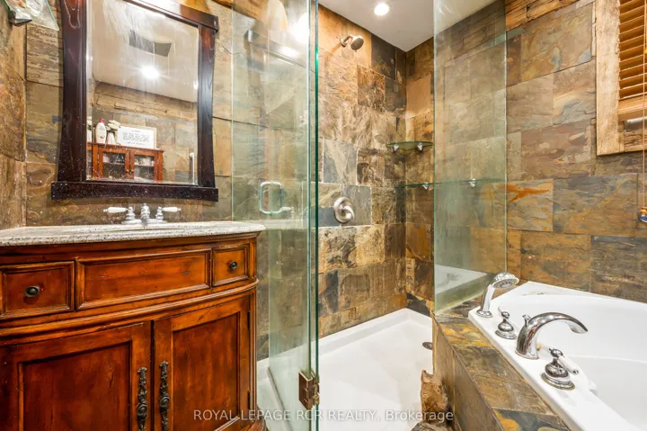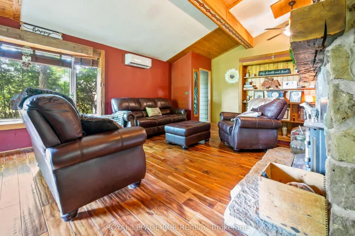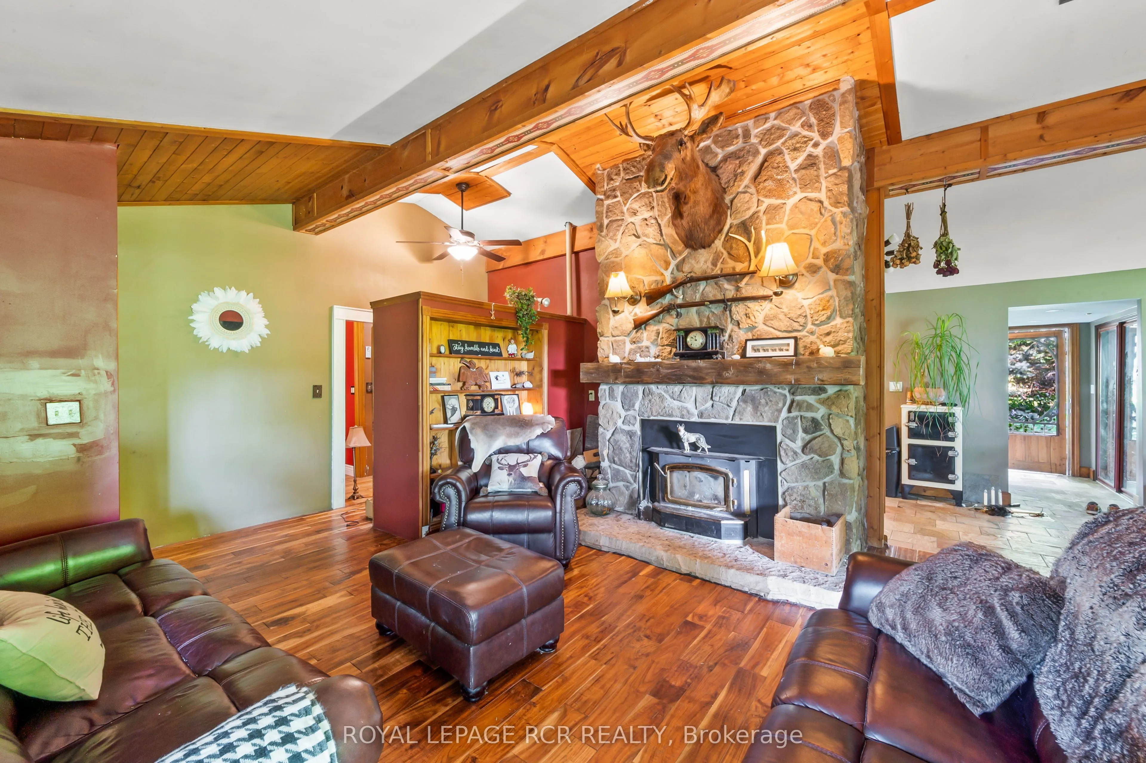 Tucked away in the coveted Roman Lake community, this rustic yet refined bungalow offers the ultimate private escape. Whether you’re searching for a peaceful weekend hideaway or a place to call home year-round, it’s a setting that soothes the soul. Wake to serene lake vistas framed by mature trees, where deer, birds, and other wildlife create a living backdrop. Inside, you’re welcomed with soaring vaulted ceilings, an updated kitchen, and an inviting blend of hardwood and slate underfoot. A built-in bar area takes full advantage of sweeping views, making every coffee or cocktail feel special. In the spa-inspired bathroom, heated floors add a touch of indulgence, while a corner jacuzzi-style tub and sleek glass walk-in shower promise relaxation at the end of the day or a refreshing start in the morning. Keep cozy with two fireplaces or rely on the efficiency of a forced air furnace when the seasons shift. Multiple windows let in generous natural light, accenting the warm wood finishes throughout. Step outside and the magic continues. Expansive decks, a private patio, and a charming detached log cabin with hydro provide endless opportunities for hosting, lounging, or simply enjoying the calm. One of the practical perks of the home is the hookup for a backup generator. Situated just minutes from the village of Hillsburgh, which offers small-town charm with welcoming shops, local eateries, and a friendly, walkable main street. For commuters, the location is just a short drive to Erin, Orangeville, and Guelph, with easy access to Georgetown, Milton, and Brampton, making it a comfortable commute to the GTA.
