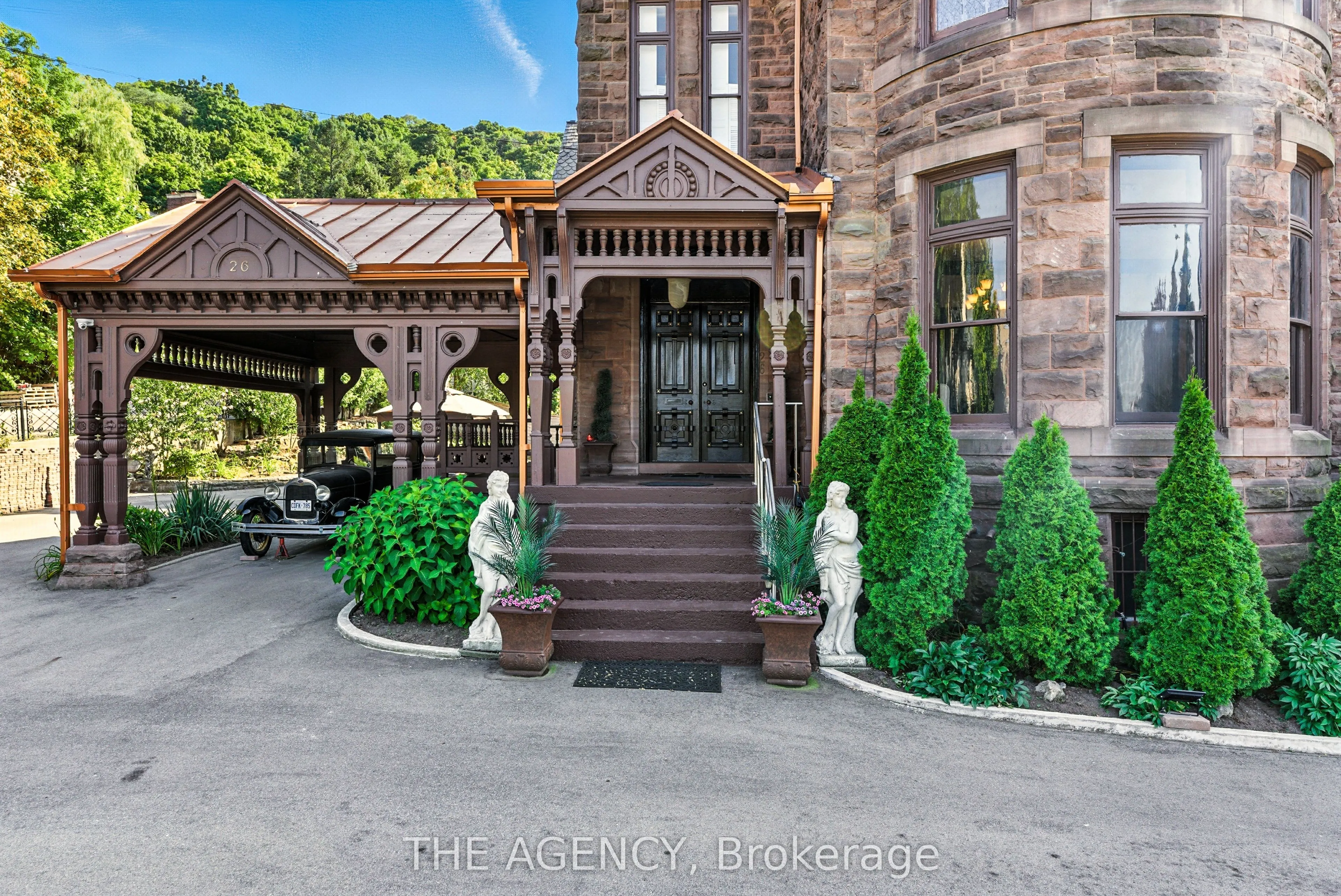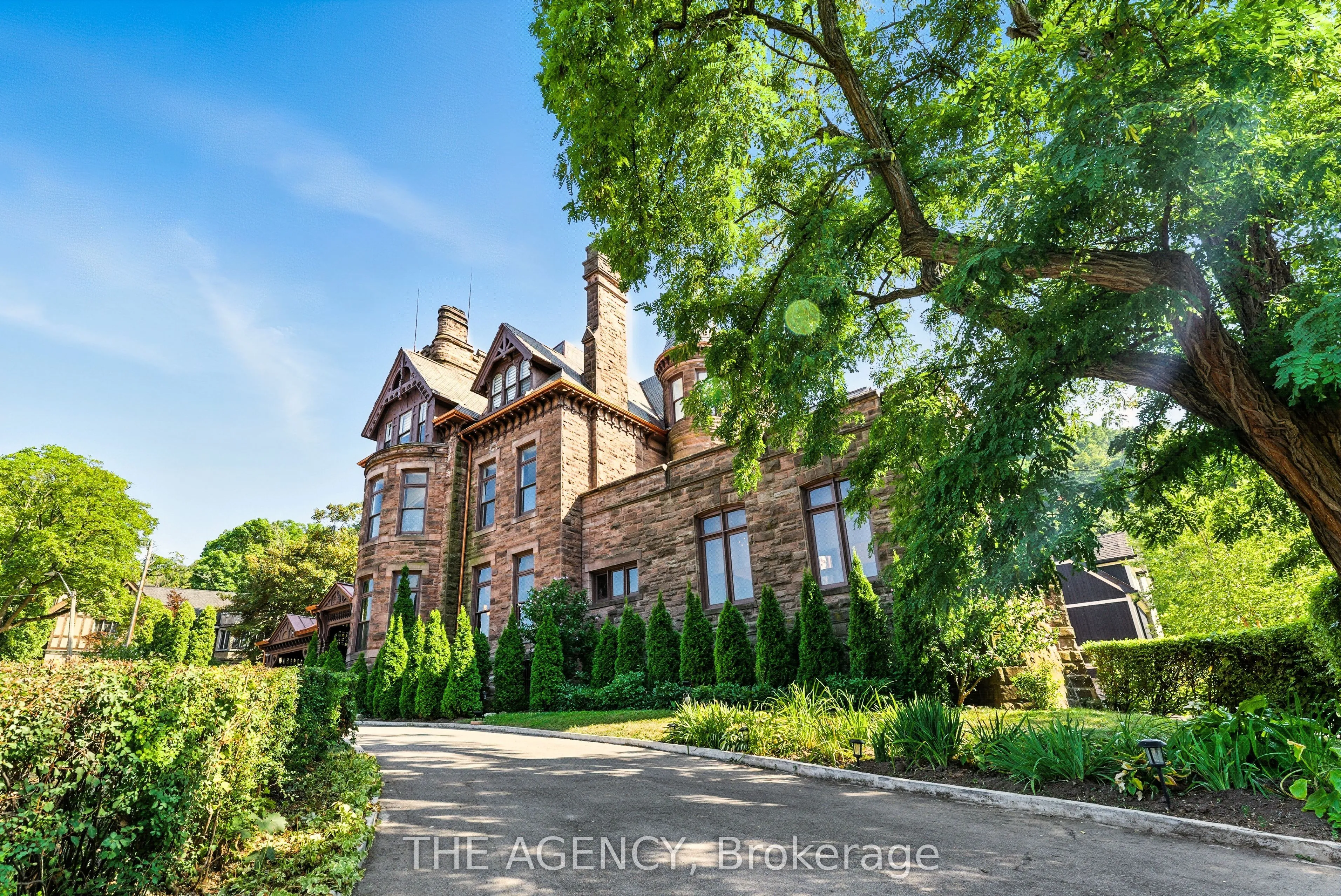 A rare opportunity to claim one of Canadas most storied residences in Hamilton’s prestigious Durand neighborhood, Ravenscliffe Castle [1881] is a Romanesque Gothic masterpiece by celebrated architect James Balfour, known for The Scottish Rite and Old City Hall, crafted in imported Scottish stone with a turret and a five storey tower that rises above the treetops, visible for miles. Within its 12,749 square feet, the castle unfolds across 26 rooms [12 bedrooms, 8 bathrooms, 8 fireplaces], graced by soaring ceilings, ornate plasterwork and ceiling medallions, rich wood paneling and wainscoting, a grand staircase, and beautifully preserved staff quarters. Once home to prominent Hamilton families, including Ontario’s former Lieutenant Governor Sir John Morrison Gibson, this landmark blends grandeur, history, and architectural significance in equal measure. More than a home, it is a legacy, ready for its next chapter.