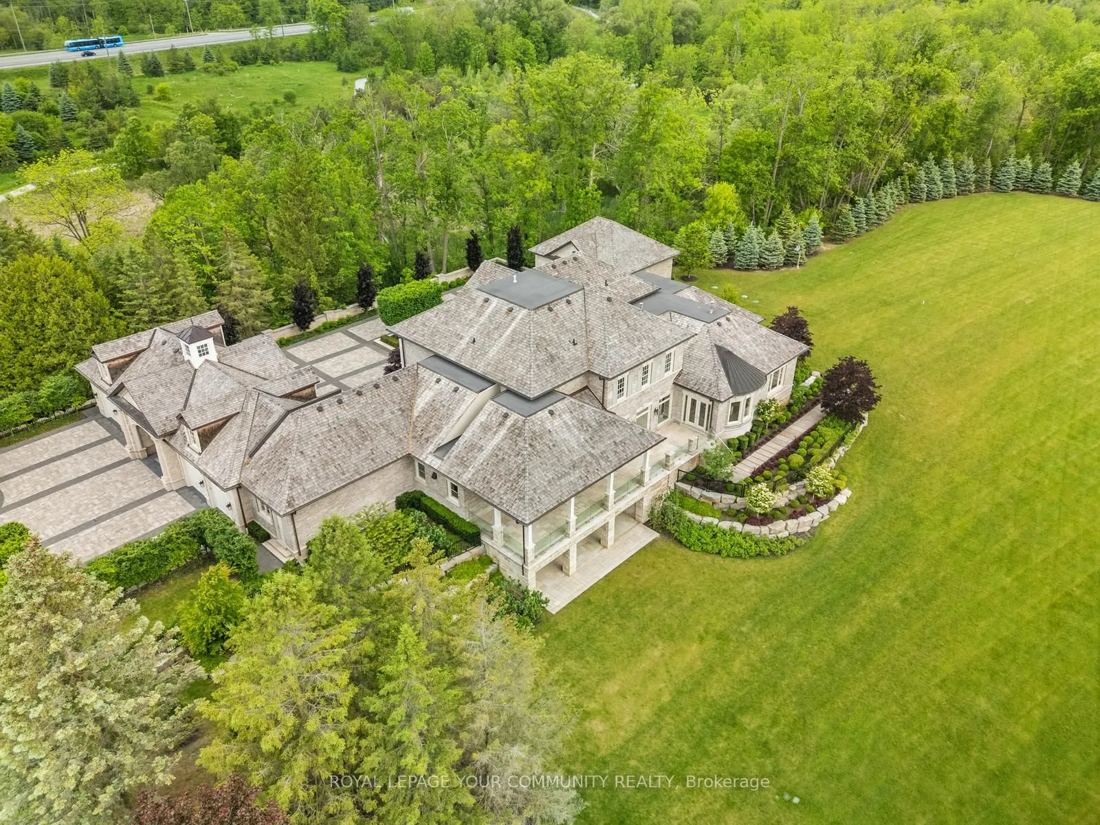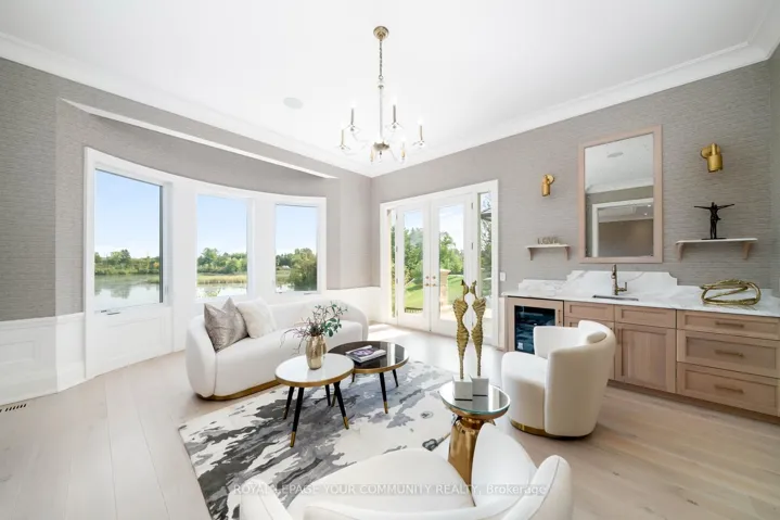 The Sanctuary! Spectacular family compound and entertainers estate on 35+ acres with private 15-acre spring-fed pond. Gated entrance, winding drive, circular motor court, and porte-cochere create an impressive welcome. Over 13,000 square feet of meticulously crafted living space with the finest materials and exceptional attention to detail. Main floor principal suite features grand entrance, his & hers dressing rooms, private office, and bar. Gourmet kitchen with top-of-the-line appliances, large windows, and terrace/pond views. Great room with marble fireplace and walk-out to terrace. Dining room with glass-encased wine storage and courtyard view. All bedrooms with ensuites’ and walk-in closets. Finished walk-out basement with in-law suite potential. Hard surface floors throughout. 7-car garage, 27 parking spaces. Fully landscaped, magnificent water views, and the privacy. Walking distance to St. Andrews College & St. Anne’s School. Close to Aurora Village amenities. A rare offering in a prestigious location!