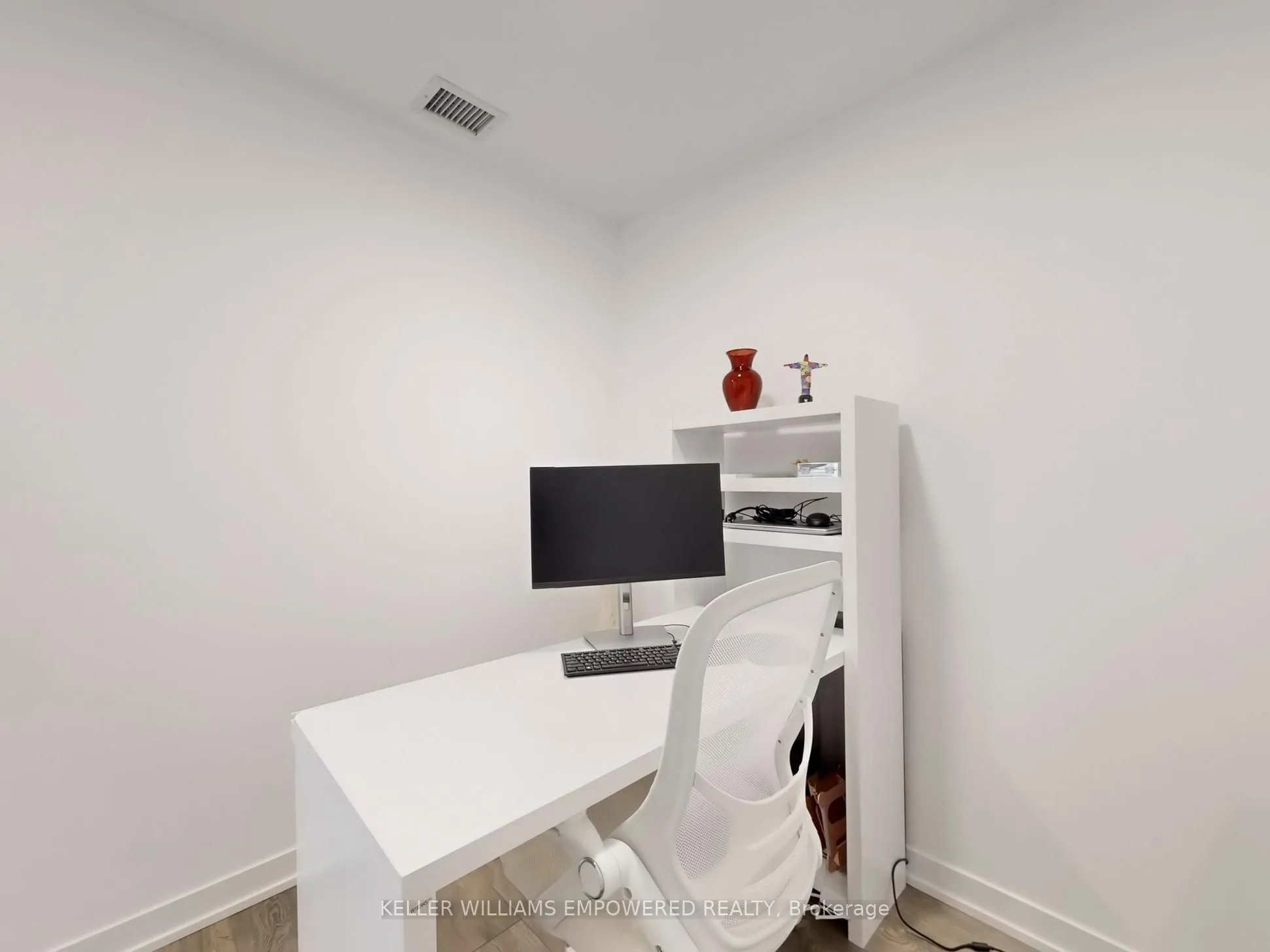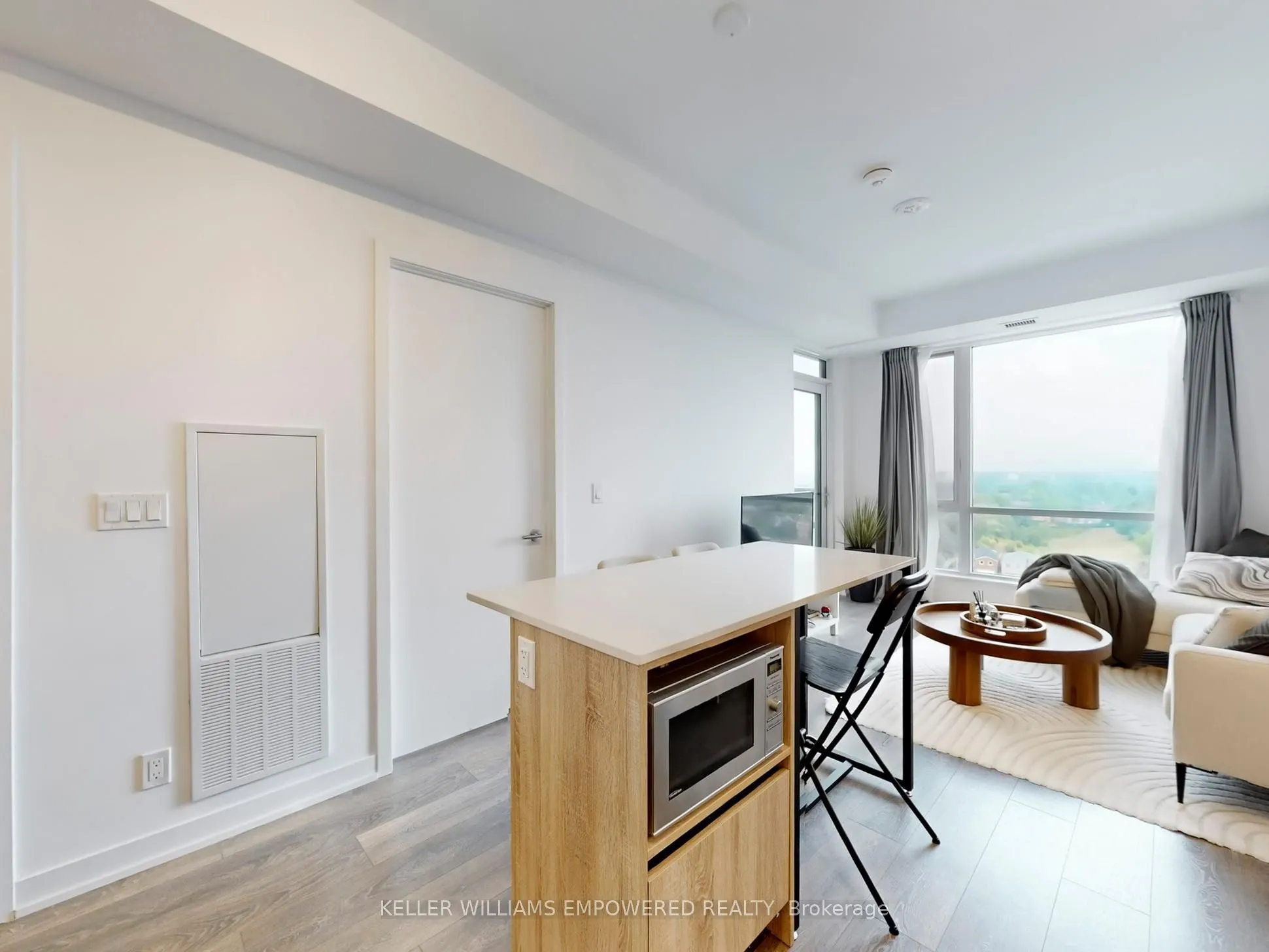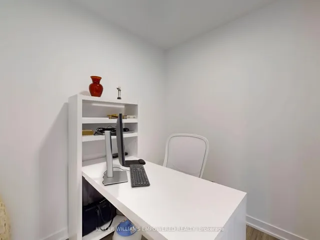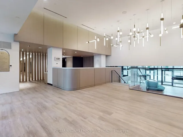 Surrounded by the quaint comforts of South Thornhill, this property combines stylish design, functional living, and access to an outstanding community. Residents will enjoy everyday conveniences with shops, cafés, restaurants, schools, lush parks, local transit, commuter highway networks such as Highway 407 and Highway 7, and The Promenade Mall all just moments away. Inside, the suite offers a bright and functional 1-bedroom plus den layout. The open-concept kitchen is finished with quartz countertops, premium appliances, ceramic tile backsplash, soft-close cabinetry, and a central island with dining space. The kitchen flows into the living area, where floor-to-ceiling east-facing windows bring in natural light and provide a walk-out to the private balcony. The primary bedroom features a large window wall and a walk-in closet with built-in organizers and lighting. The 4-piece bathroom is beautifully appointed with porcelain tile flooring, an integrated vanity sink with storage, frameless mirror with sconce lighting, and a deep soaker tub with full tile surround. A semi-open den offers flexibility as a home office or reading nook, while in-suite laundry with stacked washer and dryer ensures day-to-day convenience. Residents of this community have access to an exceptional collection of amenities including a fitness centre with yoga studio, multi-sport gymnasium with basketball court, co-working and meeting rooms, family and party spaces, and a seventh-floor terrace with BBQs, lounge areas, and a play zone for children. Outdoor living is enhanced by a landscaped community courtyard, fully fenced dog run, pet wash station, and 24/7 concierge. This property also includes one owned parking space and one locker for added convenience.