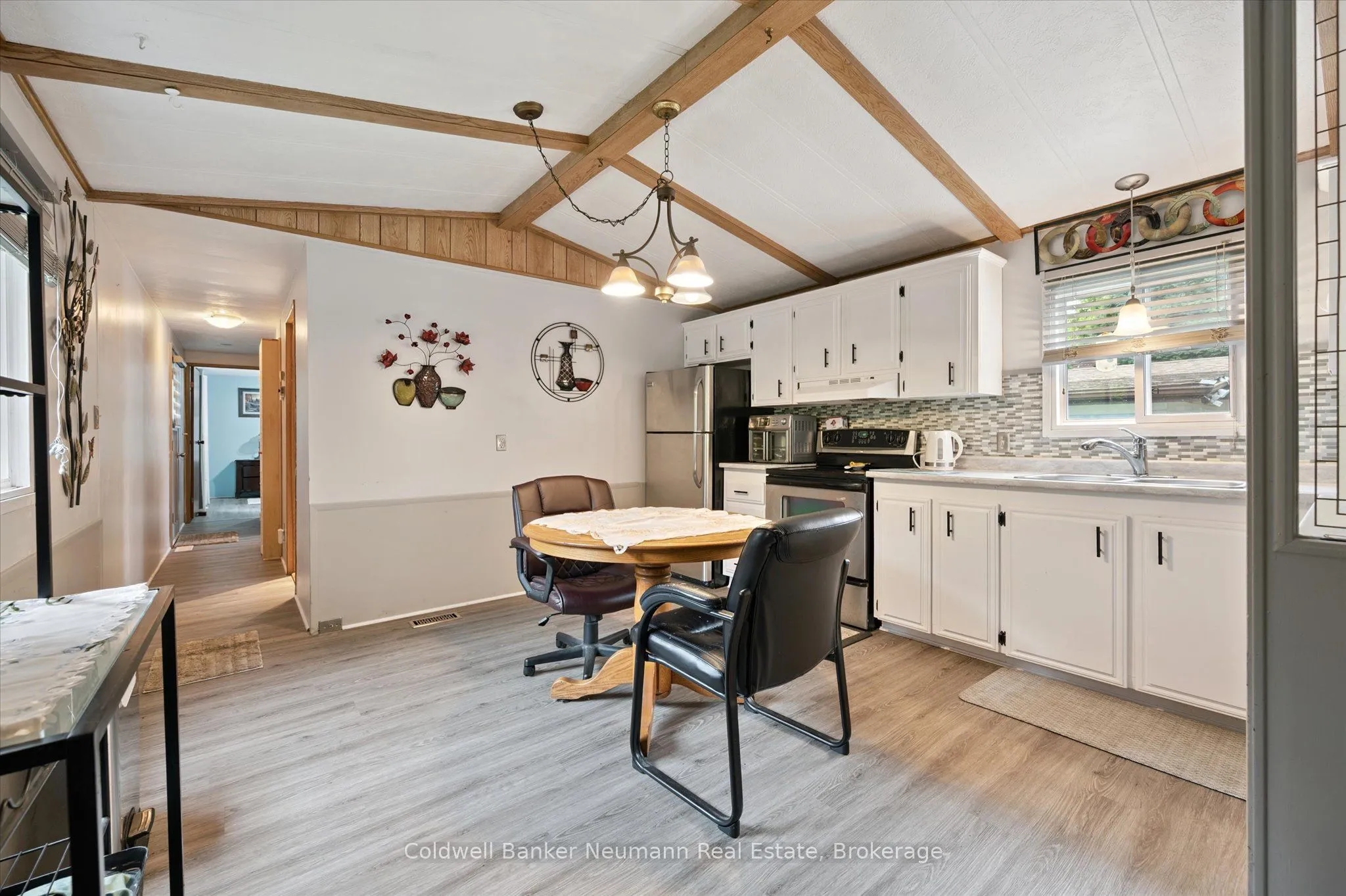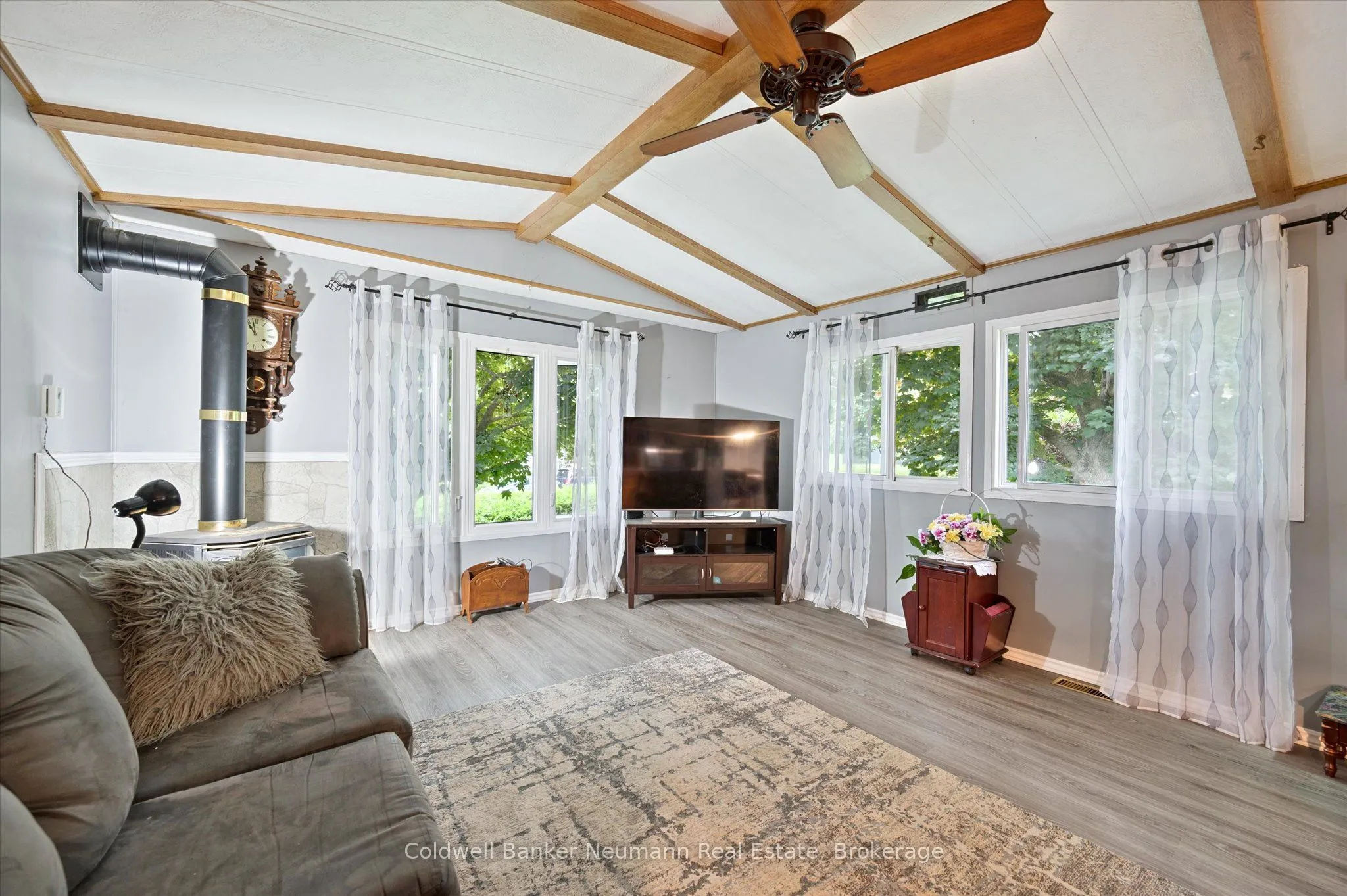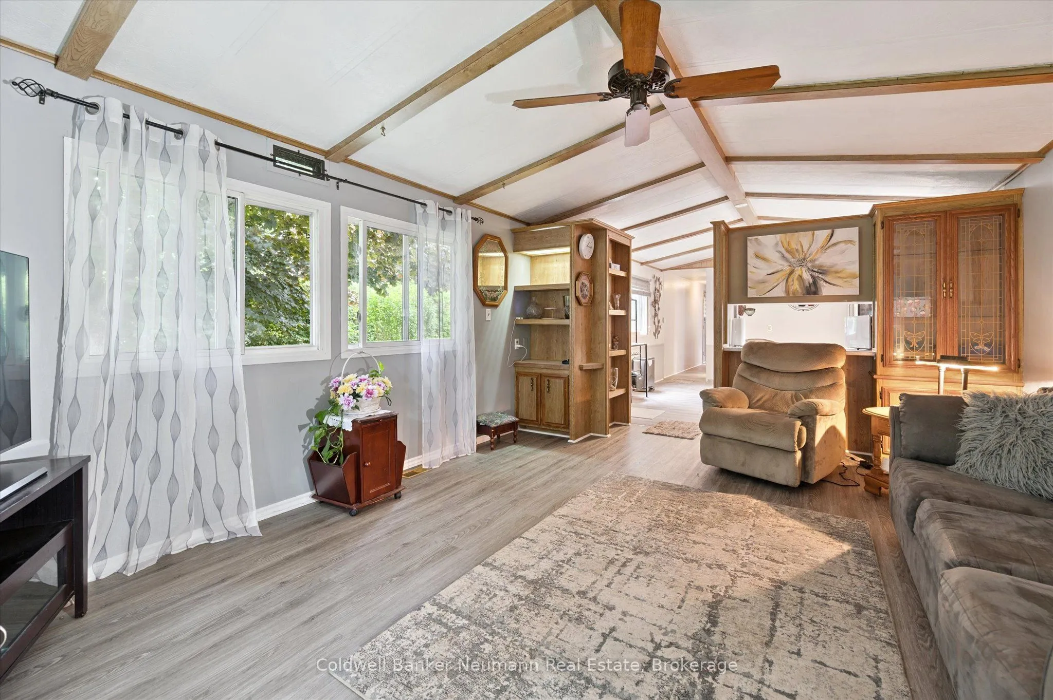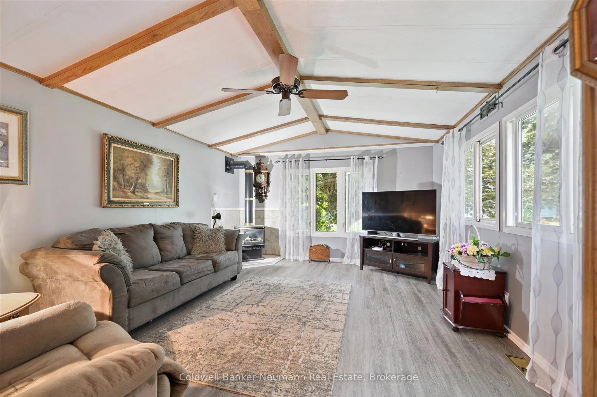Privacy plus!! This well maintained 2 bedroom bungalow is surrounded by an 8 foot hedge, which allows ultimate privacy from others! The only thing to be seen from the road is the double paved driveway and shed. Inside you will find a generous size eat-in kitchen, living room with propane stove, updated 3 piece bathroom combined with laundry and a primary bedroom with wall to wall closet. The exterior vinyl siding was painted about 2 years ago, furnace and central air is about 7 years old, the windows and roof about 10 years ago. Located on a street with great neighbours! This modular home is located within Beverly Hills Estates, a residential modular home park, with a community centre and scheduled events for residents to join (or not!) All homes are owner occupied-no rentals! Come out and see this wonderful affordable home in a great community!