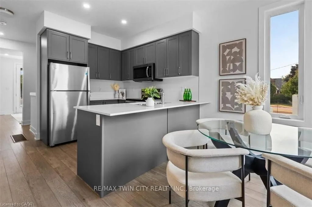 Welcome to this beautifully designed 2-bedroom, 2-bathroom condo-townhouse, perfectly located in Uptown Waterlooone of the regions most vibrant and walkable communities. Just minutes from the University of Waterloo, Wilfrid Laurier University, LRT transit, downtown Kitchener, Grand River Hospital, and the Spur Line Trail, this home offers unmatched convenience with access to trendy restaurants, shops, and cafes right at your doorstep. Inside, youll find a bright, modern interior finished with grey vinyl plank flooring and large windows that let in an abundance of natural light. The open-concept kitchen is a true standout, featuring sleek quartz countertops, a gorgeously designed tile backsplash, and striking navy cabinetry that adds a bold, designer touch. The functional layout offers privacy and comfort with one bedroom on each level. The lower-level bedroom boasts a spacious walk-in closet, while two well-appointed bathrooms make daily living and entertaining a breeze. Step out onto your private balcony, a perfect spot to enjoy your morning coffee or unwind in the evening. Whether you’re a professional, student, downsizer, or investor, this home is a rare opportunity to own a sophisticated space in one of Waterloos most sought-after neighborhoods.