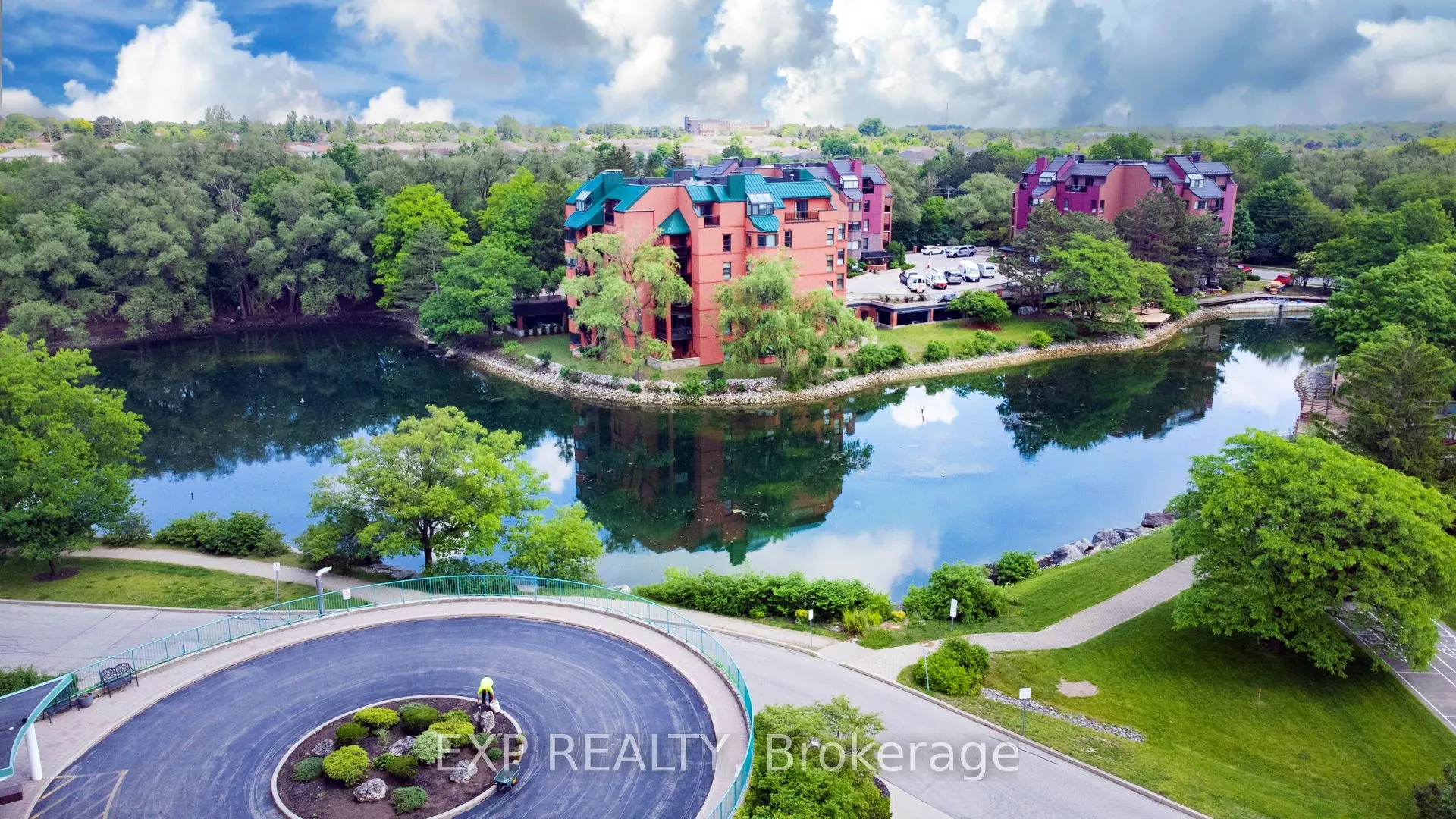 This beautifully maintained 1,760 sq ft condo at 54 Blue Springs Drive, Unit 41 offers a rare opportunity to own in one of Waterloos most peaceful and picturesque communities. Designed for comfort and flow, the open-plan layout boasts multiple living and dining spaces, perfect for entertaining or quiet evenings by the fireplace. Oversized windows flood the space with natural light and showcase stunning views of the surrounding pond and forested trails. The thoughtfully designed galley kitchen features white cabinetry, granite countertops, and a stylish tile backsplash. Step out to the private balcony and enjoy coffee or cocktails while surrounded by birdsong and gentle breezes. With two spacious bedrooms, two bathrooms, and in-suite laundry, this home offers the ideal balance of style and practicality. The well-managed building includes underground parking, a storage unit, guest parking, BBQ area, and private trails, all on a beautifully landscaped property with water features. This is the ideal lifestyle for downsizers, professionals, or anyone seeking low-maintenance, nature-connected living without compromise.