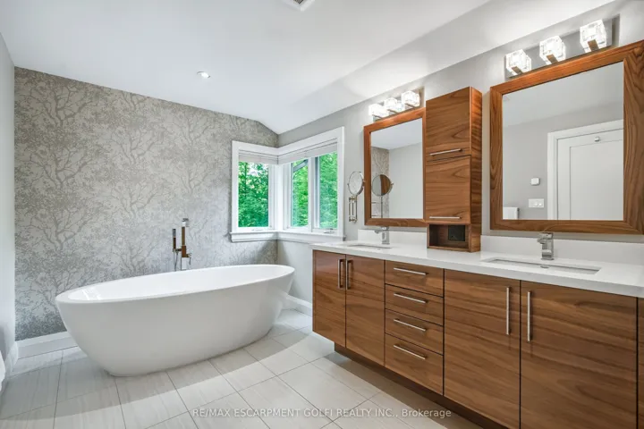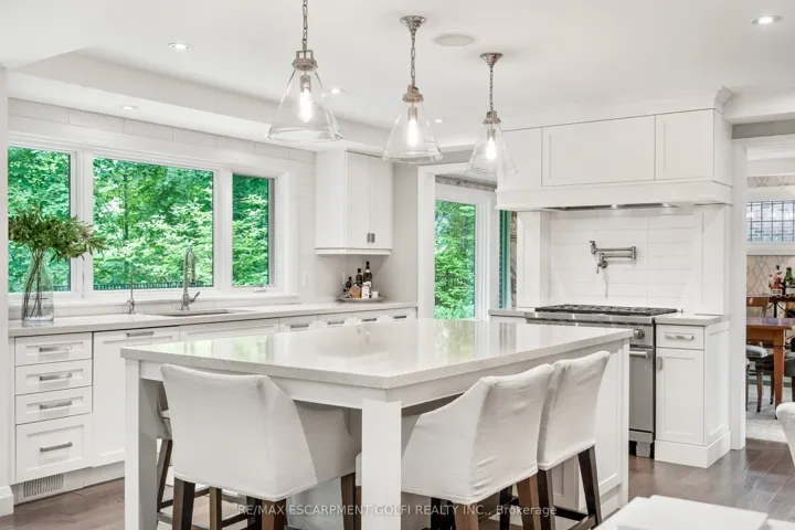 Welcome to unparalleled luxury and sophistication. With meticulous attention to detail throughout, this is an extraordinary opportunity for the discerning buyer who values precision, quality & timeless design. Nestled in one of the citys most prestigious enclaves & backing onto the Royal Botanical Gardens Forest, this 5 bedroom, 5 bathroom residence offers over 4,100sqft of refined living where natural beauty meets exceptional craftsmanship. Every element has been thoughtfully curated from hand-selected finishes to custom millwork. The main floor features a gourmet chef’s kitchen outfitted with Wolf, Sub-Zero, and Miele appliances, generous prep space, a large island with seating, & an open layout that flows seamlessly into the living and dining area all framed by enchanting forest views. Additional main floor highlights include an executive office with a separate entrance to a covered porch, a spacious mudroom with heated floors, custom cabinetry & direct access from the tandem double-car garage. Upstairs, the serene primary suite is a true retreat, complete with a gas fireplace, spa-inspired ensuite with heated floors & a walk-in closet. A second-floor laundry room with heated floors, along with heated flooring in every bathroom, adds comfort & convenience throughout. The lower level is equally impressive, featuring a guest suite, gym, rec/media room, kitchenette, rough-in for laundry & a separate entrance all enhanced with heated flooring. Step outside & enjoy thoughtfully designed outdoor living spaces that invite you to unwind & connect with nature. Multiple seating areas & professionally landscaped gardens provide the perfect setting for al fresco dining, morning coffee, or evening gatherings all set against the peaceful backdrop of the forest. This is a rare opportunity to experience true tranquility and connection to nature without compromising access to the city’s finest amenities. Luxury Certified.