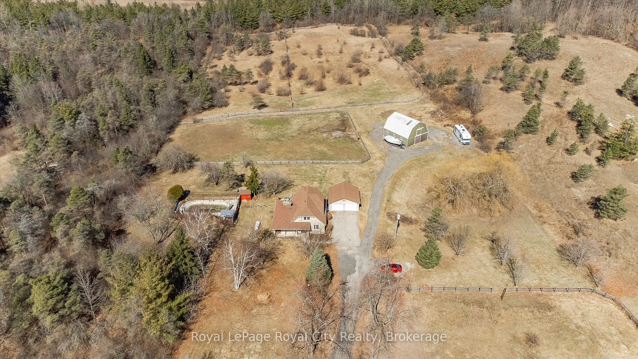 A Rare Development Opportunity Discover this stunning 9-acre hobby farm nestled among rolling hills and a gently winding laneway that welcomes you home. Surrounded by mature trees, thoughtfully planted gardens, and open green space, this serene property offers both beauty and potential. The spacious family home features 4 bedrooms, 3 bathrooms, two gas burning fireplaces, and a detached double garage – perfect for cozy rural living.Equestrians and nature lovers alike will appreciate the five-stall barn with hay loft, four fenced paddocks, and scenic trails ideal for peaceful walks or Sunday rides. Tucked away in total privacy, this lush retreat offers a tranquil escape from the pace of city life. Strategically located within the Clair-Maltby Development Plan, this property presents exciting future potential. As the City of Guelph moves forward there is great opportunity with the future land use. Detailed information is available on the City of Guelphs website.