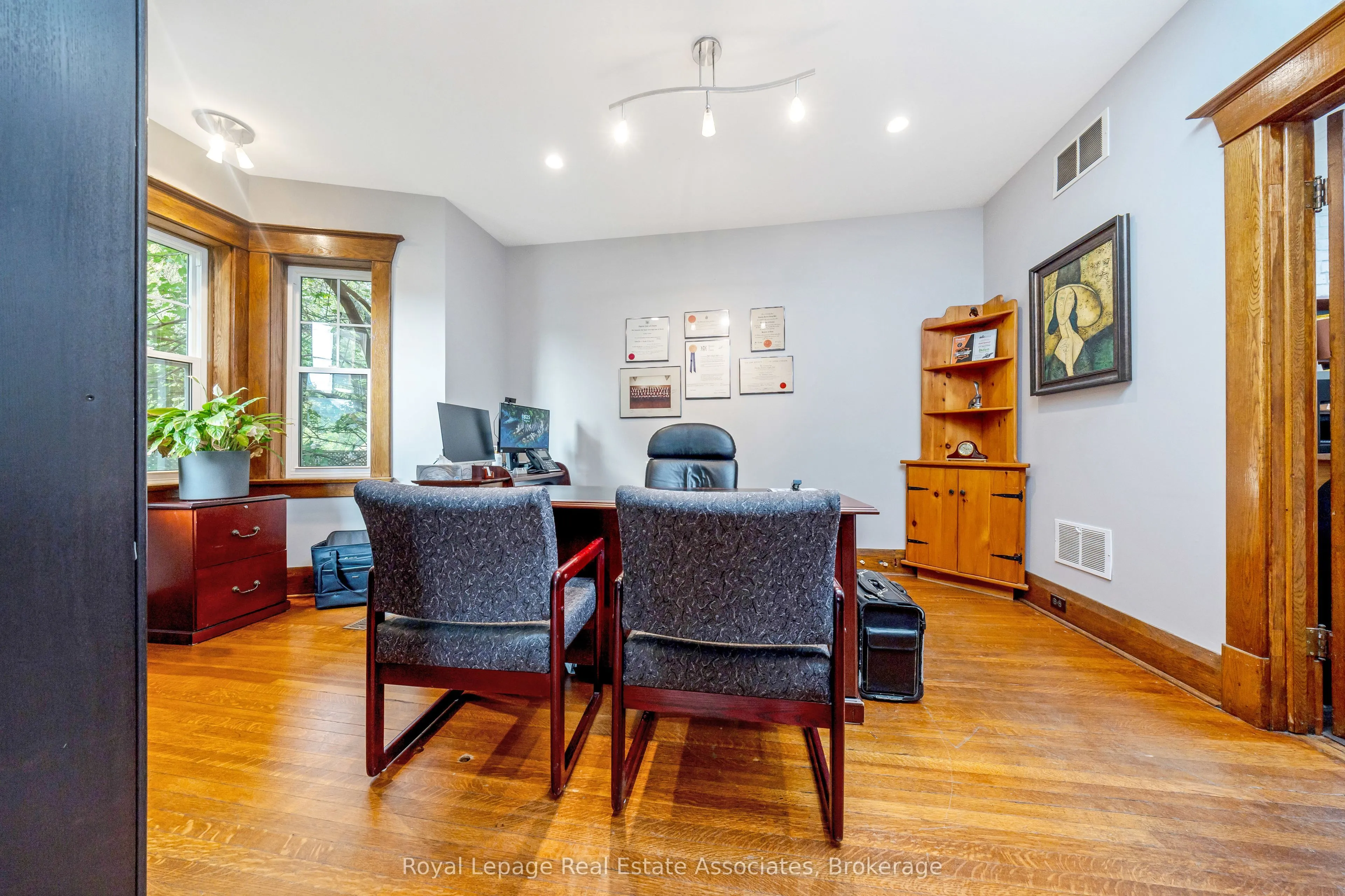 Historic Charm Meets Modern Comfort in the Heart of Milton. Welcome to 142 Martin Street, a beautifully restored century home (circa 1920) located on a generous lot just steps from downtown Milton. Rich in character and timeless appeal, this stately property boasts original interior doors, trim, and a grand staircase that have been lovingly preserved. The refinished original hardwood floors and soaring ceilings create a warm, elegant atmosphere, while the inviting front porch adds a touch of classic charm. Thoughtfully updated for todays lifestyle, the home features modernized essentials including the roof, windows, electrical, and HVAC systems offering peace of mind without compromising its heritage. Currently configured as a professional office space, the layout provides flexibility and can be easily converted back into a stunning family residence. Located in a sought-after neighbourhood surrounded by newly renovated and expanded homes, and just steps to the newly revamped Martin Street Public School, this unique property presents a rare opportunity to own a piece of Milton’s history while enjoying all the conveniences of downtown living.