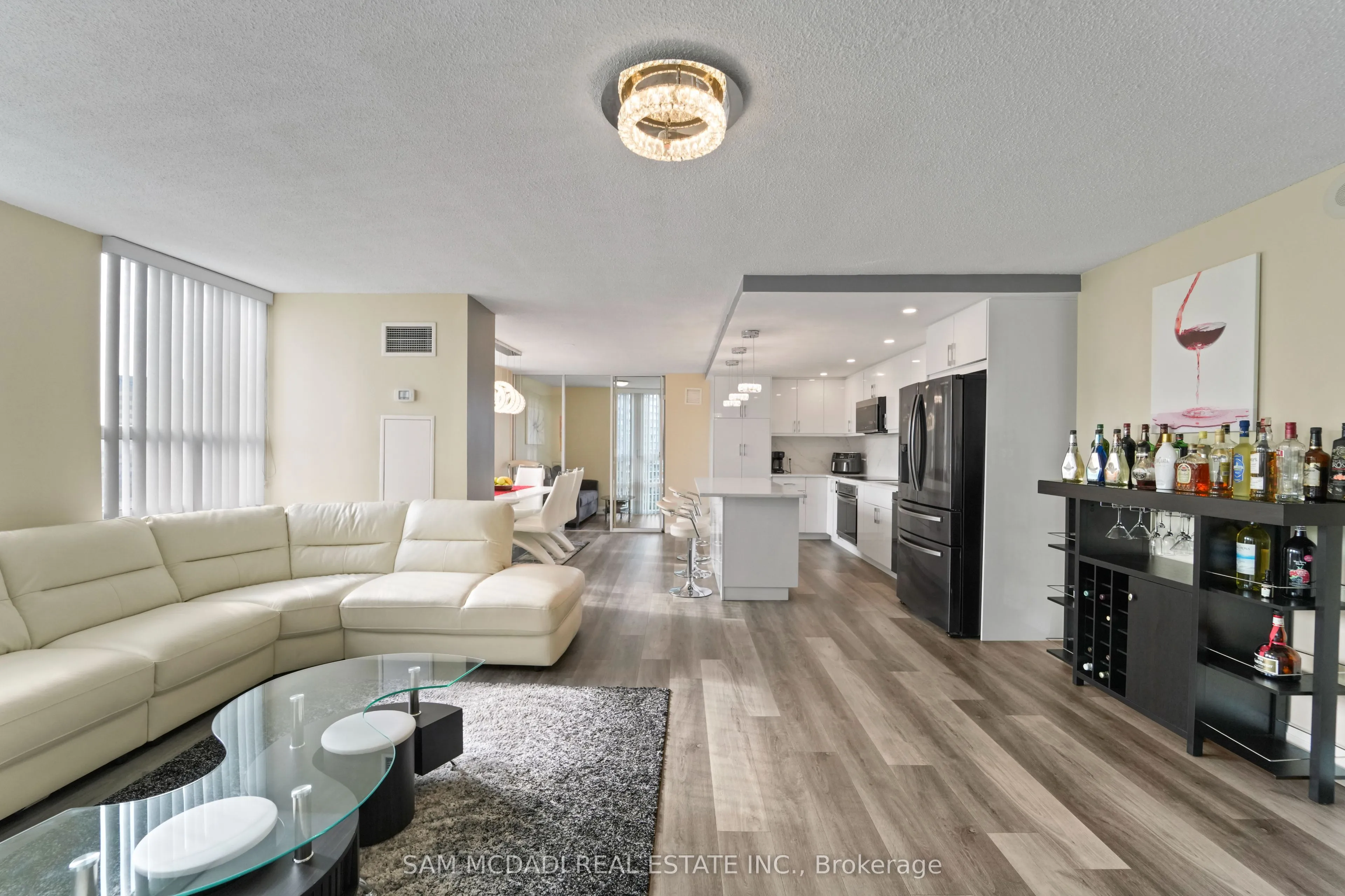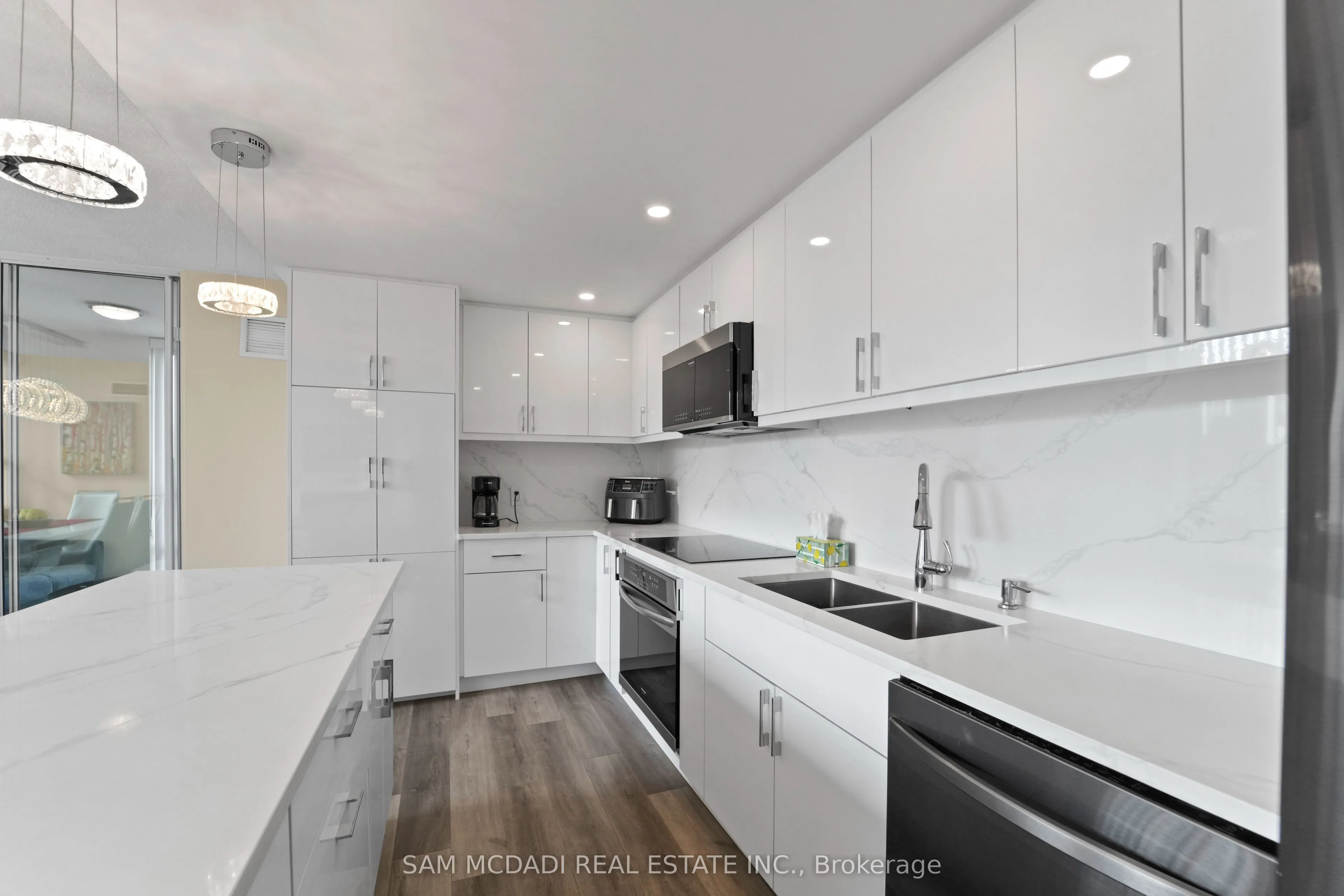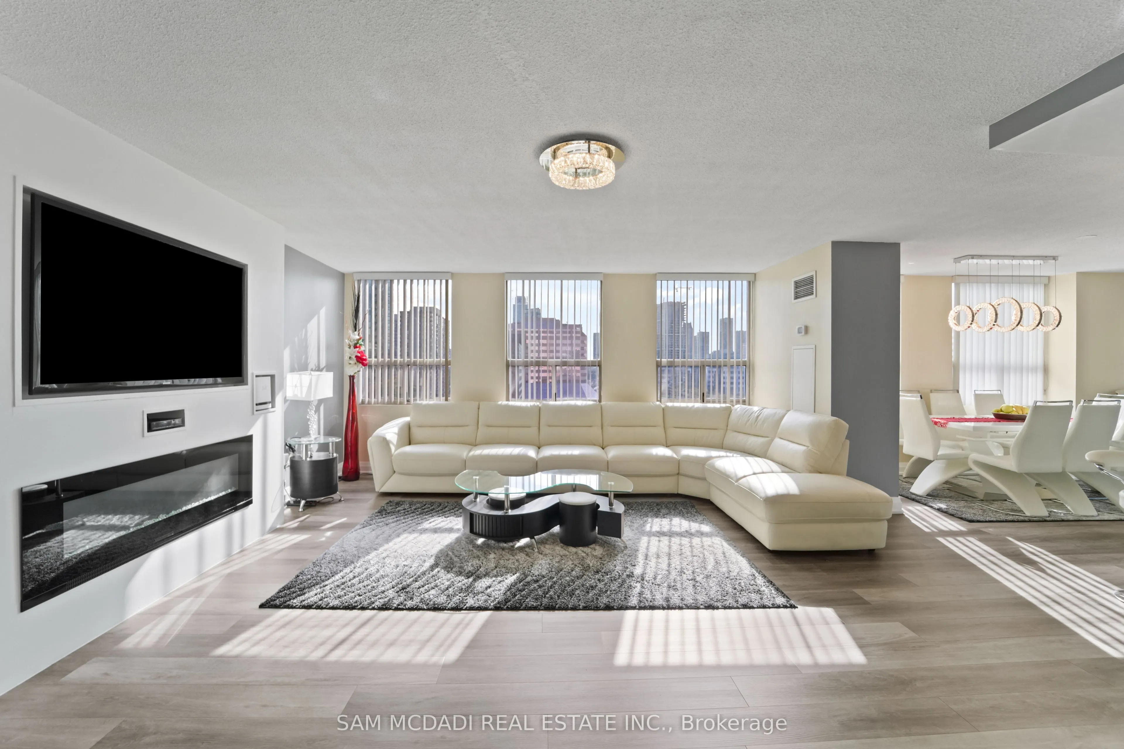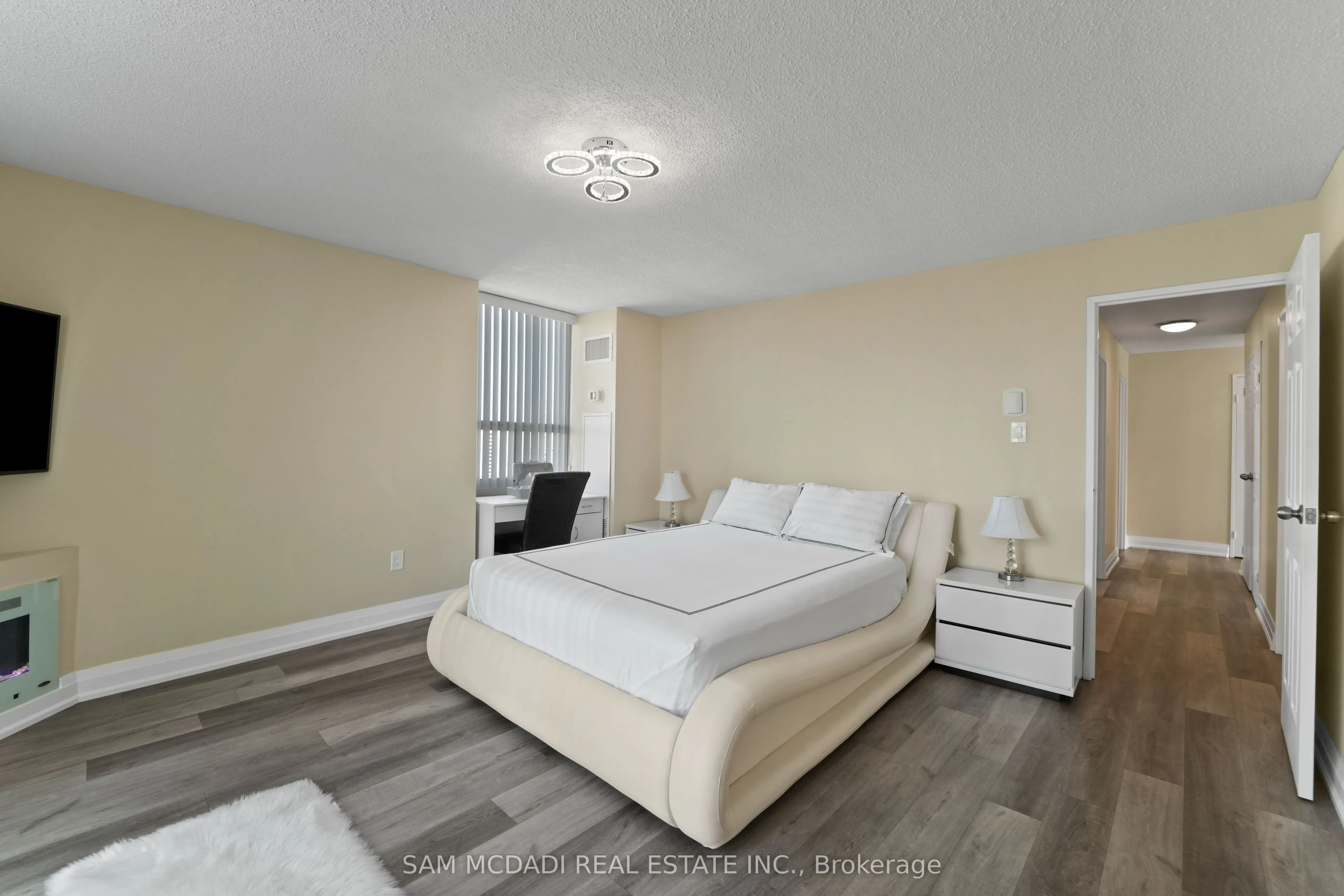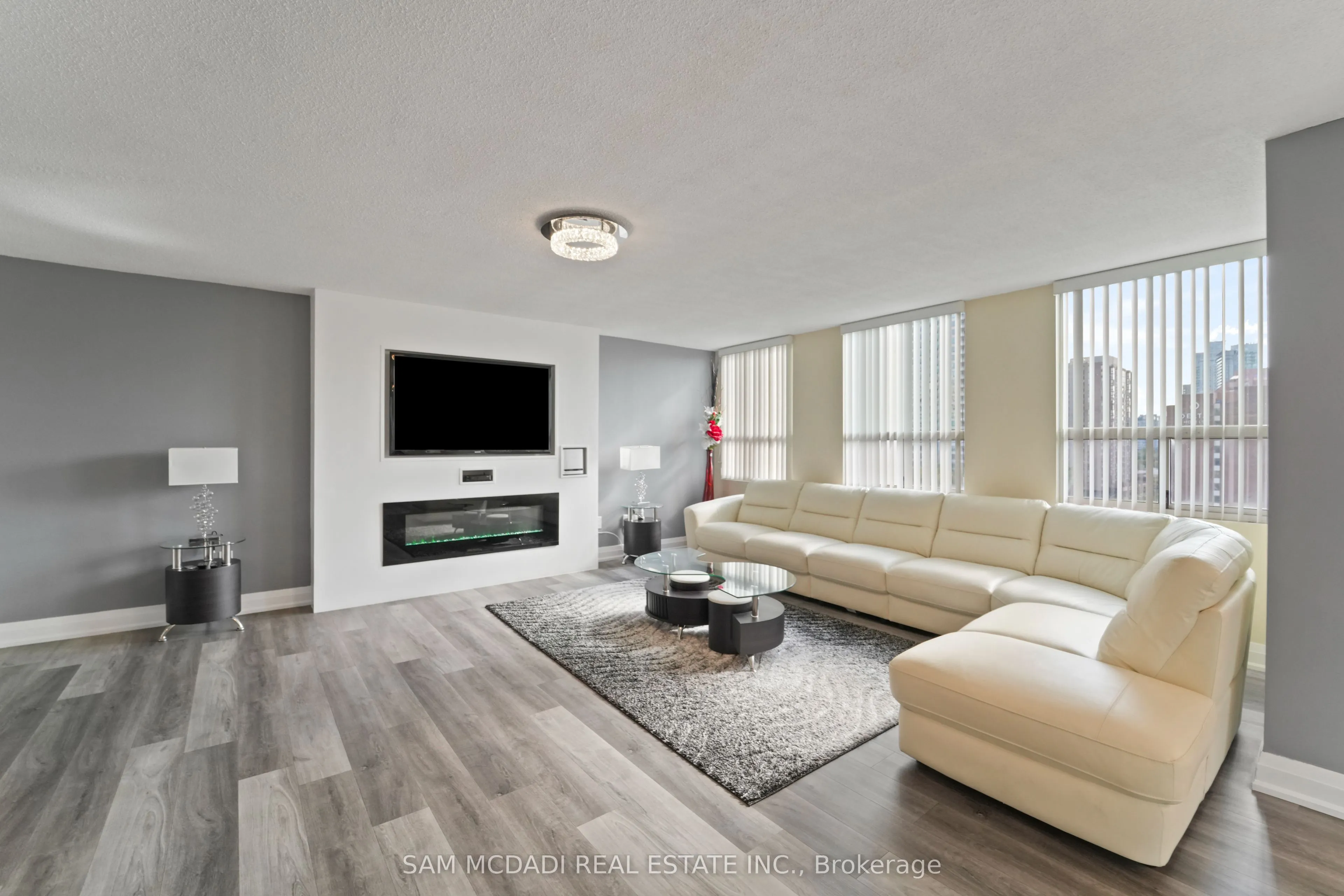 Welcome to your dream luxury condo, an exceptional residence spanning 1,682 square feet and one of the largest apartments in the area. Located in the heart of Mississauga, this exquisite residence has been tastefully renovated with high-end finishes, showcasing a commitment to quality and sophistication. As you enter, you are greeted by wall-to-wall windows that flood the space with natural light, creating an airy and inviting atmosphere. The heart of this home is the breathtaking kitchen, featuring beautiful quartz countertops and an elegant backsplash that exemplify modern design. The modern vinyl flooring flows seamlessly throughout the living spaces, creating a warm and inviting atmosphere. This condo boasts 3 generously sized bedrooms and 2 beautifully appointed bathrooms, offering ample space for relaxation and privacy. The living room and primary bedroom each feature a sleek electric fireplace, providing warmth and a touch of opulence. The primary bedroom features a luxurious 4-piece ensuite and an expansive walk-in closet, providing ample storage and privacy. Additional highlights include a versatile solarium/den, perfect for a home office or cozy reading nook, and two dedicated parking spots for your convenience. With all utilities included, you can enjoy a worry-free lifestyle in this prestigious setting. Building ammenities includes: 24-Hour Concierge, Gym, Exercise Room, Indoor Swimming Pool with Jetted Seating Area, Men’s & Women’s Sauna, Library, Security Guard, Squash racquet court, Party Room, Billiards & Ping-Pong Rooms, Outdoor Tennis Court, Outdoor Garden with Patio Seating Area and covered visitors parking. Located just a short walk from Square One Mall and conveniently close to highways 403, 401, and QEW, as well as public transit, schools, a library, grocery stores, pharmacies, and banks, this condo offers the perfect blend of luxury and location. Dont miss your chance to call this exquisite property home!