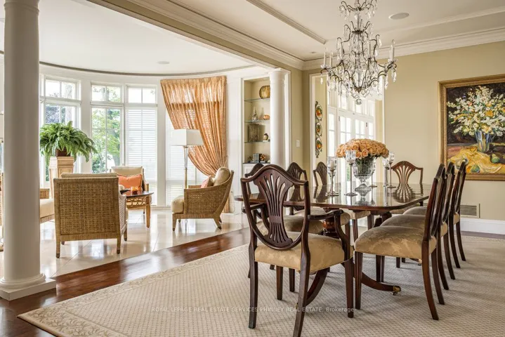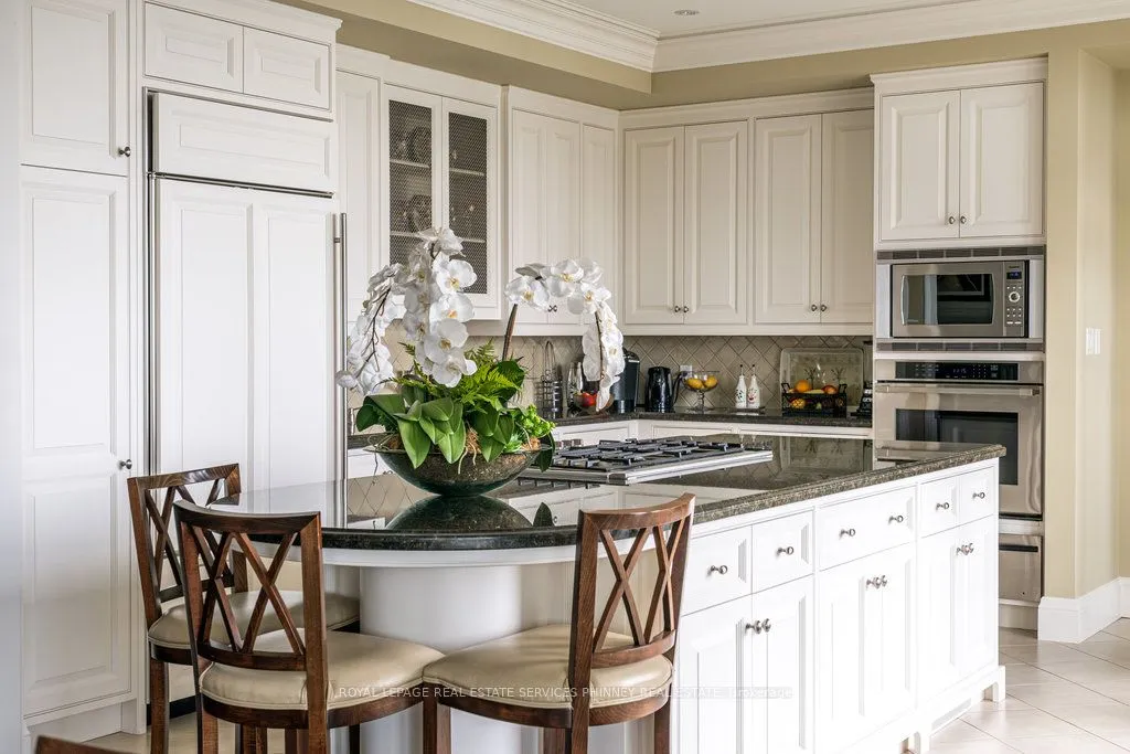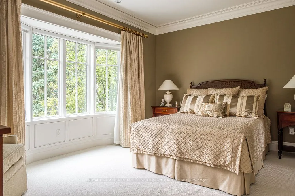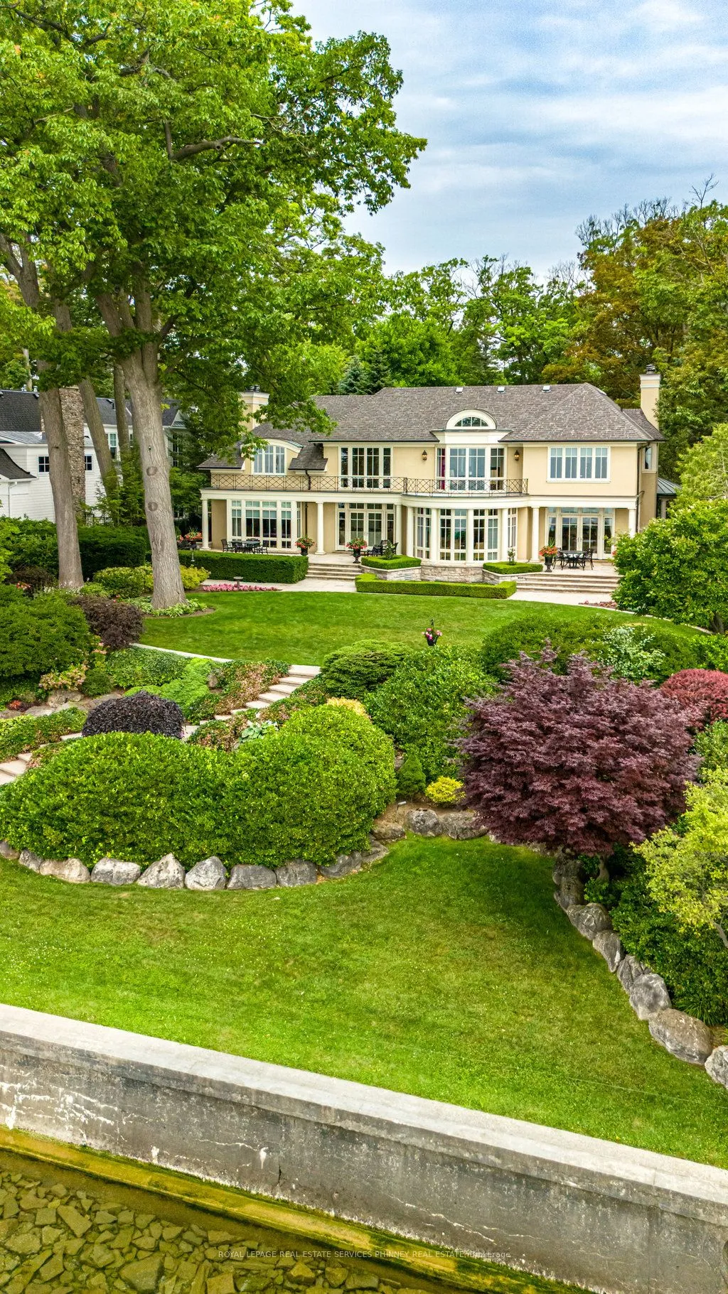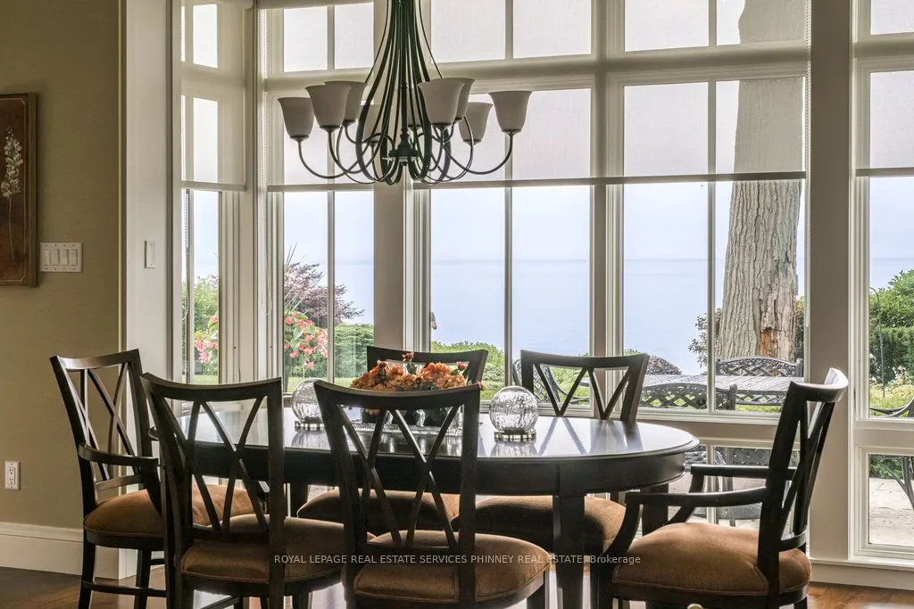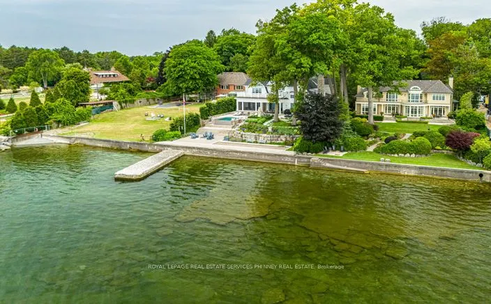 This exquisite French chateau-style estate, designed by Gren Weis, is gracefully positioned on a prestigious waterfront parcel with coveted riparian rights, in one of South-East Oakville’s most sought-after enclaves. With breathtaking views of Lake Ontario and a rare sense of privacy, this residence offers an unparalleled lifestyle of elegance and tranquility. Masterfully designed to blend classical architecture with modern functionality and refined interiors. From richly detailed millwork, ceiling details, radiant heated flrs to upgraded light fixtures, every finish has been thoughtfully curated to reflect timeless sophistication. Expansive principal rooms with lake vistas provide a stunning backdrop for both grand entertaining and intimate family living.The main level is anchored by a magnificent living room with double French doors that welcome in the lake breeze, a show stopping solarium, formal dining room, a gourmet kitchen with professional appliances, prep kitchen, and sunlit family room with waffle ceilings.The second level features a serene primary suite with spa-inspired ensuite and dressing room, 3 additional bedrooms, 2 bathrooms, and a beautifully appointed library offering sweeping views of the water.The lower level offers exceptional scale and light with full-size windows, radiant floors, a recreation room with wet bar, fitness room with adjacent full bathroom, guest suite with ensuite, and abundant storage ideal for extended family or hosting with ease.Your private garden offers lush, manicured grounds and is framed by the natural beauty of the lake. Multiple walkouts to the yard and easy access to the shoreline make this property a rare offering. Launching your paddle board or canoe couldn’t be easier.Just steps to Gairloch Gardens and moments from the boutiques, fine dining, and cultural richness of downtown Oakville, as well as top-tier private and public schools, this estate presents a lifestyle defined by elegance, ease, and enduring value.