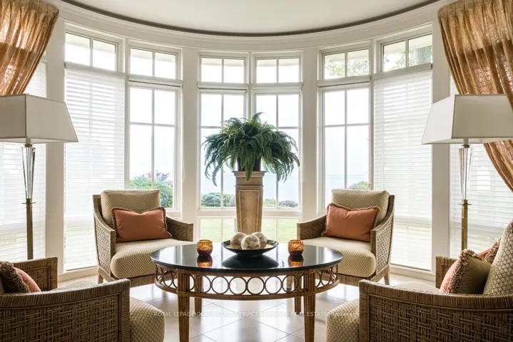 This exquisite custom built estate, designed by Gren Weis, is gracefully positioned on a prestigious waterfront parcel with coveted riparian rights, in one of South-East Oakville’s most sought-after enclaves. With breathtaking views of Lake Ontario and a rare sense of privacy, this residence offers an unparalleled lifestyle of elegance and tranquility. Masterfully designed to blend classical architecture with modern functionality and refined interiors. From richly detailed millwork, ceiling details, radiant heated flrs to upgraded light fixtures, every finish has been thoughtfully curated to reflect timeless sophistication. Expansive principal rooms with lake vistas provide a stunning backdrop for both grand entertaining and intimate family living.The main level is anchored by a magnificent living room with double French doors that welcome in the lake breeze, a show stopping solarium, formal dining room, a gourmet kitchen with professional appliances, prep kitchen, and sunlit family room with waffle ceilings.The second level features a serene primary suite with spa-inspired ensuite and dressing room, 3 additional bedrooms, 2 bathrooms, and a beautifully appointed library offering sweeping views of the water.The lower level offers exceptional scale and light with full-size windows, radiant floors, a recreation room with wet bar, fitness room with adjacent full bathroom, guest suite with ensuite, and abundant storage ideal for extended family or hosting with ease.Your private garden offers lush, manicured grounds and is framed by the natural beauty of the lake. Multiple walkouts to the yard and easy access to the shoreline make this property a rare offering. Launching your paddle board or canoe couldn’t be easier.Just steps to Gairloch Gardens and moments from the boutiques, fine dining, and cultural richness of downtown Oakville, as well as top-tier private and public schools, this estate presents a lifestyle defined by elegance, ease, and enduring value.