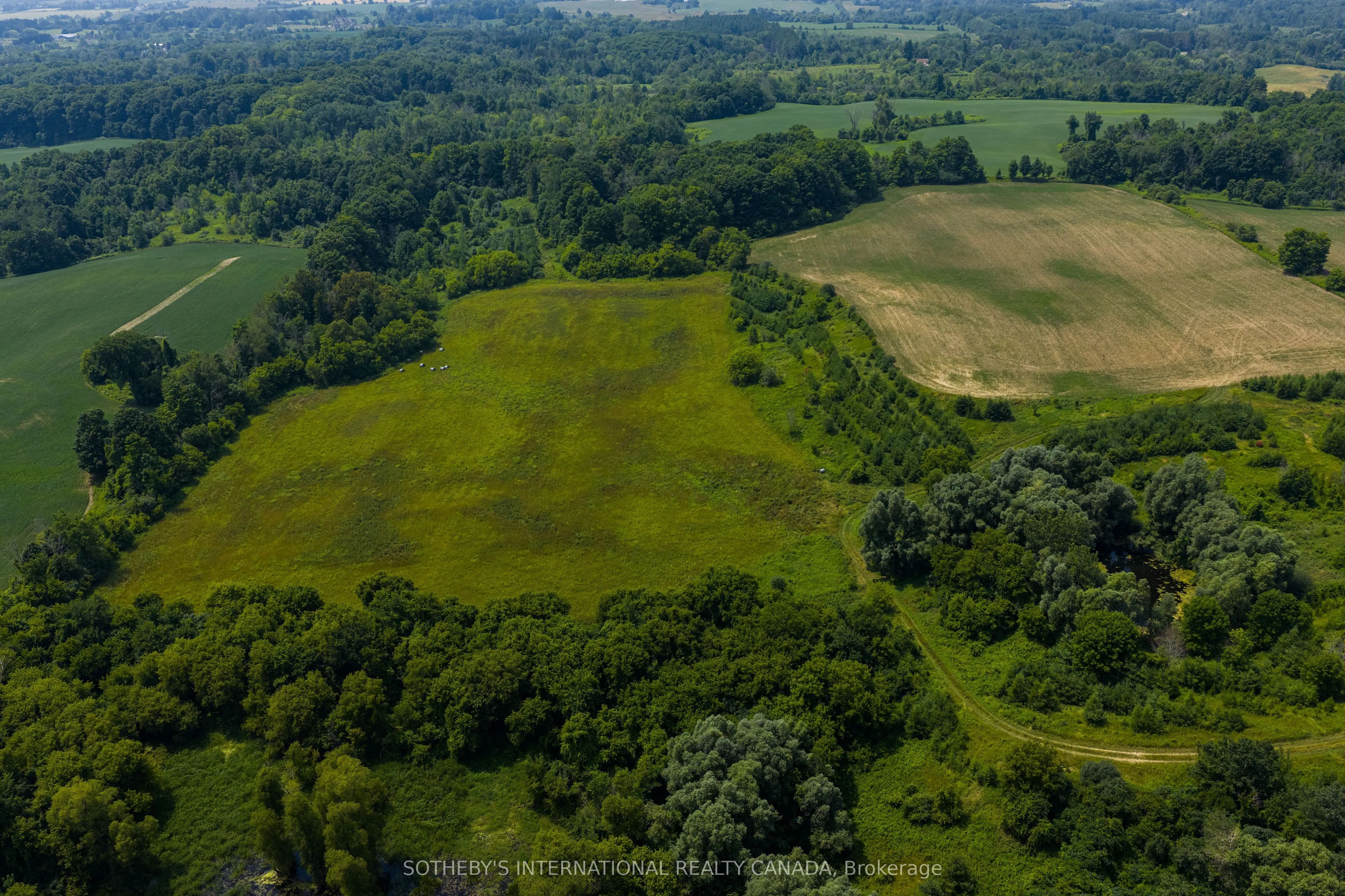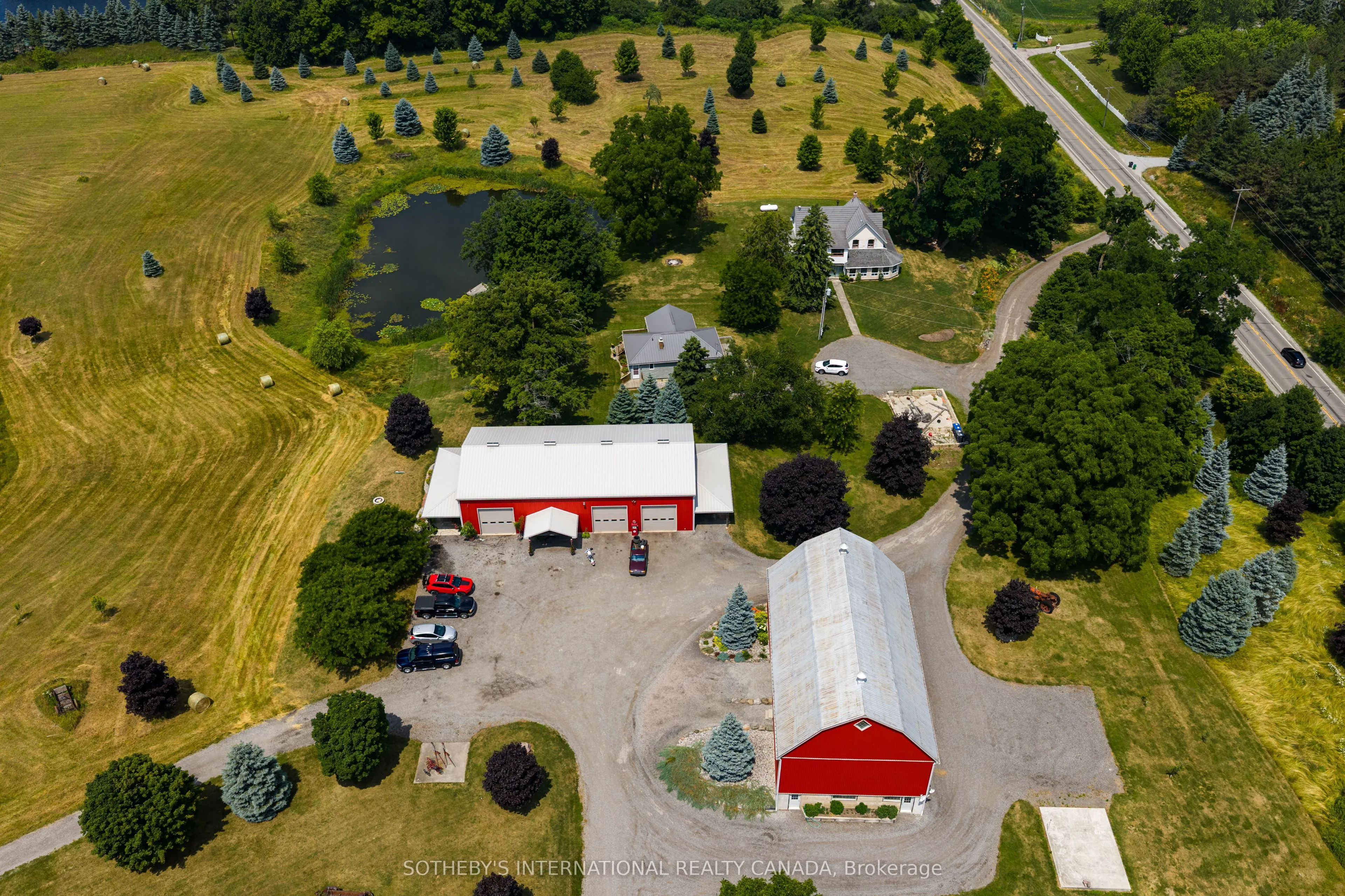 Welcome to this exceptional 96-acre farm estate, offering a rare combination of natural beauty, functionality, and long-term potential. Framed by sweeping south-easterly views of the Toronto skyline, the property features a fully renovated bank barn, a large immaculate workshop, and two charming residences the original 3-bedroom, 2-bathroom farmhouse and a detached 1-bedroom, 1-bath guest house. The landscape is a stunning blend of worked acreage, hardwood forest, multiple large ponds, and a cozy bunkie, providing incredible versatility for both lifestyle and business use. Situated on a regional road, the location offers excellent exposure and accessibility, making it an ideal candidate for a future business venture. Currently, the guest house is rented for $1,400/month plus utilities, and the farmland generates an additional $1,000/year, adding to the appeal of this unique and income-producing countryside retreat.