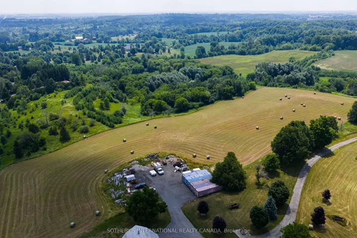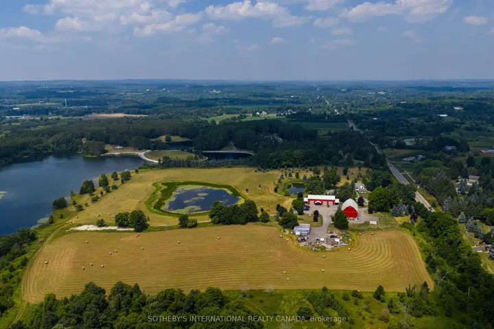 Welcome to this exceptional 96-acre farm estate, offering a rare combination of natural beauty, functionality, and long-term potential. Framed by sweeping south-easterly views of the Toronto skyline, the property features a fully renovated bank barn, a large immaculate workshop, and two charming residences the original 3-bedroom, 2-bathroom farmhouse and a detached 1-bedroom, 1-bath guest house. The landscape is a stunning blend of worked acreage, hardwood forest, multiple large ponds, and a cozy bunkie, providing incredible versatility for both lifestyle and business use. Situated on a regional road, the location offers excellent exposure and accessibility, making it an ideal candidate for a future business venture. Currently, the guest house is rented for $1,400/month plus utilities, and the farmland generates an additional $1,000/year, adding to the appeal of this unique and income-producing countryside retreat.
