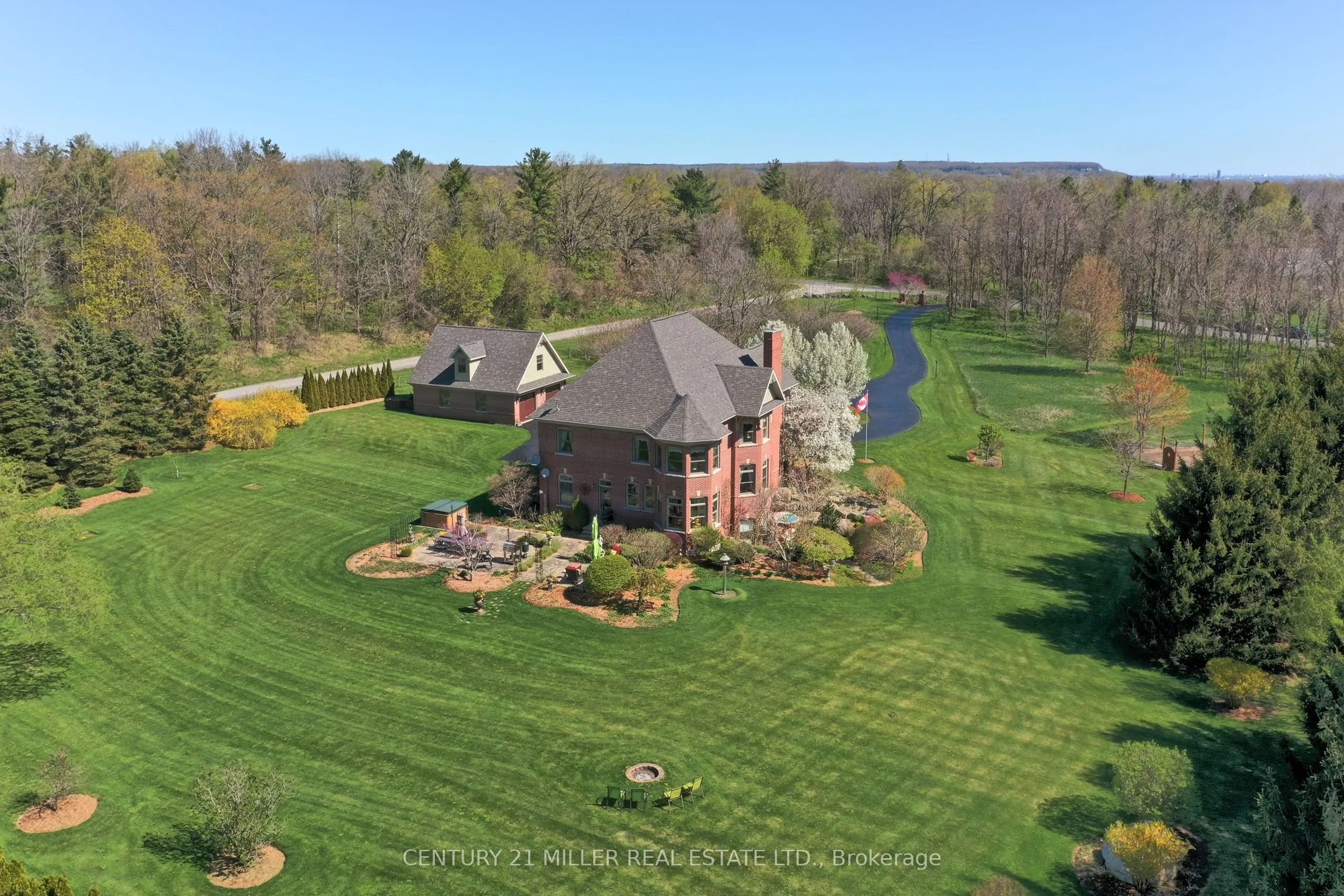 Tucked into a quiet fam neighbourhood in the quiet town of Kilbride lies a truly magnificent rural paradise, that’s just a stones throw to city amenities! Imagine morning coffee on the wrap around covered front porch while you watch the kids ride bikes up the long winding driveway in perfect seclusion. No need for Muskoka when you’ve got this slice of heaven ! The Town of Kilbride proudly boasts one of the finest public schools in the entire Golden Horseshoe. Driving up to this stately brick Victorian style custom built home via iron gates, evokes a simpler time. This stunning two story home was designed by Bill Hicks architecture and the vision of the owners, and is a masterpiece with unique Victorian era appeal and modern amenities! The floor plan flows seamlessly from the formal front entrance with views through to the private backyard through to the heart of the home, the family room and kitchen with period appeal. A wonderful place for the family to gather and enjoy the open concept kitchen and family room with space for the whole family, while gazing out at the beautifully landscaped vistas that the backyard paradise presents with plenty of bird watching, nestled on 3.8 acres! Over 5,678 square feet of luxury living over three levels with no expense spared. Top of the line appliances, generous formal dining room, beautiful living room with fireplace, chef’s kitchen open to family room. There’s even a dedicated area to add an elevator for future use! Principal bedroom with spa atmosphere ensuite and two more bedrooms! Lower level with theatre room, gym, spa bathroom, music room offers something for whole family. Detached garage with room for three cars, custom car lift, workshop and 2nd level Artists’ studio. Hot tub to enjoy in total seclusion!