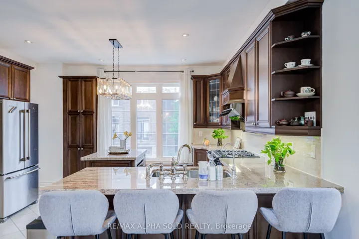 Stunning Former Model Home in Prestigious Aurora Sanctuary Town Manors by Kylemore! Nestled in a private enclave and backing onto tranquil green space, this rare offered largest model (only 2 of 48 built) offers approximately 3,060 sqft. of luxurious living space (per builders plan), including a beautifully finished 410 sqft. basement complete with a cozy gas fireplace. This residence showcases timeless elegance and thoughtful upgrades throughout: rich hardwood floors, an oak staircase, crown moulding, coffered ceilings, pot lights, and fresh designer paint (2024). The gourmet kitchen features granite countertops, a butlers pantry, premium appliances, and a walkout to an expansive deck overlooking a fully fenced backyard enhanced with wrought-iron accents, a hot tub (as is), and a garden shed. The functional layout includes direct garage-to-mudroom access and a convenient backyard walk-through. The finished basement provides versatile space for recreation or entertaining, while major recent updates new A/C (2021) and furnace (2019)offer peace of mind. Ideally located just minutes to GO Transit, Highway 404, top-rated schools, parks, trails, and all amenities, this is the perfect blend of sophistication, comfort, and convenience.