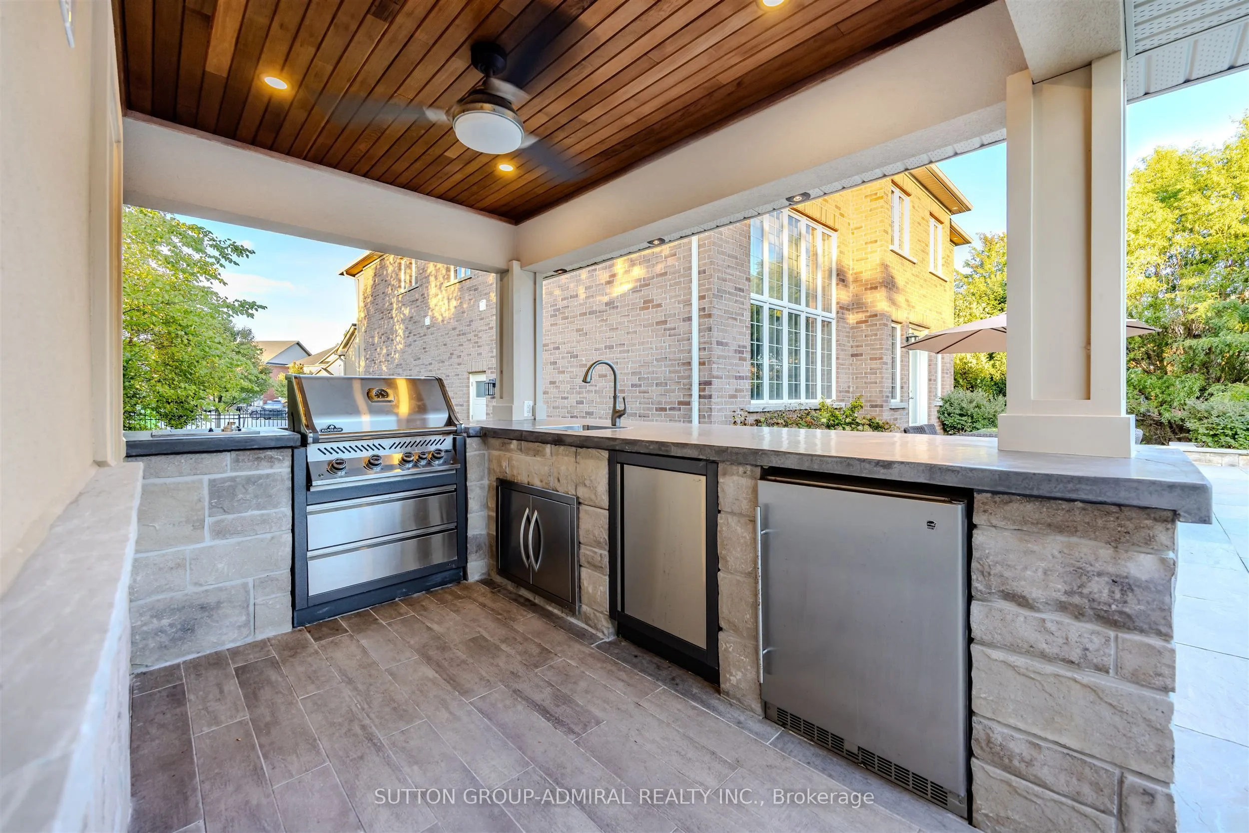 Luxury Resort-Style Living At Home! Welcome to your private oasis- where every day feels like vacation! This stunning property is designed for ultimate entertaining and relaxation, featuring a 20′ x 36′ inground concrete pool with a two-sided spillover infinity edge, glass mosaic waterline tiles and a custom full-length (36′) solid concrete entry steps. Enjoy resort-style amenities in the approx. 650 sq.ft. custom cabana, complete with a stone gas fireplace, cedar ceilings, 2-piece outdoor bathroom, rough-in for outdoor shower, cedar change room, and an outdoor kitchen equipped with a large concrete counter-top, bar fridge, Napoleon grill & burner, and built-in sink. The professionally landscaped yard includes approx. 1500 sq.ft of natural stone patio and pool decking, architectural stone walls, raised planter beds, stone walkways, and landscape lighting throughout. Mature trees ensure privacy, while a large irrigated lawn area offers the perfect play space for kids. Step inside to a beautifully designed home featuring a main floor office w/ cathedral ceilings& a large window overlooking the front yard, a formal living room w/ gas fireplace and an extended laundry/mudroom with access door into tandem garage, plus a variance for an added tandem garage that can be built (as per seller’s).The Gourmet kitchen is equipped with high-end Viking Appliances and the family room showcases cathedral ceilings and a large upgraded window overlooking the pool, creating a stunning focal point. The basement has been professionally finished and offers a spacious recreational/games room, a3-piece ensuite with steam shower & infrared sauna, a R/I for bar and two additional rooms that can be used as a bedroom and office or as additional storage areas. Perfectly situated on a premium large lot in a quiet exclusive court, this property has great curb appeal illuminated by exterior pot lighting, it combines luxury, privacy and convenience-a true entertainer’s paradise and family retreat!