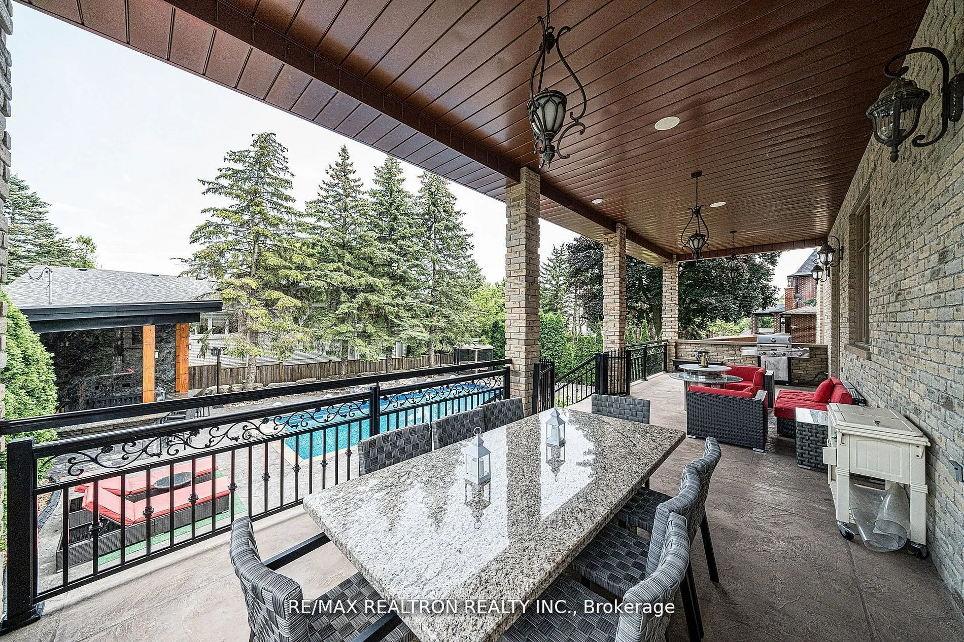 Experience luxury living in this stunning 5,500 sq. ft. custom-built residence, crafted with exceptional quality and attention to detail. The home showcases a beautifully designed kitchen featuring premium appliances. The main floor boasts soaring 12 ceilings, elegant designer lighting, custom drapery, and a combination of travertine and hardwood flooring. The spacious master suite offers a dressing area and two walk-in closets. A fully finished walk-up basement enhances the living space with a home theatre and wet bar. Charming cobblestone walkways and a driveway enhance the curb appeal, while the heated saltwater pool provides a resort-like atmosphere. Recent updates include a heated stamped concrete driveway, new vinyl and cover for the upgraded pool system, new roof shingles, and a stylish backyard cabana complete with BBQ, wet bar, wine cooler, cabinetry, and countertop. Additional highlights include an irrigation system, gated driveway, new countertops, basement bar sink, upgraded security with cameras, ceiling speakers, refinished hardwood floors, and a modernized powder room. The garage also features an electric vehicle charger, ideal for eco-conscious homeowners.