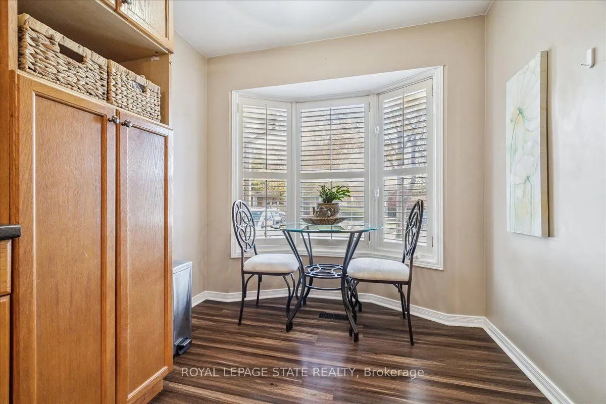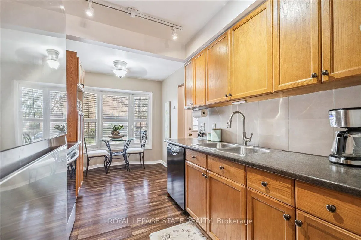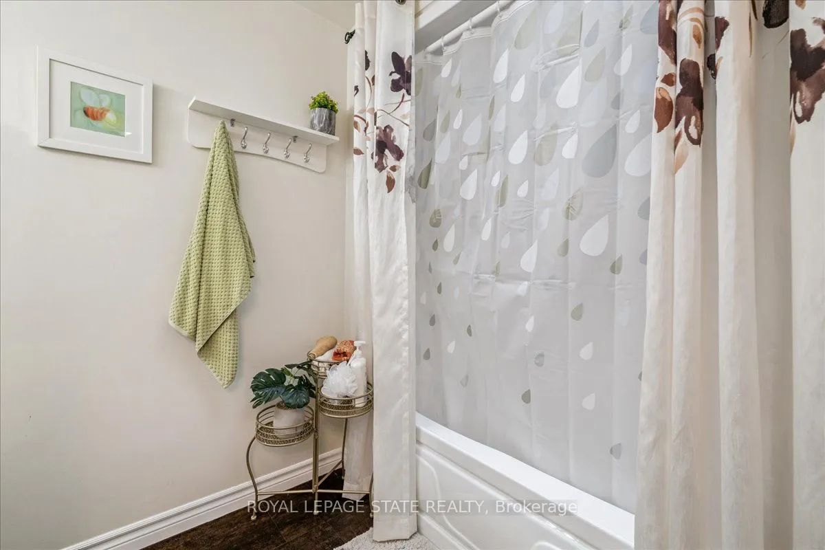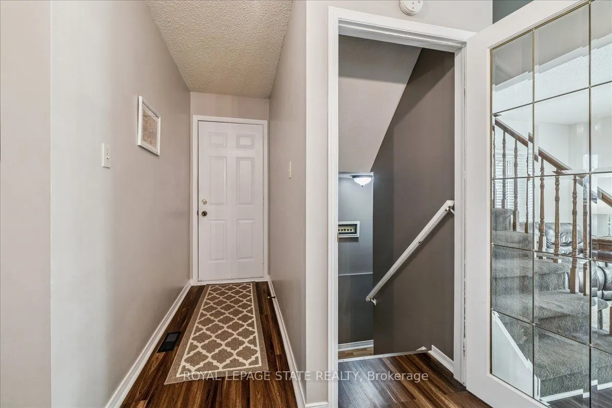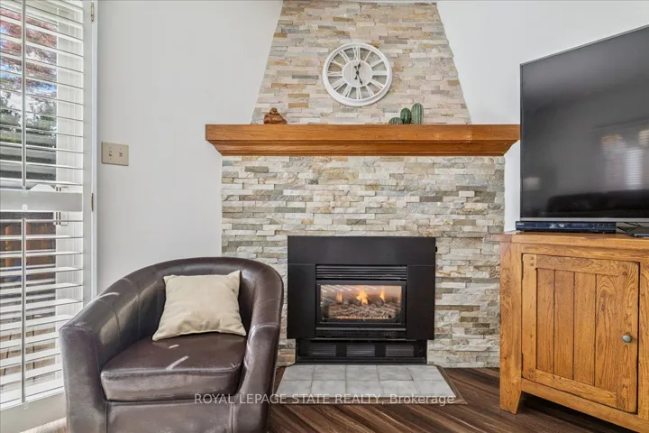 Beautiful turn-key end-unit townhouse in a sought-after Stoney Creek location! This quiet, well-maintained complex is conveniently close to the QEW, schools, and public transit. Start your mornings with coffee by the large front window of your bright eat-in kitchen, featuring ample counter and storage space plus stainless steel appliances. The open-concept living and dining area is perfect for entertaining, highlighted by a stunning gas fireplace with a floor-to-ceiling stone surround and wood mantle. Open the California shutters to fill the space with natural light from your private, landscaped backyard with exterior access. Step out onto the deck to BBQ and relax under the automatic retractable awning. Upstairs, you’ll find three spacious bedrooms and a renovated main bathroom with a skylight and makeup counter. The finished basement offers a large rec room, laundry area, and plenty of storage. The single-car garage includes inside entry and direct access to the back deck. Condo fees cover exterior property maintenance, insurance, parking, and water!