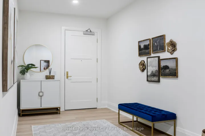 Welcome to The Foundry at Elora Mill Residences, an art collectors dream and your opportunity to own one of the most private layouts in the entire complex. This stunning one-bedroom plus den residence offers over 1,400 sq. ft. of thoughtfully designed living space, with a 200+ sqft private outdoor terrace. Both the living room and bedroom feature garden door walkouts, seamlessly connecting you to your terrace and the scenic pathway along the rivers edge.The extensively upgraded interior is equally impressive. A formal entryway with a double-door closet and a luxurious 155 sq. ft. foyer sets the tone, perfect for welcoming guests and keeping your space beautifully organized, a storage opportunity rarely found in condo living. Just beyond the entrance, you will find a self contained Laundry Room, a Study, perfect for a home Office or a Guest room and a 3pc bathroom with elegant finishes, heated floors and automated toilet. Continuing down the hall, enter the Kitchen, with an impressive design that showcases chic finishes alongside top-of-the-line Miele appliances and numerous cabinetry upgrades that offer convenience and functionality to this stunning work space. The quiet serenity of the trees along the Grand River set the backdrop for the open concept living space, with 3 oversized garden Windows, the Living and Dining areas have an abundance of natural light. The primary Bedroom with the luxurious garden door walkout, and a walk-through dressing room leading to the 5 piece Ensuite with large glass shower, stand alone soaker tub, automatic toilet, double sink, hardwired magnifying mirror and heated floors. Pre-wired for Electric Blinds, though as mentioned above, this location is very private.