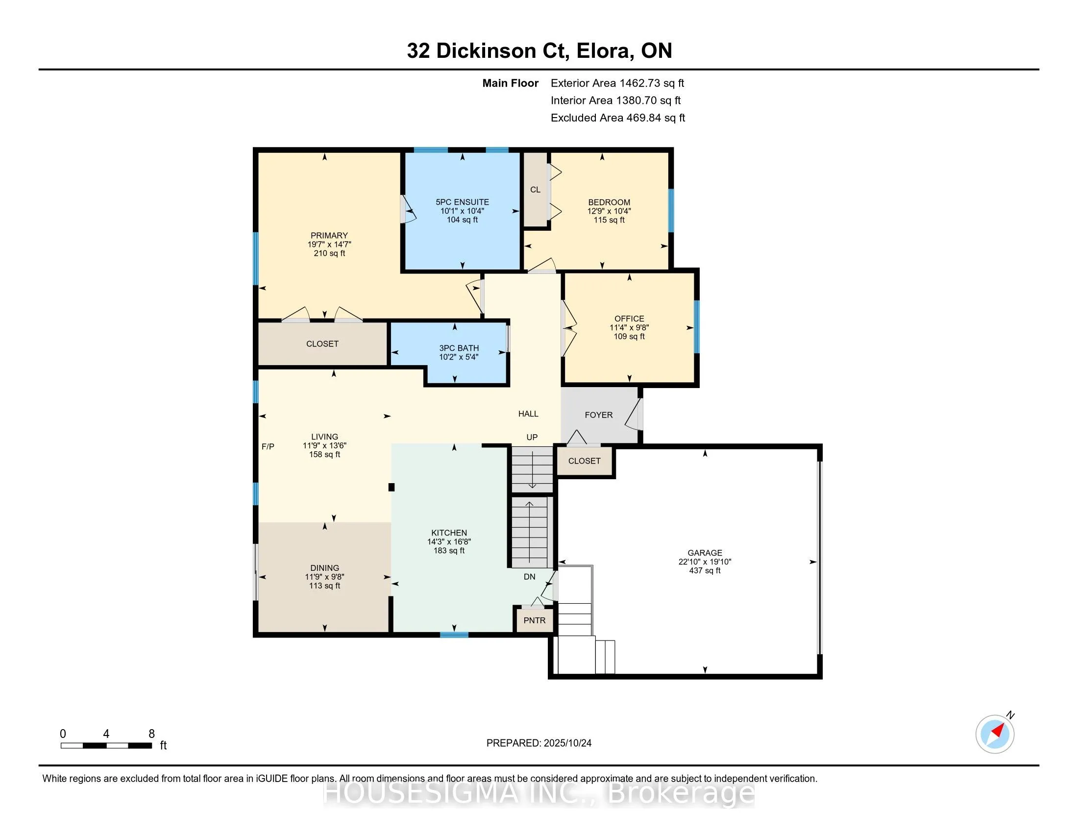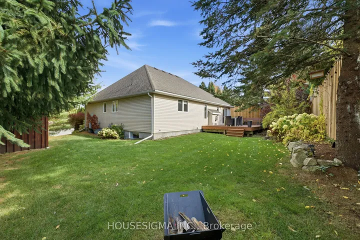 Top five (5) features of this home. (1) Over 3,000 ft2 of living space and 108′ frontage on a quiet cul-de-sac, this home welcomes you to a totally private mature lot. (2) Pride and Quality workmanship evident throughout. Enter through a new modern door into an open concept modern kitchen/dining/living area with wide plank engineered hardwood, quartz countertops, elevated ceiling and gas fireplace (2021). (3) Great-sized 3+2 bedrooms complete with a Gorgeous primary complete w/5 pc ensuite including soaker tub and heated floors. (4). Completely finished lower level with lots of room (1,308 ft2) to make your own complemented by 2 simple and and beautiful bedrooms with 3-pc WR w/heated floors. (5) Professionally landscaped backyard (July 2024) with new topsoil, grading, drainage, and lush sod for a vibrant, low-maintenance lawn. Elegant flagstone pathway along the home and custom fence with natural stone steps (Grand River Stone) offering direct access to the pedestrian bridge and downtown. Refinished custom wood shed with new footings, roof, and stain. Spacious wood deck, beautifully sanded and re-stained in 2023, perfect for outdoor entertaining and relaxation..Decadent. Charming. Home. Don’t miss it.
