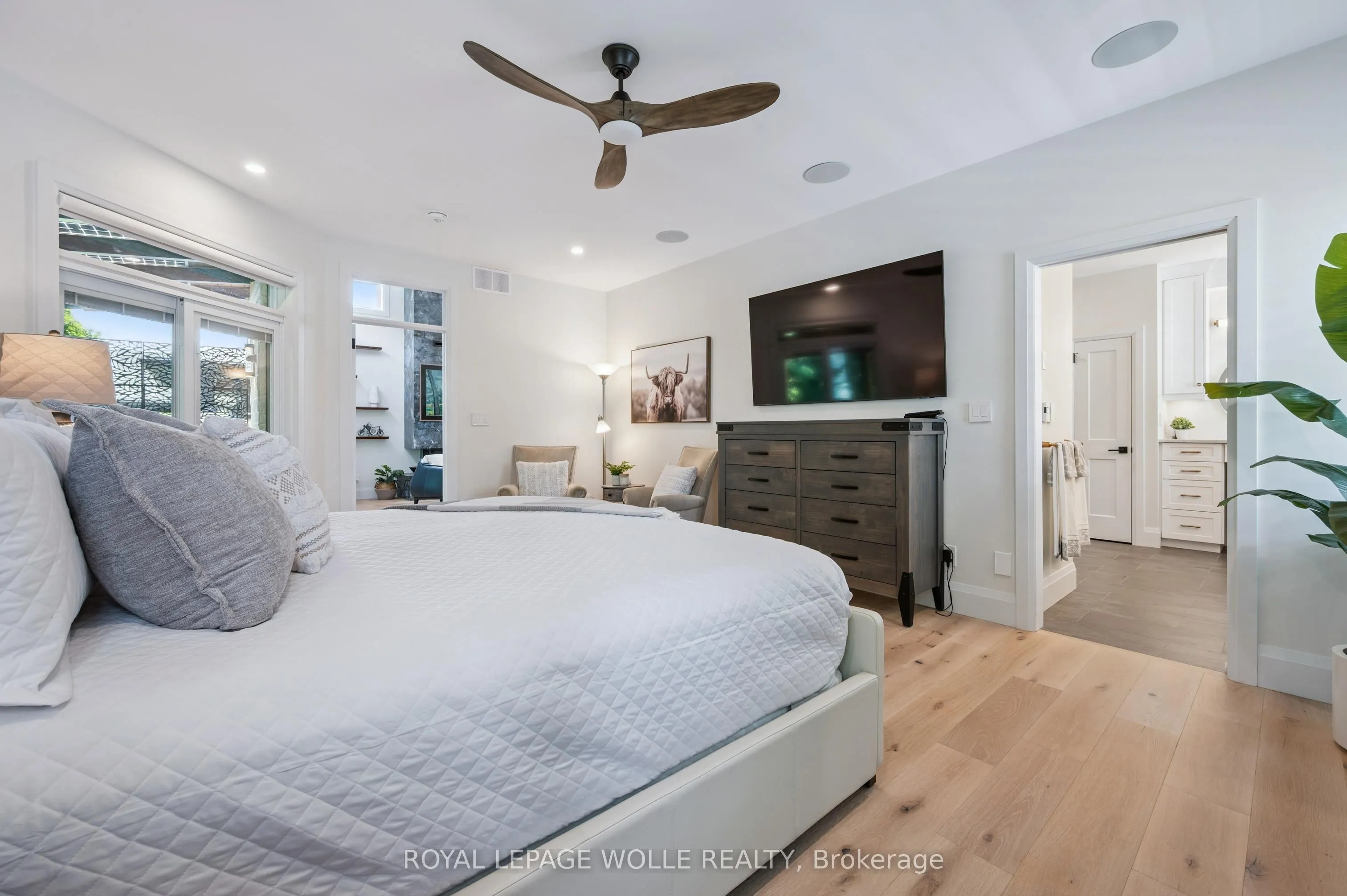 SPECTACULAR ONE OF A KIND HOME! Welcome to this stunning, energy efficient, smart home with $422k in owner upgrades and $250k in builder upgrades! This executive style 1+1 bed bungalow, located just outside Waterloo, in Elmira, provides the conveniences you didn’t know you needed. Enjoy your very own home technology assistant (AKA Josh) which controls the lights, fireplaces, speaker system, custom electric blinds and much more. This home offers owned solar panels which generate enough power to cover the majority of your hydro costs, year round and a comprehensive Tesla generator system is in place as back up, should you need it. Stepping into the home you’ll be amazed by the soaring 13.5 ft high ceilings in the main living space. An entertainers dream Kitchen, living and dining area, all centered around the floor to ceiling porcelain surround fireplace and exquisite kitchen hood range and cabinetry. Many unique features enjoyed in this main kitchen and dining space including a pot filler at your coffee bar, a bar area with wine cooler, high end appliances and stunning quartz countertops. The oversized primary bedroom features a massive ensuite with walk in porcelain shower & large walk in closet. Doors off the living room and primary bedroom lead to your very own private backyard oasis with covered deck, luxury hot tub and underneath the deck you’ll find a workshop fully enclosed in concrete. The 2 car garage enjoys heated epoxy floors, 2 electric EV chargers, high end cabinets & an additional heater for your convenience. The basement provides great inlaw potential or additional living space, perfect for entertaining, with in floor heating, a custom wet bar/ kitchenette open onto a large living room with built in electric fireplace, space for dining or games and tons of storage. A bedroom with a walk-in closet and a 3 piece bathroom complete this level. There is so much to see with this thoughtfully designed & fully custom home. Book your private tour today!