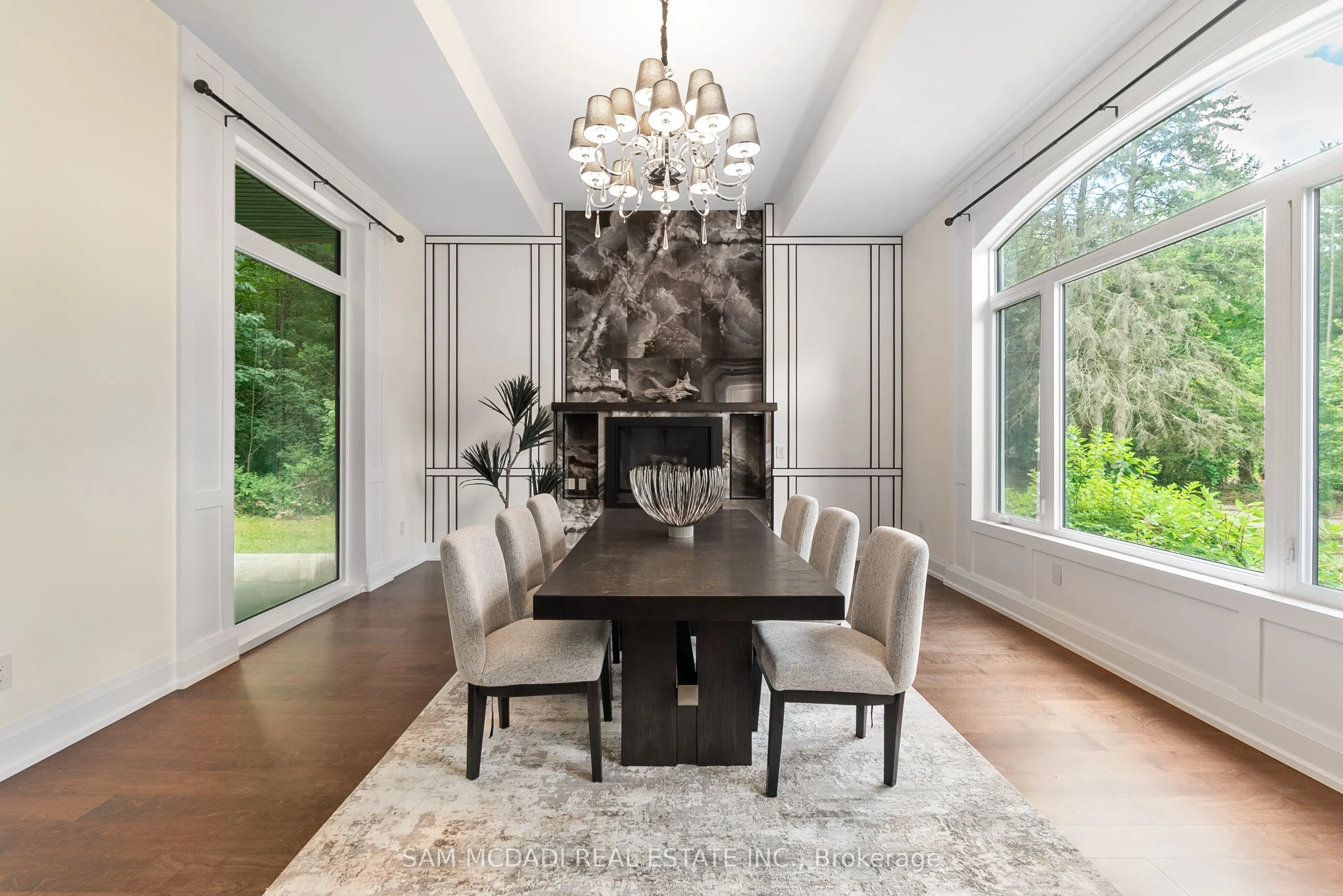 Set on a secluded almost 2-acre estate, this newly constructed architectural masterpiece offers over 13,000 square feet of refined indoor-outdoor living. Gated, grand, and privately positioned along Glenview Heights Lane, boasting modern luxury with timeless craftsmanship, designed for the most discerning of buyers. An inviting open-to-above foyer welcomes you inside, from dramatic ceiling heights to custom lighting, every detail has been thoughtfully curated to evoke elegance and ease. Expansive principal rooms flow effortlessly across the main level, including a formal dining room with fireplace, sunlit office retreat, and a sprawling family room with oversized windows framing the treetop views. The culinary kitchen is both stylish and functional, anchored by not one but two centre islands, custom cabinetry, premium built-in appliances, and a walk-in pantry. Whether hosting lavish dinner parties or casual gatherings, this space offers endless versatility. Above, the primary suite is an indulgent retreat, complete with a private terrace, spa-like 5-piece ensuite, and dual walk-in closets. Each additional bedroom is a suite unto itself, with vaulted ceilings, ensuite baths, and walk-in closets that speak to the elevated design throughout. For multigenerational or extended living, a private guest wing features its own kitchen, living area, and 3-piece bath. The fully finished walk-out basement spans over 3,600 square feet, offering a dynamic recreational space with lounge zones, and seamless access to the serene backyard.Intentionally designed with practicality in mind, this estate is equipped with 2 kitchens, 9-car parking, and surrounded by mature forest that ensures complete privacy and year-round tranquility. Positioned in a peaceful wooded enclave just moments from golf courses, conservation lands, and top-rated schools, this one-of-a-kind residence is a rare offering!