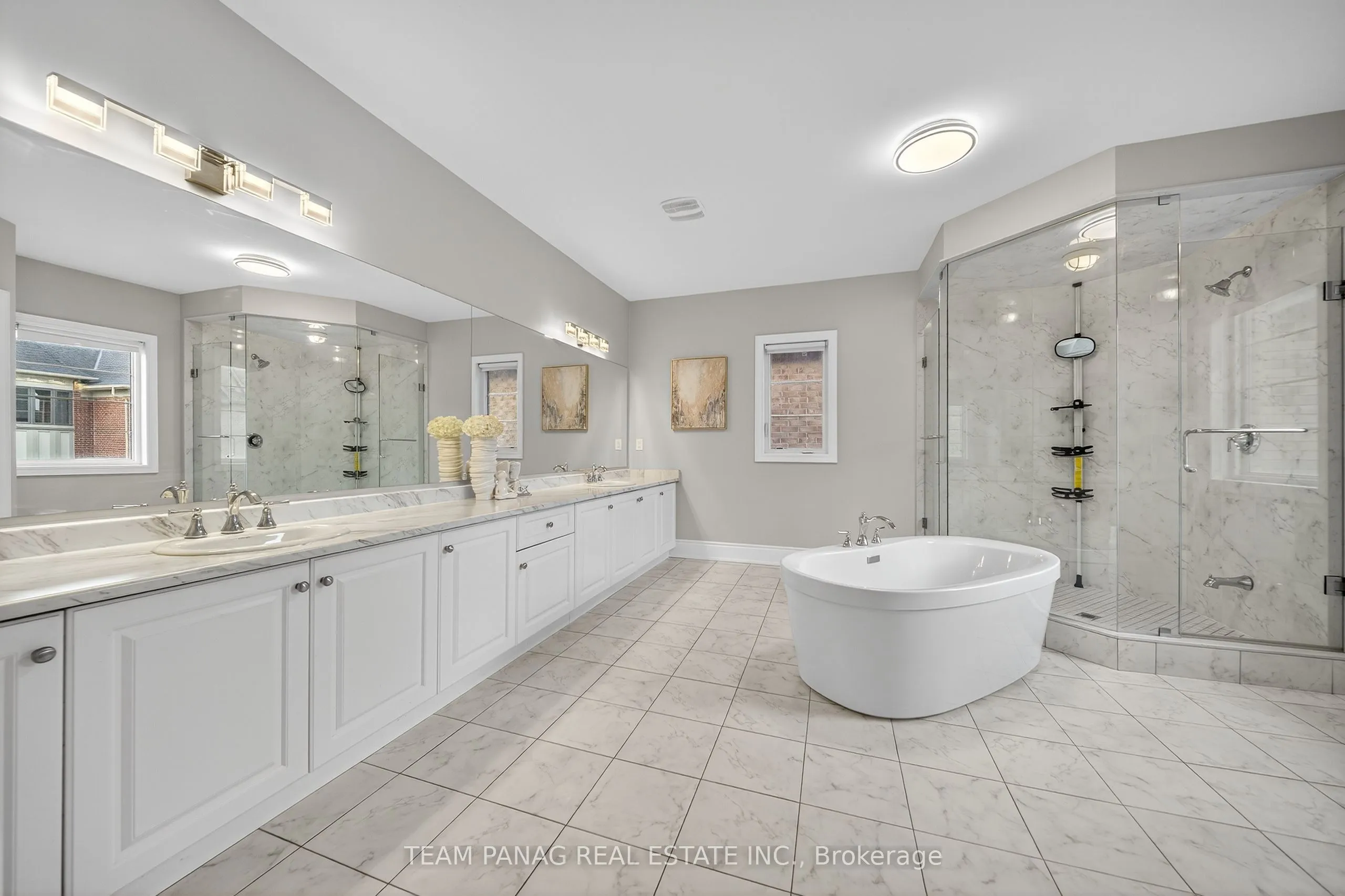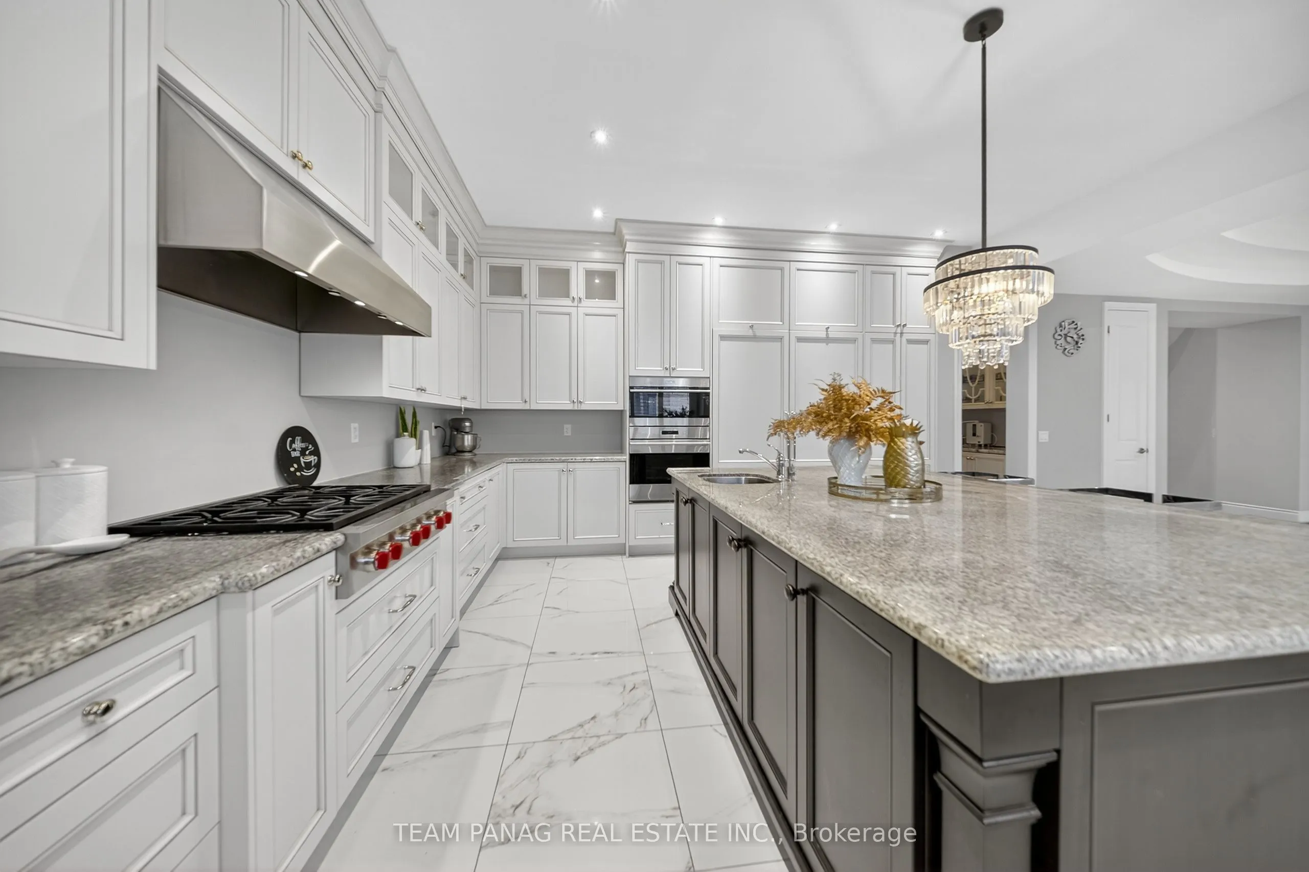 Step into the pinnacle of modern luxury with this stunning approx. 9,000 sq ft of living space featuring 5 spacious bedrooms, 7 baths, and 3 garages. A grand interlocking driveway welcomes you to this architectural masterpiece showcasing 10-ft ceilings on main, 9-ft on 2nd & basement, hardwood floors, coffered ceilings, and custom lighting throughout. The main floor offers an exceptional layout with a formal living room featuring large windows and elegant detailing, a formal dining room perfect for hosting, a private office, and a spacious family room highlighted by a beautiful fireplace, feature wall, and built-in shelving-all designed for both comfort and style. The chef’s kitchen is a true showpiece with top-of-the-line built-in appliances, granite counters, oversized island, custom backsplash, and cabinetry, seamlessly flowing into a bright breakfast area that opens to a covered loggia for effortless indoor-outdoor living. Ascend the stained oak circular staircase, illuminated by a 4×4 skylight, to the luxurious primary suite featuring a private sitting area, fireplace, wet bar, massive walk-in closet, and a 5-pc spa ensuite with soaker tub. All four additional bedrooms offer 3-pc ensuites and walk-in closets. The newly finished basement, with 9-ft ceilings and pot lights, provides the perfect setting for entertainment or relaxation. Every inch of this home radiates elegance, luxury, and sophistication, crafted with impeccable attention to detail-a true masterpiece for the most discerning buyer.