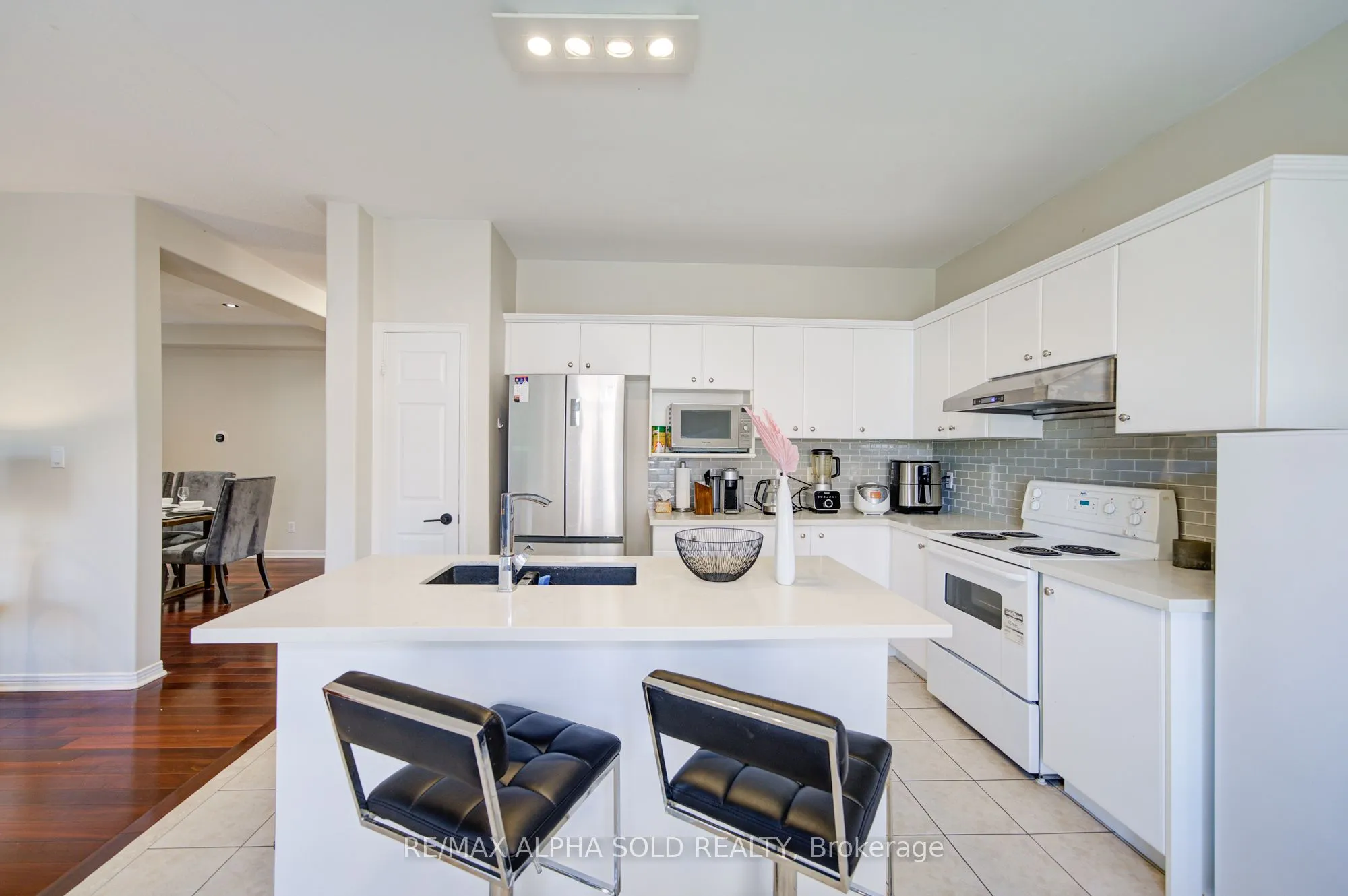 Lucky No. 8 on The Bridle Walk! ~2918 sq.ft. Monarch-built home in family-friendly Berczy with great curb appeal: full brick facade, covered front porch & double garage. Sun-filled interior with 9 ceilings on main and hardwood on both 1st & 2nd levels. Renovated eat-in kitchen with a large breakfast area and walkout to the backyardperfect for play and entertaining. Pot lights throughout; solid oak staircase. Upstairs features a bright open loft/home office with a wall of windows and a modern pendant. The designer’s primary ensuite showcases large-format slab-look porcelain, a curbless walk-in rain shower with a niche, a freestanding tub, a floating double vanity and LED mirrors. The second updated bath offers a frameless glass shower, floating vanity and a modern bidet-style toilet. A second bedroom with its own ensuite (walk-in shower) plus two additional bedrooms complete the level. Separate side entrance to the basement for flexible future use (ideal for in-law/nanny/teen retreat; buyer to verify zoning/permits). Steps to parks & trails; minutes to Stonebridge P.S., Pierre Elliott Trudeau H.S., St. Augustine CHS, GO, shopping and Hwy 407/404. Move-in ready.