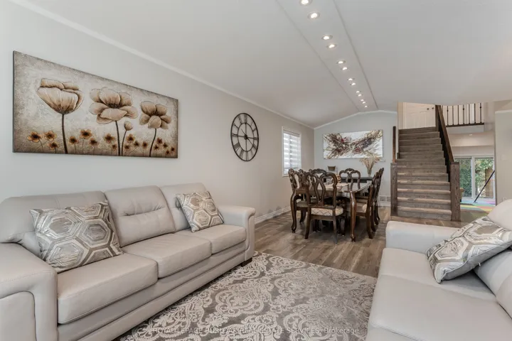 Welcome to this beautifully updated backsplit, nestled in the peaceful rural community of Mount Hope. Offering the perfect blend of charm, functionality, and modern updates, this home is designed for families seeking both comfort and convenience in a serene setting. The curb appeal shines with a freshly redone walkway, updated patio stone and driveway, professionally landscaped gardens, and mature trees that provide shade and character. A two-car garage with inside entry and parking for four vehicles ensures plenty of space for family and guests. Step inside to discover an inviting main floor featuring newer laminate flooring throughout (2023). The bright, open-concept living and dining area boasts vaulted ceilings, creating a spacious and airy feel. The renovated eat-in kitchen (2024) is a true showpiece, complete with quartz countertops & backsplash, and custom cabinetry. A cozy family room anchored by a newer LED electric fireplace is perfect for movie nights, while a convenient main-level bedroom and a stylish 3-piece bathroom (2023) make single-level living an option. Upstairs, the expansive primary suite offers a walk-in closet, joined by an additional well-sized bedroom. A renovated 4-piece bath (2024) completes this level. The fully finished lower level provides a large recreation room, ideal for a children’s playroom, teen hangout, or home office. Outside, the fully fenced backyard is designed for family enjoyment, featuring a gazebo and a brand-new fence (2024). Whether hosting summer barbecues, watching kids play, or simply relaxing under the stars, this outdoor retreat has it all. Set in a welcoming community just minutes from highways, schools, parks, and amenities, this home is the perfect place to create lasting family memories.