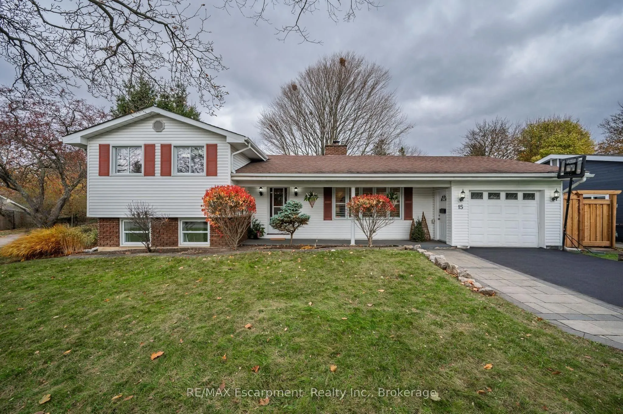 Welcome to 15 Harvest Lane – a beautifully updated 4-level side split in Brantford’s highly loved Greenbrier neighbourhood. This is the kind of street where kids ride their bikes, neighbours actually say hello, and everything you need is just a short walk away. With 3+1 bedrooms and 2 full and renovated bathrooms, this home has the perfect mix of modern updates and comfortable family living. The stone walkway and covered front porch set such a welcoming tone before you even step inside. On the main level, you’ll find a bright living room with a gorgeous floor-to-ceiling wood-burning fireplace (hello, cozy winter nights!), an inviting dining room, and a fresh, functional kitchen with impressive stainless steel appliances, white cabinetry, a great island for weekday breakfasts, and a walk-out to a large two-tier deck overlooking the fully fenced backyard – perfect for kids, pets, and summer BBQs. Upstairs are three generous bedrooms with hardwood flooring and fantastic closet space – ideal for a growing family. The lower level gives you even more room to spread out, with a cozy family room plus a bonus area currently used as a kids’ playroom. And the basement? Fully renovated just two years ago and such a huge value add – featuring a stylish rec room, a spacious 4th bedroom, a modern full bathroom, and a bright, organized laundry area. Other updates include new flooring on the main level, California shutters, and a newer furnace, heat pump, A/C (2024) to keep you comfortable all year long. If you’re looking for a move-in-ready home in a friendly, family-oriented neighbourhood with quick access to parks, schools, shopping, and the 403 – this one truly checks all the boxes. Come see why Greenbrier is so loved, and picture your family settling right in.