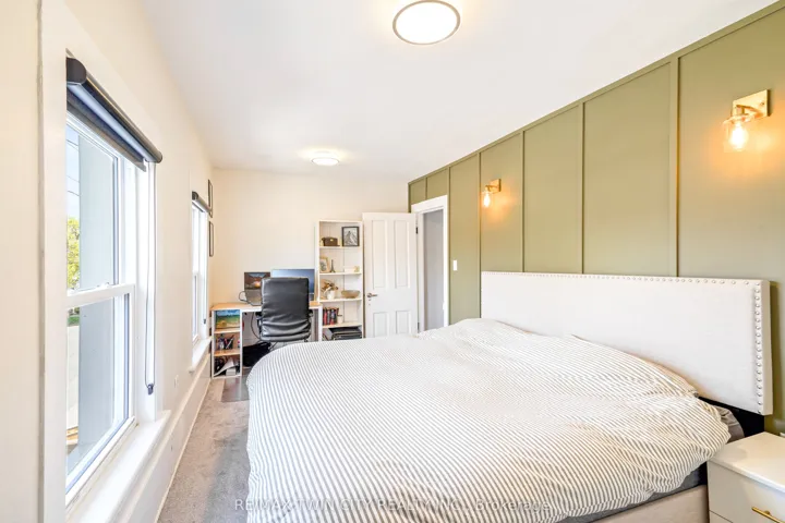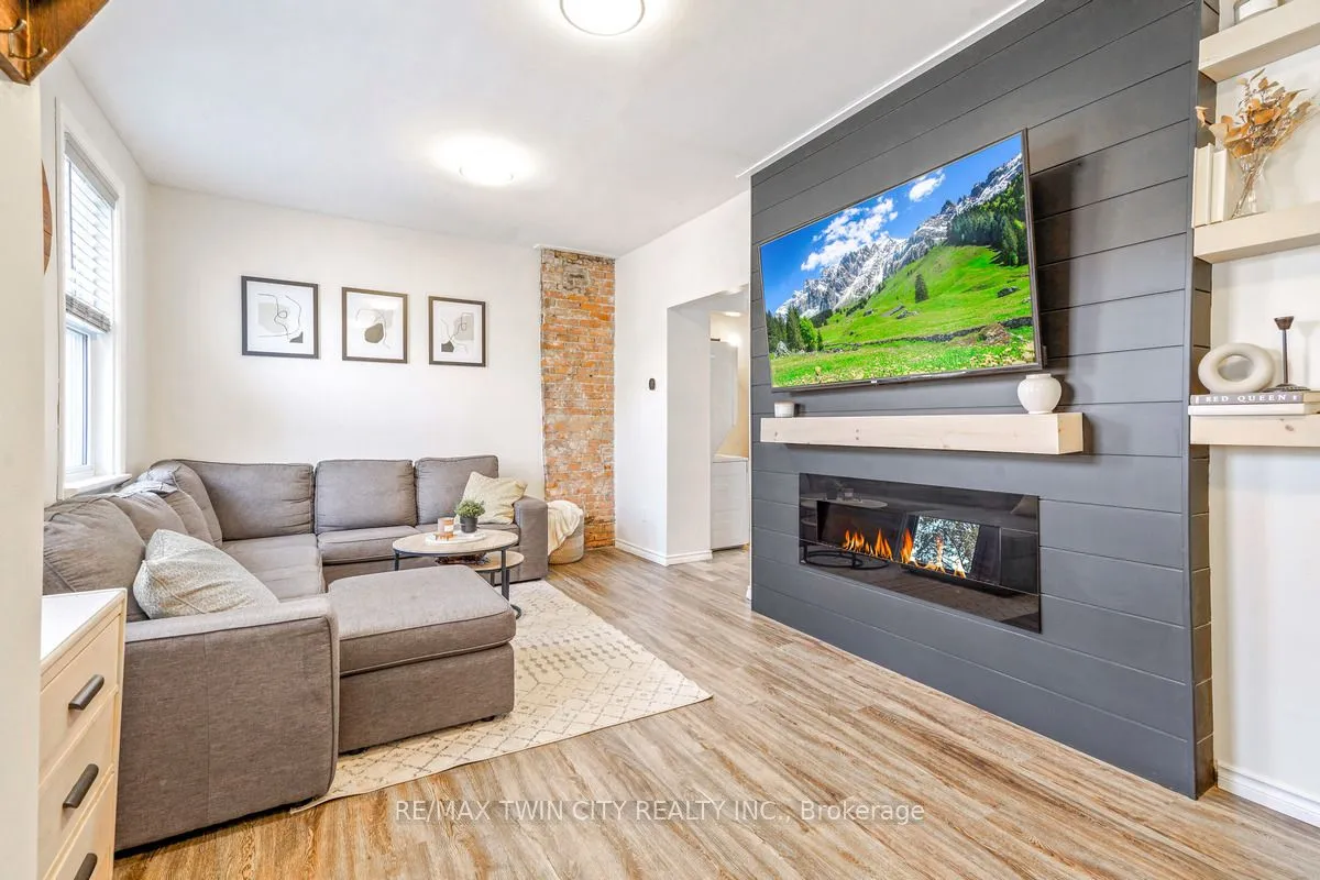 Perfect Starter Home for First-Time Buyers! Welcome to your ideal first home-charming, stylish, and move-in ready! This inviting property features a cozy covered front porch where you can start your mornings with a cup of coffee. Step inside to a bright, open-concept living room with modern luxury vinyl plank flooring, a statement feature wall, and a sleek electric fireplace-perfect for relaxing or hosting friends. The updated kitchen offers plenty of cabinetry, new countertops, and seamless flow into the elegant dining room, where patio doors lead to your private deck and fully fenced backyard-great for summer BBQs, pets, or simply unwinding outdoors. Enjoy the convenience of main floor laundry and plenty of natural light throughout. Upstairs you’ll find two oversized bedrooms filled with character, including charming wainscotting and tall 11″ baseboards. The updated 4-piece bathroom features a tiled shower and a clean, modern feel. The basement includes a dedicated workshop with a large workbench and plenty of storage-ideal for hobbies or future expansion. You’ll enjoy hosting summer barbecues and gatherings with your family and friends in the private backyard space. Recent updates include a new metal roof in 2021, new central air unit in 2024, newly renovated bathroom in 2025, new carpeting upstairs in 2022, new luxury vinyl plank flooring on the main level in 2022, updated vinyl windows, and more. This home has all the features first-time buyers are looking for: charm, modern touches, a functional layout, a private outdoor space, and major updates already done for you. It’s just waiting for you to move in and start living! Book a private viewing today!