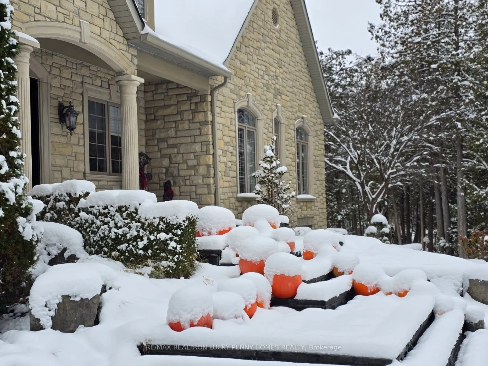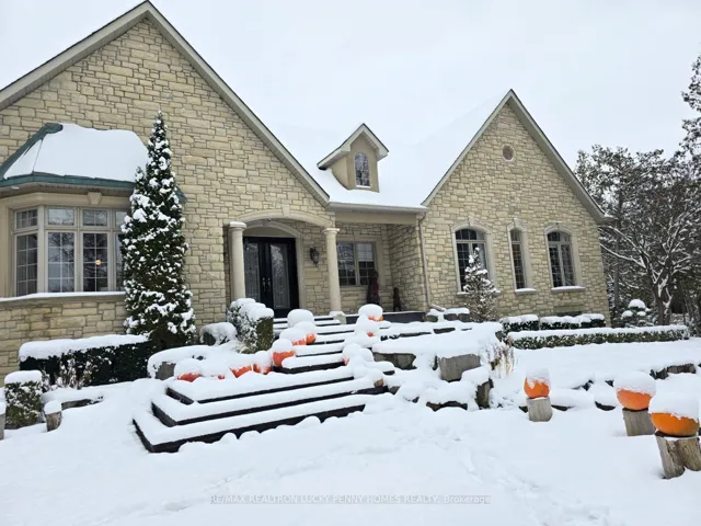 The Ultimate Entertainer’s Dream Home! This one-of-a-kind luxury bungalow offers approximately 3,200 sq ft per level of refined living space on a 2-acre private treed lot in a quiet cul-de-sac, backing onto a serene 20-acre parcel with a km walking trail loop.Step inside to discover a bright, open-concept main floor with 10-foot ceilings, elegant crown moulding, and hardwood and tile floors throughout. The family room features a gas fireplace, built-in shelving, and walkout to the deck, seamlessly connecting to a gourmet kitchen with stainless steel appliances, centre island, and tile flooring. Adjacent breakfast area also walks out to the deck, overlooking the resort-style backyard. The formal dining room offers a gas fireplace and bay window, perfect for gatherings.The primary bedroom suite includes a gas fireplace, walk-in closet, and walkout to the deck, while two additional main-floor bedrooms share a semi-ensuite and feature hardwood floors and large windows. A private office with crown moulding and large window provides a perfect workspace.The professionally finished walkout basement boasts heated floors, 10-foot ceilings, and a spacious Great Room with wet bar, gas fireplace, and walkout to the patio. Additional features include two more bedrooms, an exercise room, and ample storage space-ideal for guests or multi-generational living. Step outside to your backyard oasis featuring an in-ground pool, cabana, and multiple seating areas surrounded by mature trees, creating the ultimate resort experience. The backyard also includes a treehouse and a dog free run fenced area, offering both adventure and freedom for family and pets alike.