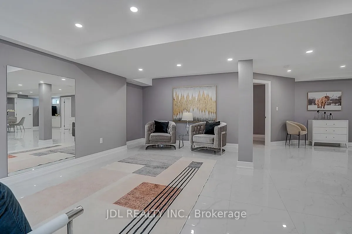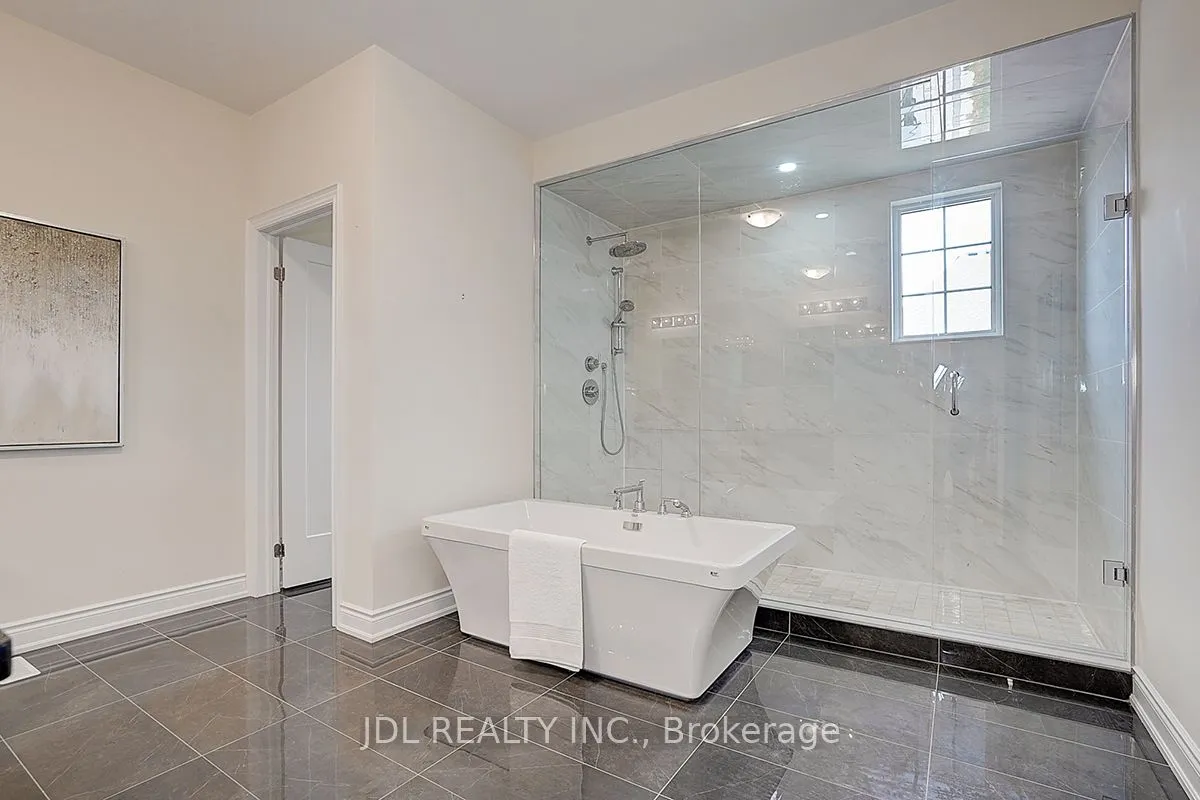 6-year NEW detached home, over 4000 sqf total living space (3036 sqf above ground), 4 spacious bedrooms on 2nd floor plus a 5TH bedroom in basement; 3 FULL WASHROOMS on 2nd floor, plus 4th 2PC washroom on main floor and 5th 3PC washroom in basement; premium corner lot in one of Patterson’s most coveted neighborhoods. Big windows facing east and south allow PLENTY OF NATURAL SUNLIGHT all day long. a grand foyer with DOUBLE-ENTRY doors and sleek porcelain floors. 10-ft ceilings on the main floor, 9-ft ceilings on the 2nd floor. OFFICE on the main floor impresses with soaring 11-ft ceilings, while the elegant living and dining room features a DOUBLE-SIDED GAS FIREPLACE, creating a warm and inviting atmosphere. MODERN custom kitchen, equipped with built-in JENN AIR APPLIANCE, stone countertop, a center island with breakfast bar, and a spacious eat-in area that opens to the backyard. An adjoining family room with A COFFERED CEILING and SOUTHEAST EXPOSURE, enhanced by POT LIGHTS and rich 5″ engineered hardwood floors throughout. CENTRAL VACUUM. MASTER BEDROOM a primary retreat with a 5-piece spa-inspired ENSUITE featuring an oversized seamless GLASS SHOWER, DOUBLE VANITIES, and sleek porcelain finishes. Convenient 2ND FLOOR LAUNDRY adds modern practicality. The FINISHED BASEMENT extends the living space with a large recreation room, a 5th bedroom, and a sound-proofed Karaoke room, ideal for family fun and entertainment. FULL HOUSE FRONT AND BACK with SECURITY CAMERAS. Located steps from parks, scenic trails, boutique plazas, and directly across from Eagles Nest Golf Club. 5 minutes to Maple GO (ideal for commuters), Mackenzie Health Hospital, St. Theresa of Lisieux Catholic HS, Alexander Mackenzie HS, and major highways.
