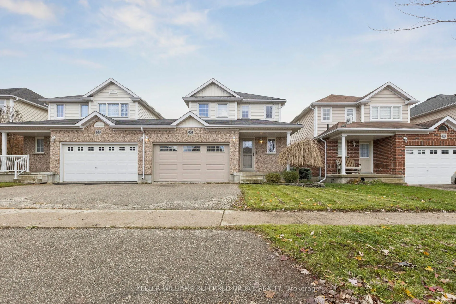 Your search is over! Welcome to 35 Robb Rd, This charming 3-bedroom semi-detached home in Elmira offers about 1,750 sq. ft. of finished space, including the basement. Attached only by the garage, it has no shared living-space walls. The bright, carpet-free main floor features a 2-piece bath, modern kitchen with stainless-steel appliances, stylish backsplash, and a light-filled living room with laminate flooring. From the dining area, walk out to a fully fenced backyard with a large deck, and plenty of green space. Upstairs are 3 spacious bedrooms including the primary with his and hers closets. While the finished basement adds built-in storage, a small playroom nook, laundry/utility room, and a rough-in for a 3-piece bath. Extras include an oversized 1.5-car garage plus parking for two more in the driveway. Recent updates:A/C (2019), garage door (2019), and fully finished basement.