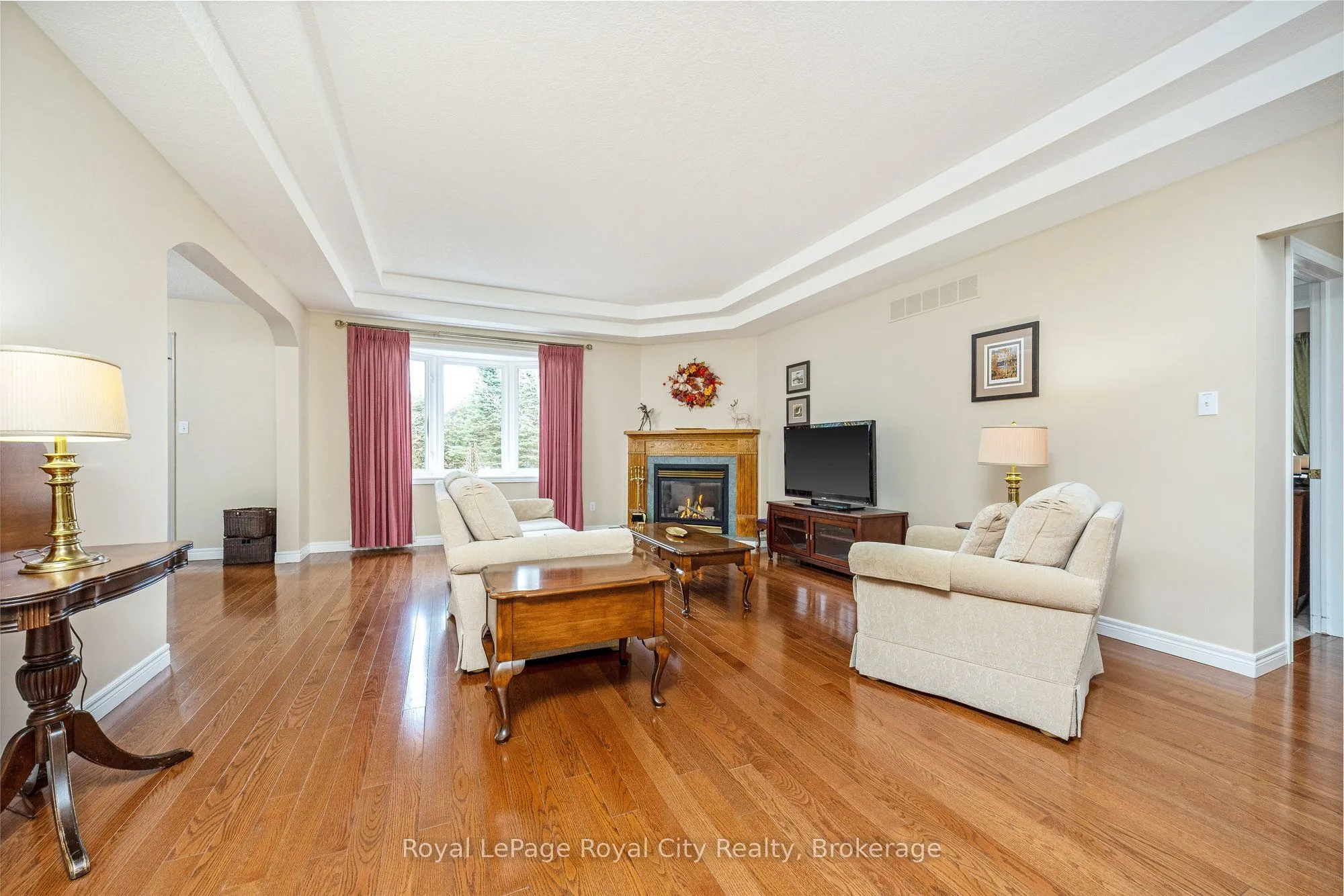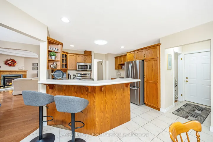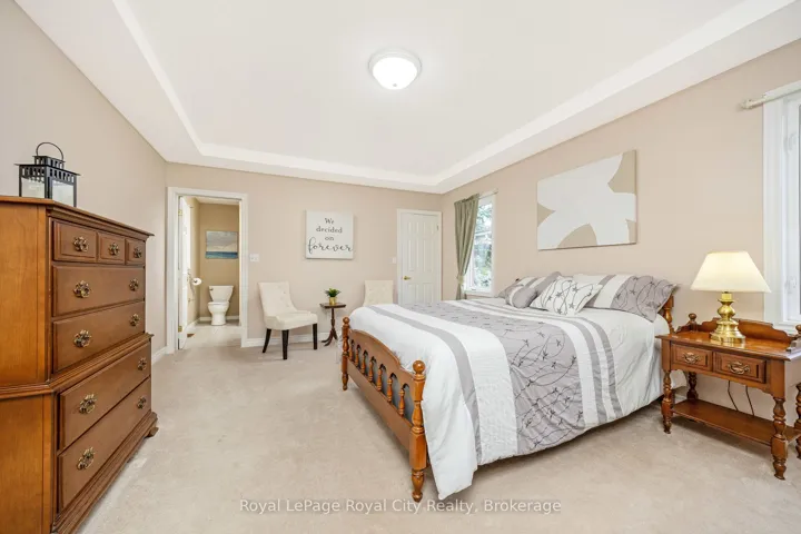 Welcome to 120 Bernardi, nestled on a quiet, mature street, this charming all-brick bungalow has been lovingly maintained by its original owners since it was built in 2000. The main floor features a warm and inviting living room with hardwood floors and a gas fireplace, along with both a formal dining room and a bright dinette area. There are three main-floor bedrooms and two full bathrooms, including a spacious primary suite complete with a 4-piece ensuite and walk-in closet. Main floor laundry adds everyday convenience, and thoughtful accessibility features include a stairlift in the garage for easy entry into the home, as well as an additional stairlift to the basement. The lower level offers an expansive, open-concept recreation room finished with berber carpet, along with a generous fourth bedroom and a 3-piece bath-a comfortable and flexible space for guests or family. The backyard is a peaceful retreat, offering excellent privacy and a large newer wood deck ideal for outdoor enjoyment. The location is highly desirable, just steps from Valentino Park and within close proximity to Harris Mill Public School. This is a beautifully cared-for property that truly shows 10+.
