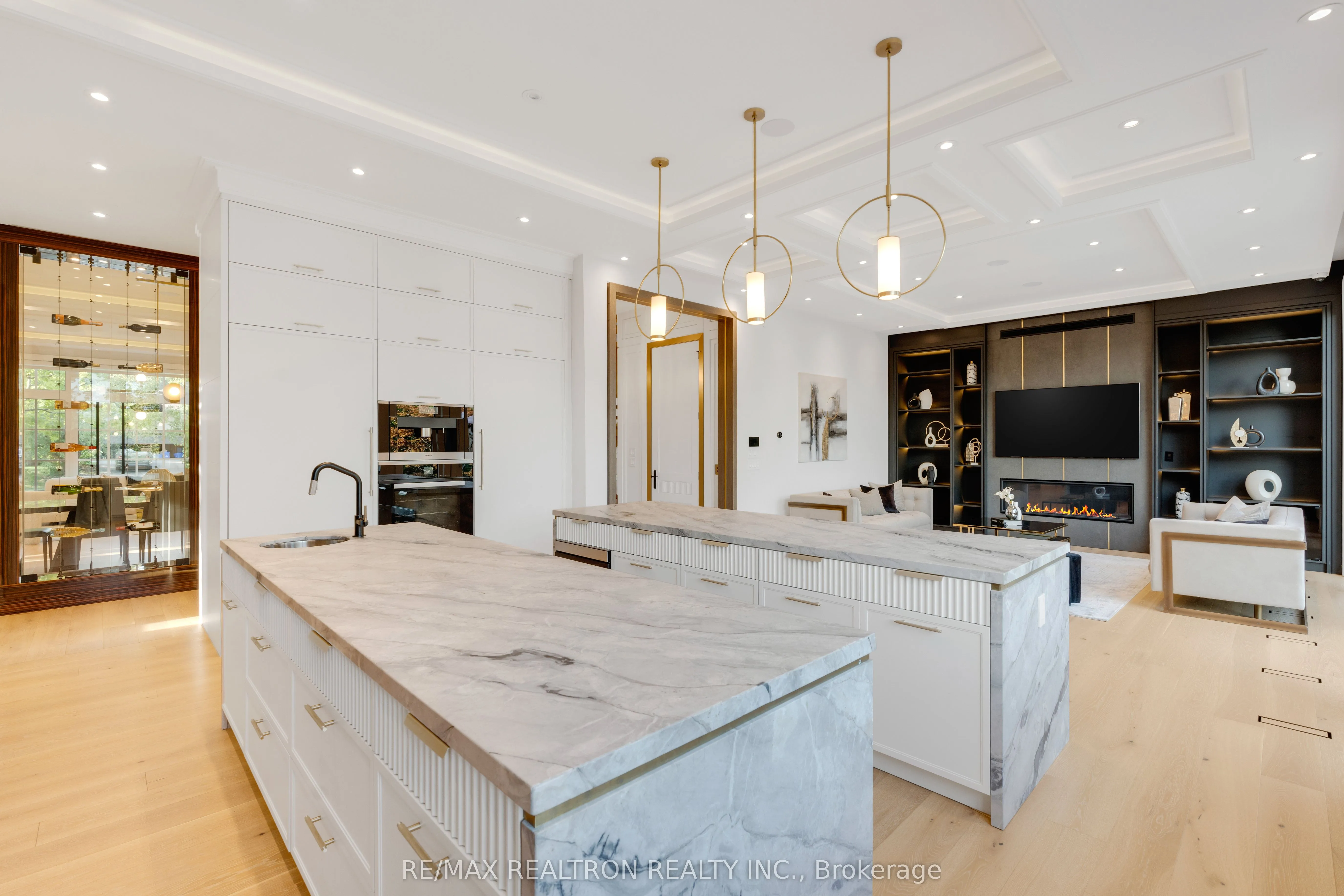 Modern Masterpiece in the Uplands Golf Community! A rare fusion of architectural innovation, privacy, and prestige. This newly built limestone estate offers nearly 9,000 sq.ft. of refined living, set on an elevated, tree-lined lot within one of Vaughan’s most coveted enclaves. A heated circular driveway, radiant-heated porch, and discreet side entrance set the stage for sleek modern design, soaring windows, and sweeping southern views. The welcoming foyer with large heated slabs leads to a striking open-concept layout. A glass elevator, formal dining room, executive office, expansive family room, and grand chefs kitchen with dual marble islands and a full butlers kitchen create a seamless flow for both everyday living and sophisticated entertaining. Floor-to-ceiling windows overlook the resort-style backyard oasis .Five private bedroom suites each feature a spa-inspired en-suite and walk-in closet. The primary retreat elevates luxury with heated floors, a freestanding soaking tub, and panoramic views. A distinct two- storey loft with private entrance, kitchen, laundry, fireplace, and dramatic windows offers versatility as a guest residence, executive office, or studio. The fully finished lower level is designed for lifestyle and leisure, complete with radiant heated floors, a nanny suite, theatre, wet bar, multiple fireplaces, and smart-home integration. The resort-inspired exterior is an entertainers dream, featuring an oversized saltwater pool, integrated spa, multiple lounge areas, and rough-ins for a future cabana. All just minutes from Yonge Street, Hwy 407/7, golf clubs, Uplands Ski Centre, and the upcoming subway extension.