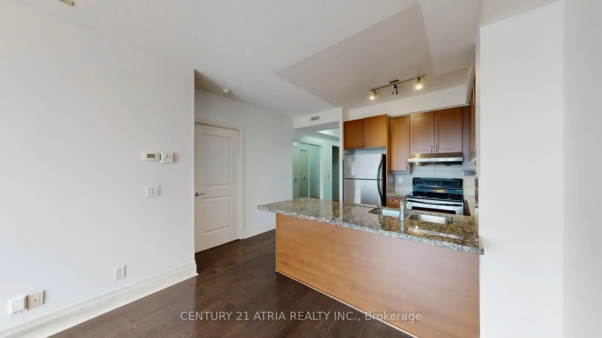 Welcome to the heart of Downtown Markham! This bright and spacious south-facing 1-bedroom + den suite invites you in with an open, airy layout and plenty of natural light. The versatile den is perfect as a second bedroom, home office, or cozy reading nook. Enjoy two full bathrooms, 9 ft ceilings, and a comfortable primary bedroom complete with a 4-piece ensuite and walk-in closet. The kitchen features granite countertops and stainless steel appliances, and the suite has been freshly painted for a crisp, clean feel. Step outside and discover everything you need just moments away – VIVA transit, GO Train, Cineplex, 24/7 Good Life Fitness, restaurants, shops, YMCA, schools, and more. With quick access to Hwy 407, this welcoming home places convenience and comfort right at your doorstep.