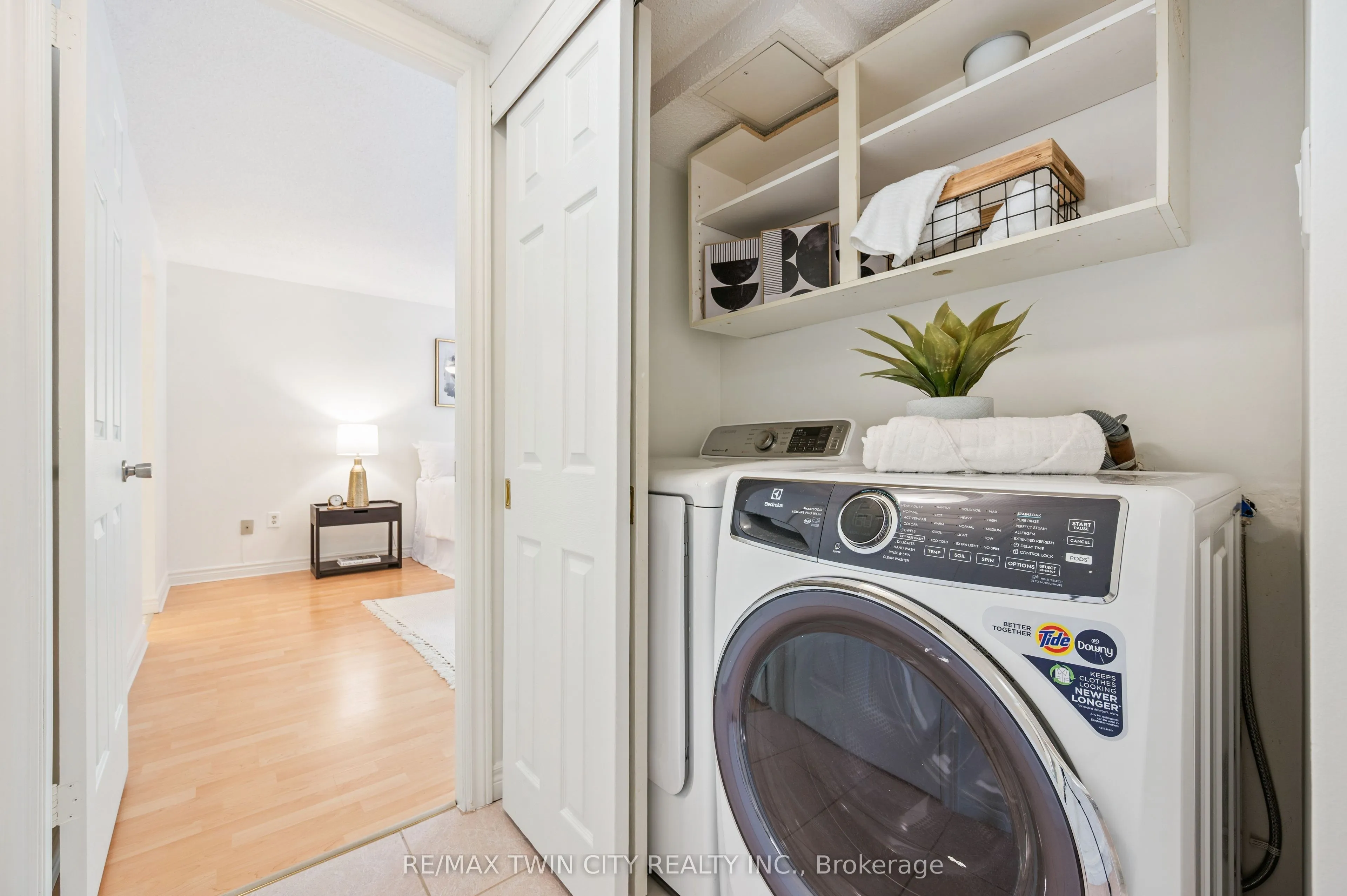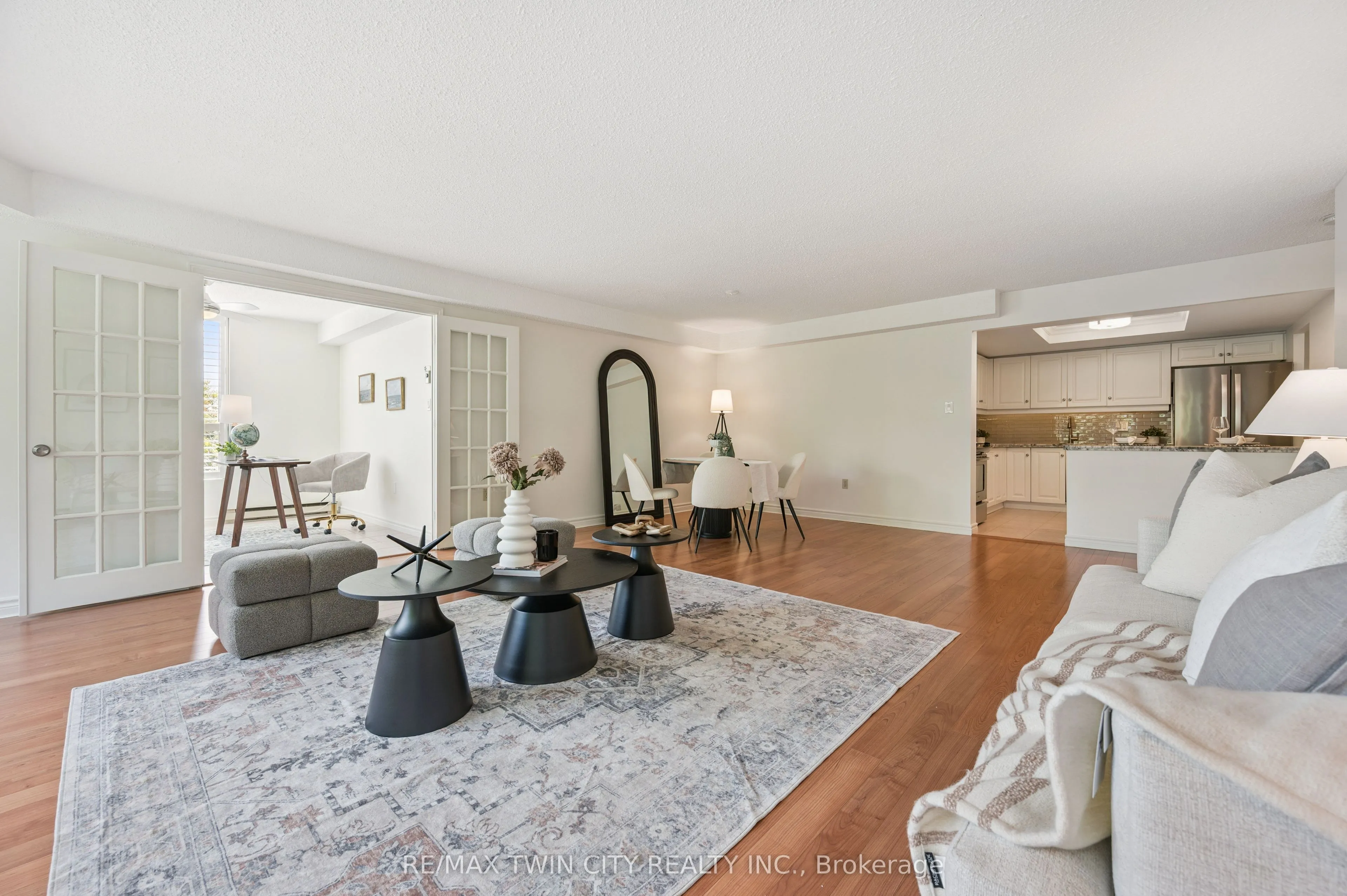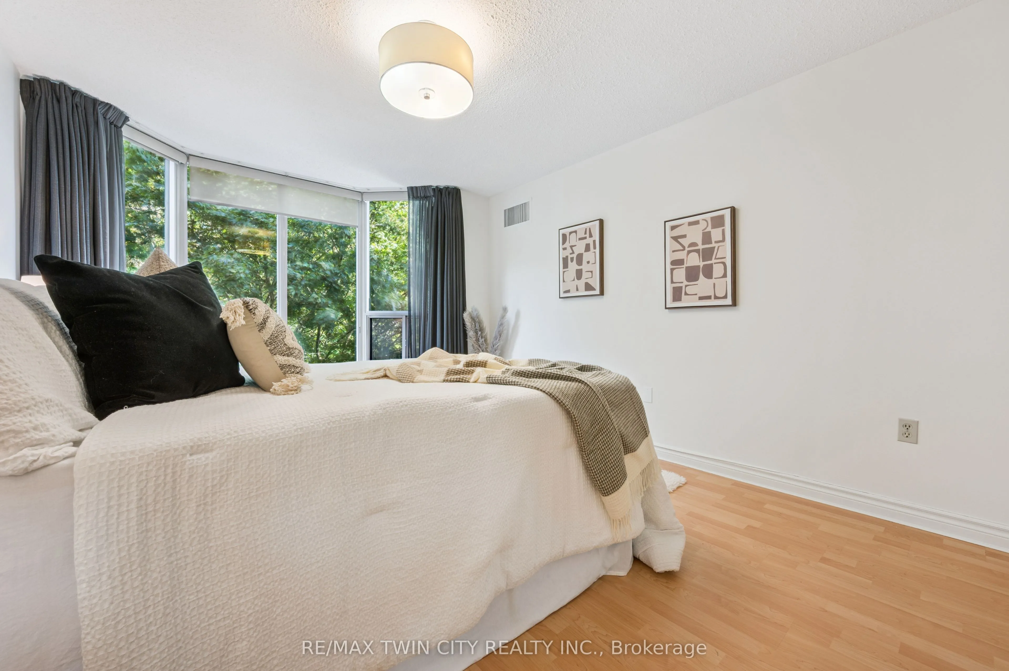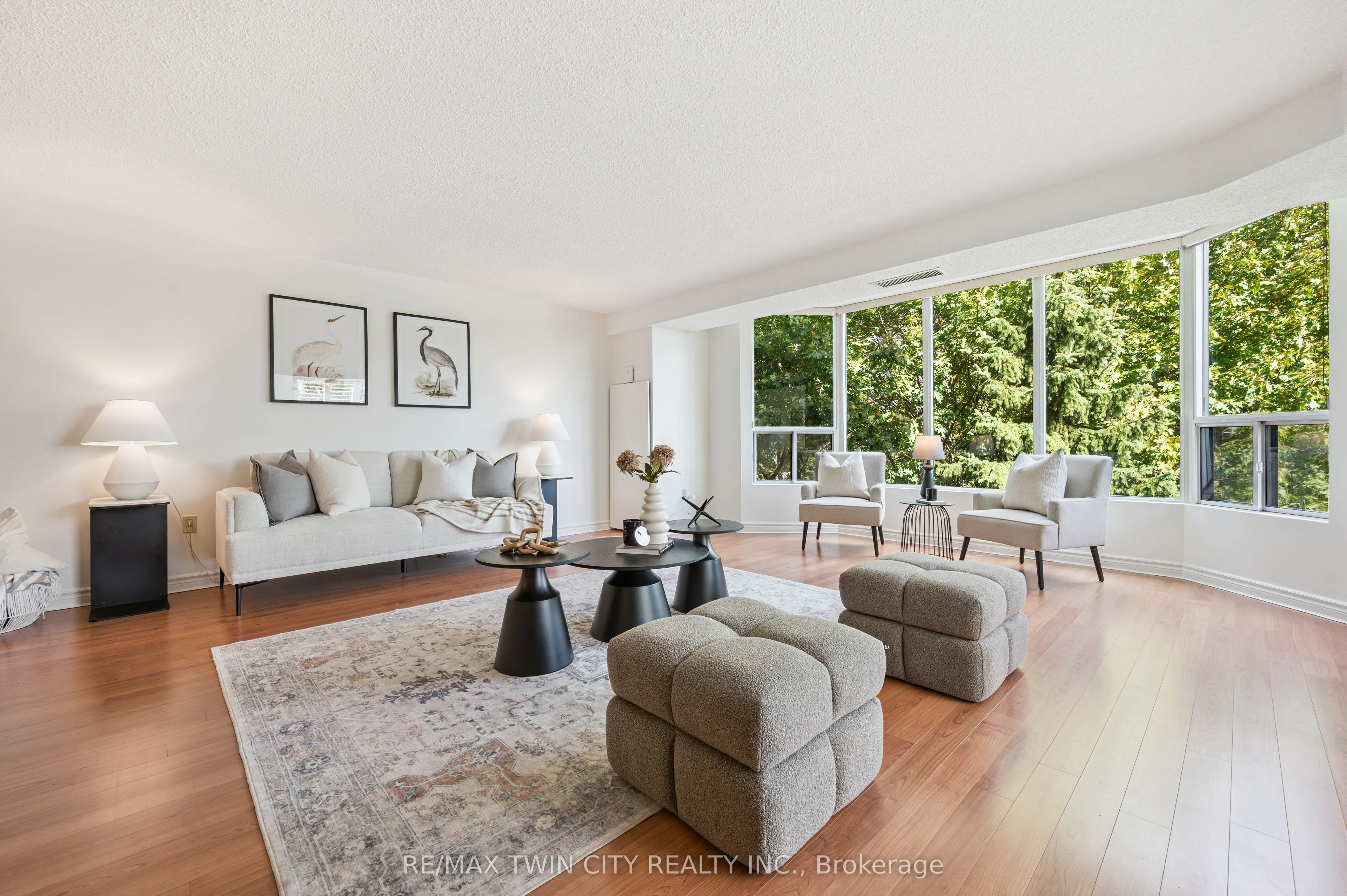 Welcome to boutique living at Village Gate, in one of Burlington’s most sought-after Lakeshore areas. This 2 bed plus den, 2 bath corner suite offers over 1,500 square feet of thoughtfully planed living space with a quiet treed setting and peaceful views of the manicured grounds, Rambo Creek and Lake Ontario. Designed for style and functionality, the updated kitchen features quartzite counters, stainless-steel appliances, glass subway tile backsplash, under cabinetry lighting, a moulded tray ceiling, pot lights, and a breakfast bar. The open concept living and dining areas enjoy eastern exposure, filling the space with natural light through the tree-lined windows and the generous layout grants enough room for multiple seating areas to entertain comfortably. An adjacent den with French doors, California shutters and glimpses of the lake provides an ideal space for a home office, reading room or dinette. The primary suite is equipped with a large walk-in closet, custom organizers and a 5-piece ensuite with marble vanity, his and her sinks, standalone shower, and tiled jetted tub. Additional highlights include a spacious second bedroom, a 3-piece bath with glass shower, side by side in-suite laundry, a front coat closet, custom walk-in pantry, built-in closet organizers, and a separate storage locker. Residents enjoy the benefits of underground parking, ample visitor parking, and condo fees inclusive of all utilities, cable, and internet. The updated lobby, meticulous grounds, well-managed community and quiet atmosphere from its exclusive 39 suite capacity make living at Village Gate a pleasure. Located within walking distance to downtown shops, cafés, restaurants, Spencer Smith Park, the waterfront trail, hospital, and major highways, this residence offers a refined, low-maintenance lifestyle with every convenience at your doorstep.