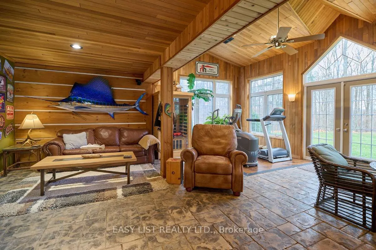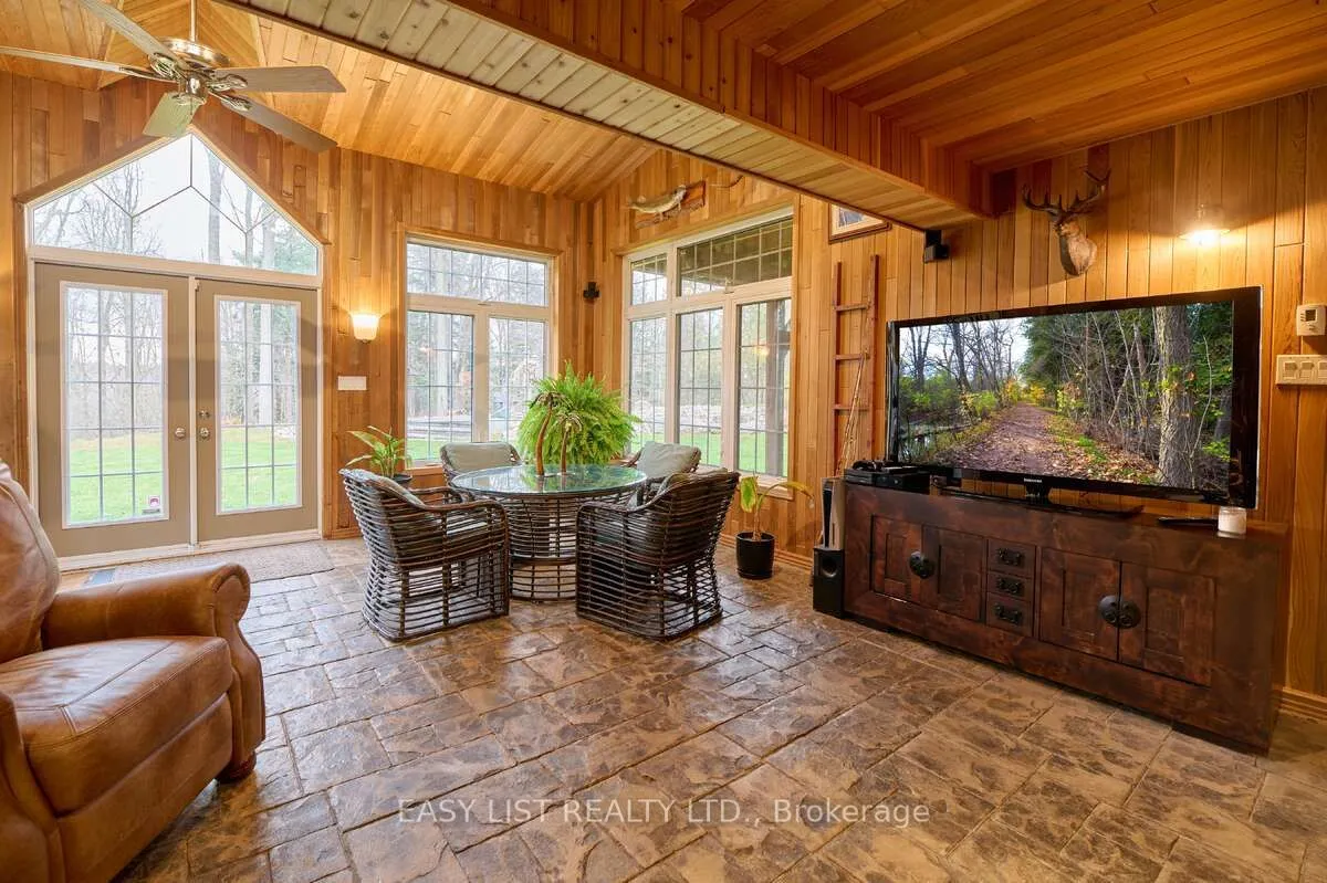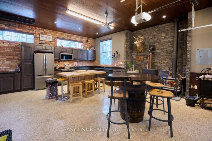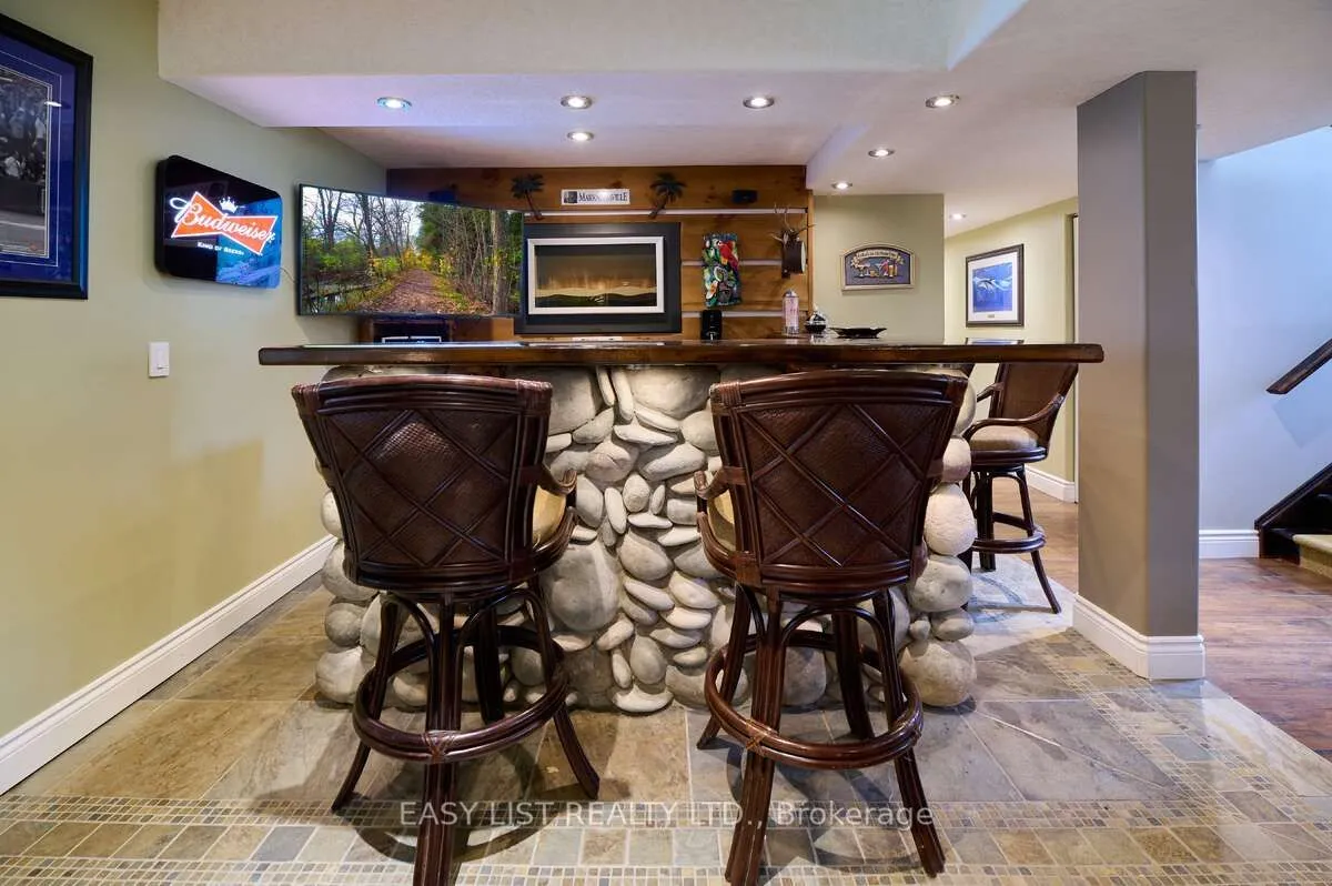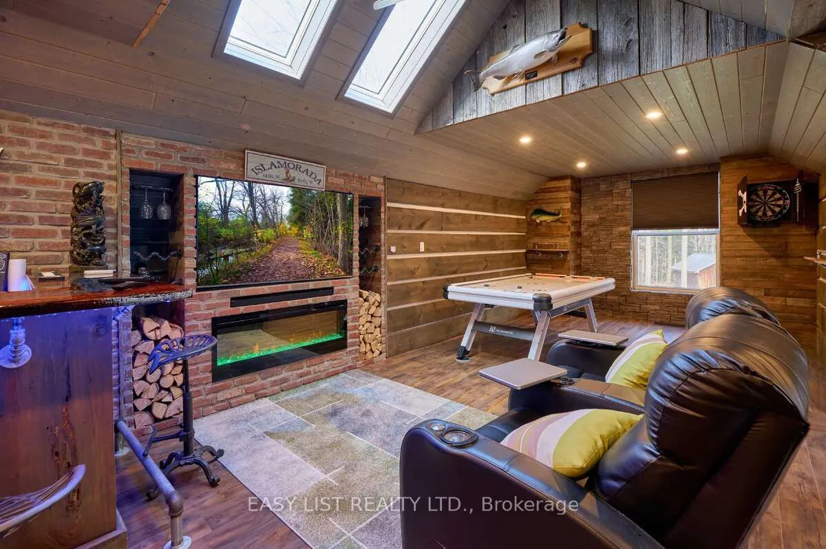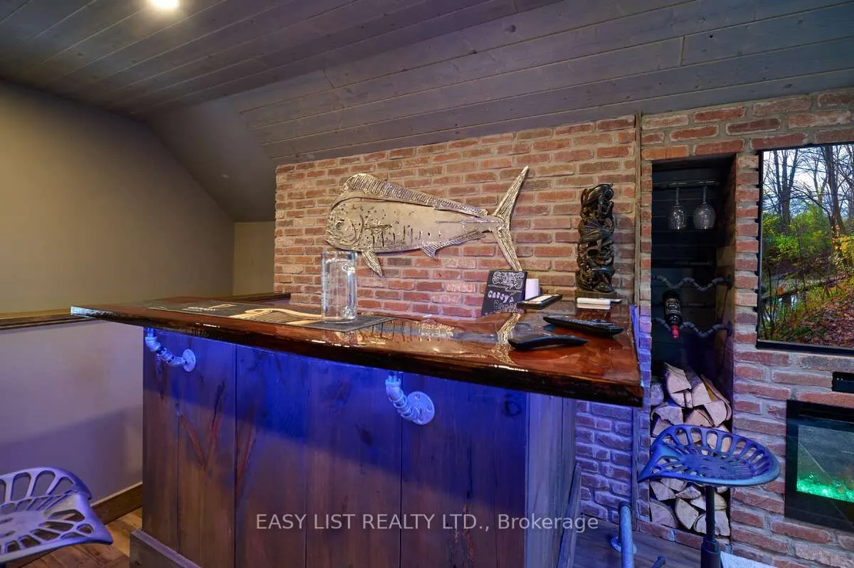 For more info on this property, please click the Brochure button. Welcome to 1078 Berlett’s Road – a truly one-of-a-kind property. This custom two-storey raised bungalow, built in 1967, offers 3,028 sq. ft. of beautifully renovated living space across two levels. With only two owners in its lifetime, it’s easy to understand why once you arrive. The 3 + 1 bedroom, 2 bathroom layout charms immediately, set on 6.3 acres of wooded property just minutes from city conveniences. Located only 5 minutes from Costco and the Waterloo Boardwalk, yet steps from Schneider’s Bush Conservation Area, you’ll enjoy nature walks, bird watching, and cross-country skiing right at your doorstep. Inside, the home features a custom Acorn kitchen with granite countertops, hardwood flooring, and river-rock accents throughout. The inviting living room boasts 9′ ceilings, double skylights, and built-in cabinetry framing a rustic lodge-style river-rock fireplace-an instant showpiece. Outdoor living is equally impressive, with two concrete patios (one covered, one open for fires) and two raised decks with glass railings, offering space to entertain, work, and relax. A highlight of the property is the 1,316 sq. ft. two-storey finished detached garage, built in 2013. With 11′ ceilings, two overhead doors, heated floor, a wood stove, pellet stove, kitchen cabinetry, and a full home theatre, it’s a dream workspace and retreat. Ascend the custom staircase – crafted from wood harvested directly from the property – to a spectacular games room complete with a fireplace and custom-built bar. Outfitted with a 12-foot projection screen, Bose surround sound, fridge, and stove, this cozy hideaway makes the perfect dog house or entertainment hub for any occasion.