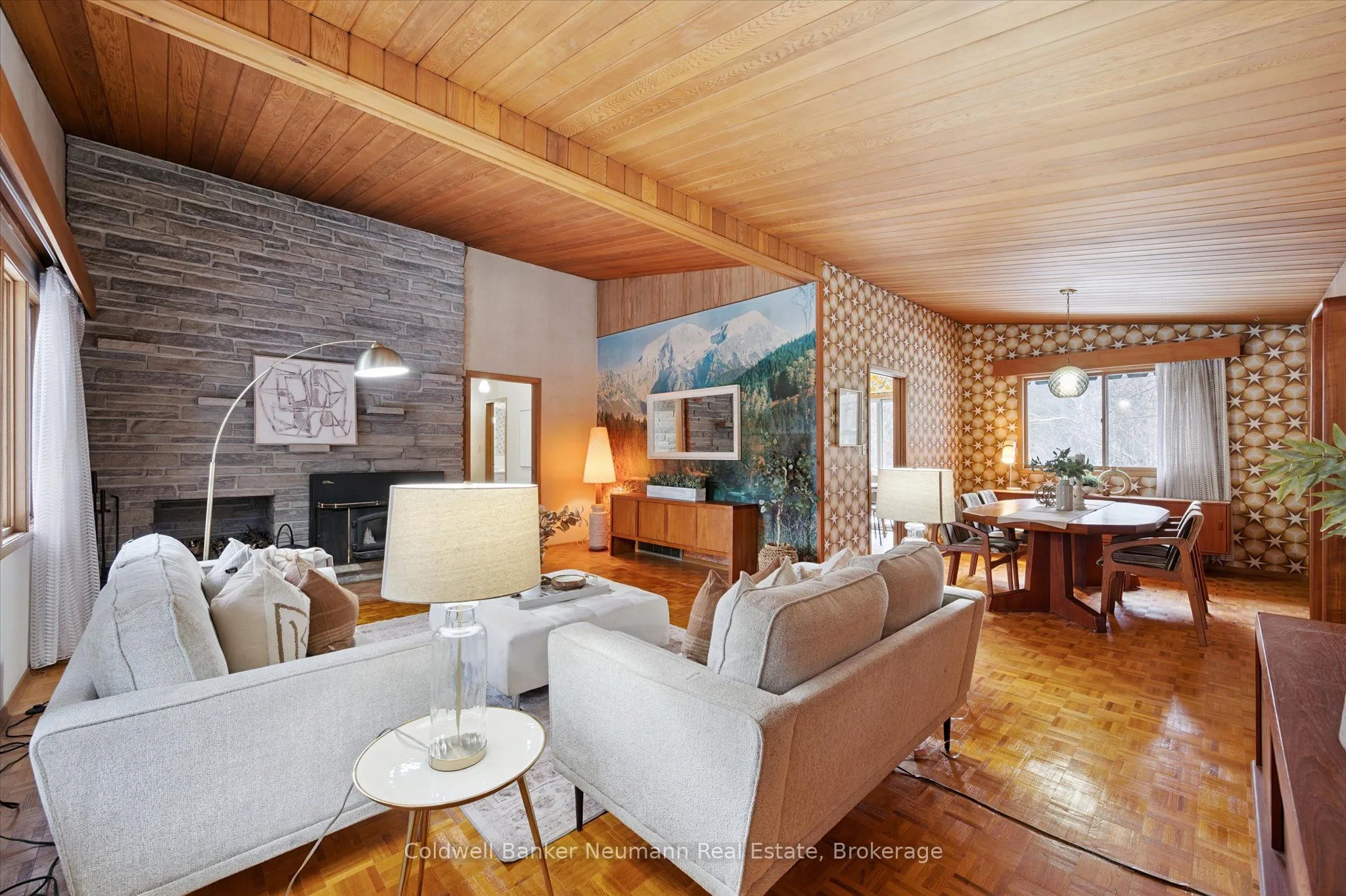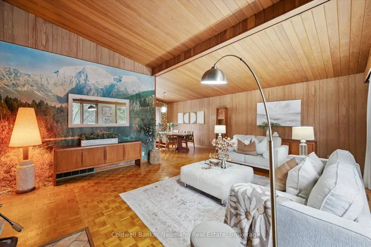 Step into this spacious 5-bedroom raised bungalow and embrace its unmistakable retro vibe-a style lover’s dream with personality you don’t find in today’s builds. The moment you enter, you’ll feel it! Soaring wood cathedral ceilings in the living and dining rooms, creating dramatic lines and warm, mid-century character. The gorgeous stone feature fireplace becomes the natural focal point, echoing that classic 70’s charm while still feeling timeless and inviting.The carpet-free layout highlights the home’s original details, allowing its vintage appeal to shine through. Think cool architectural touches, natural textures, and wide-open spaces ready to be styled with modern flair or restored to retro perfection. Downstairs, the bright walk-out basement continues the theme with endless potential to embrace a groovy rec room feel, a chic studio, or an expanded family zone. Outside, the sprawling half acre lot offers room to dream, with a 2-car garage and plenty of parking for a busy household.This home is overflowing with character and ready for a buyer who appreciates nostalgic style and wants to put their personal touch on a truly unique property. A rare find that celebrates the best of retro design while offering space, light, and possibility at every turn.