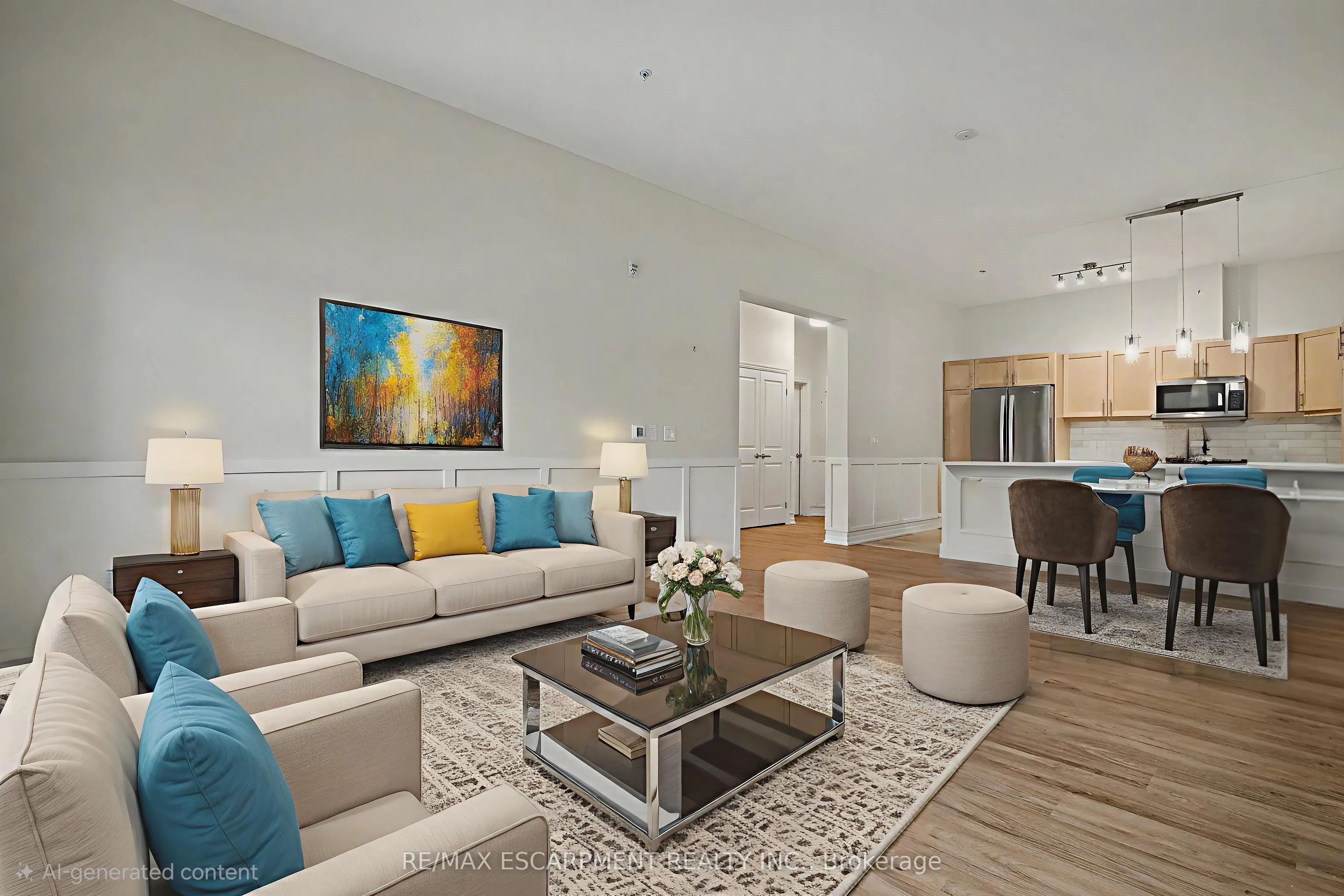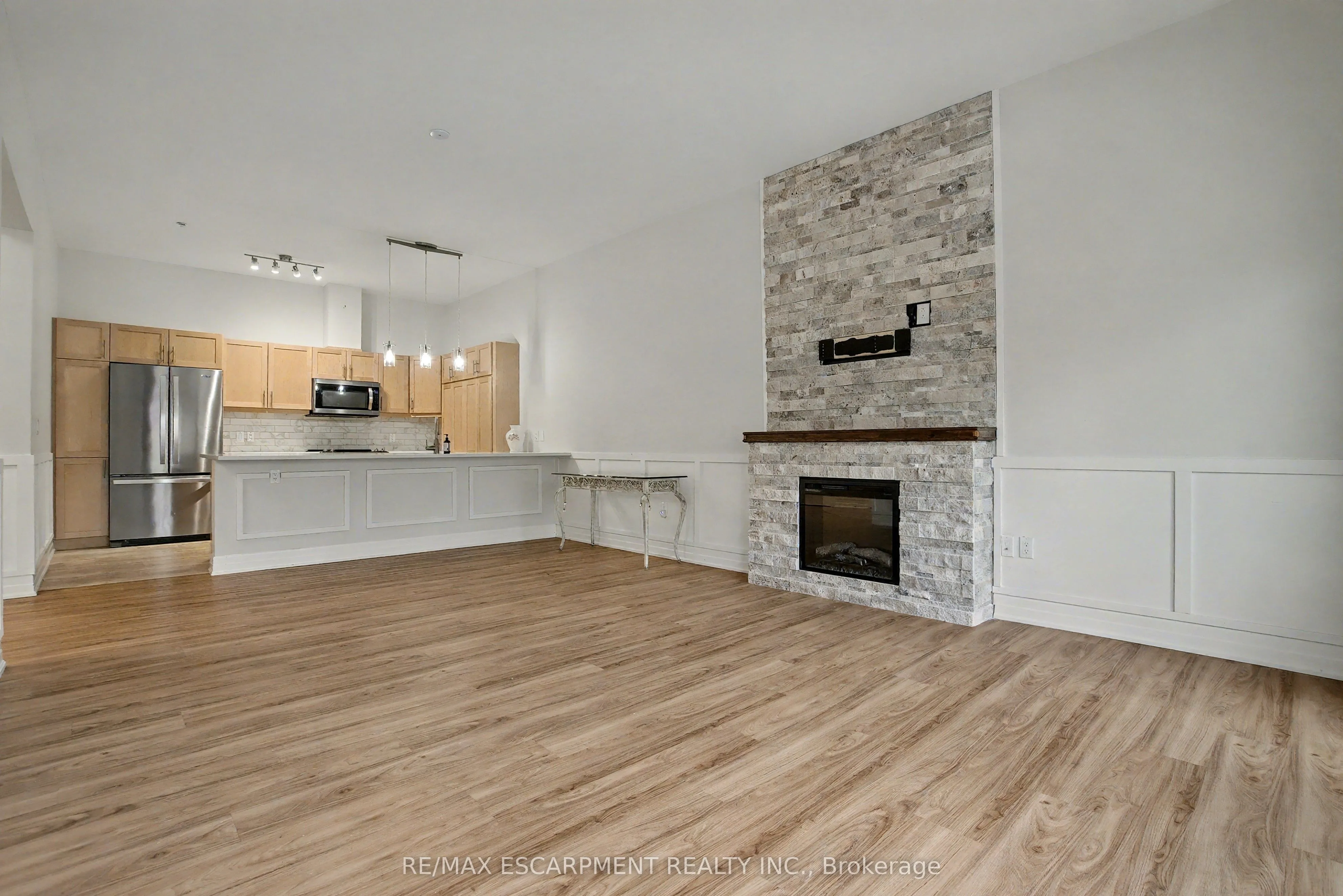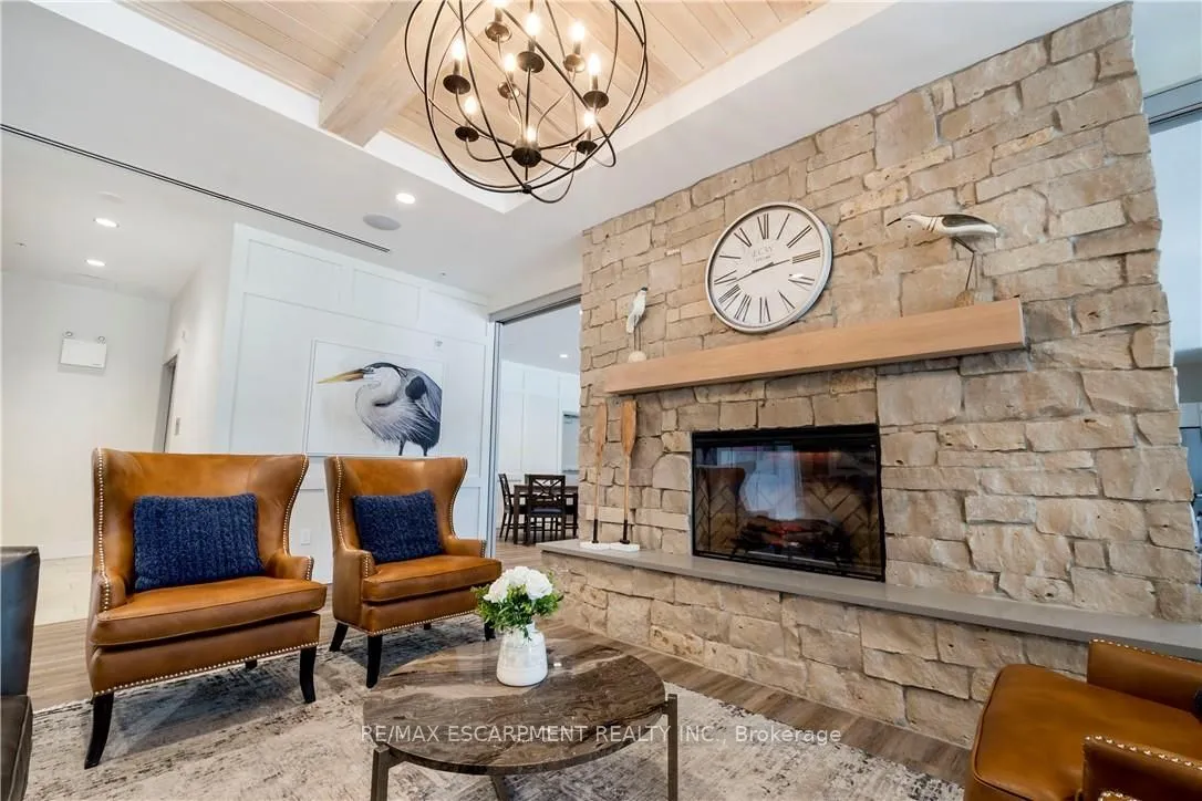 Welcome to the Upper Mill Pond apartments at St. Elizabeth Village, a gated 55+ community offering a vibrant lifestyle with modern conveniences. This home is one of the larger one bedroom layouts at 890 square feet and features open concept living with soaring 10 foot ceilings and luxury vinyl flooring throughout. The kitchen flows seamlessly into the spacious living and dining area and includes a peninsula with seating for casual meals or entertaining. The living space is bright and welcoming, with South-facing windows that fill the home with natural light all day. Step outside to the large 384 square foot private outdoor terrace, available exclusively to this unit, providing a rare opportunity for outdoor living and entertaining. The home has been tastefully updated with wainscoting throughout, a custom stone fireplace in the living room, and built-in cabinets in the bedroom for added storage. Additional conveniences include underground parking and a private storage locker. Residents of this building enjoy access to outstanding amenities including a heated indoor pool, gym, saunas, hot tub, and golf simulator. The Village also offers a wide range of services just steps away such as a doctors office, pharmacy, massage clinic, and public transportation. Within a five minute drive you will also find grocery stores, shopping, and restaurants. This home combines thoughtful updates, a unique outdoor terrace, and a welcoming community atmosphere, creating an exceptional opportunity to enjoy all that St. Elizabeth Village has to offer.