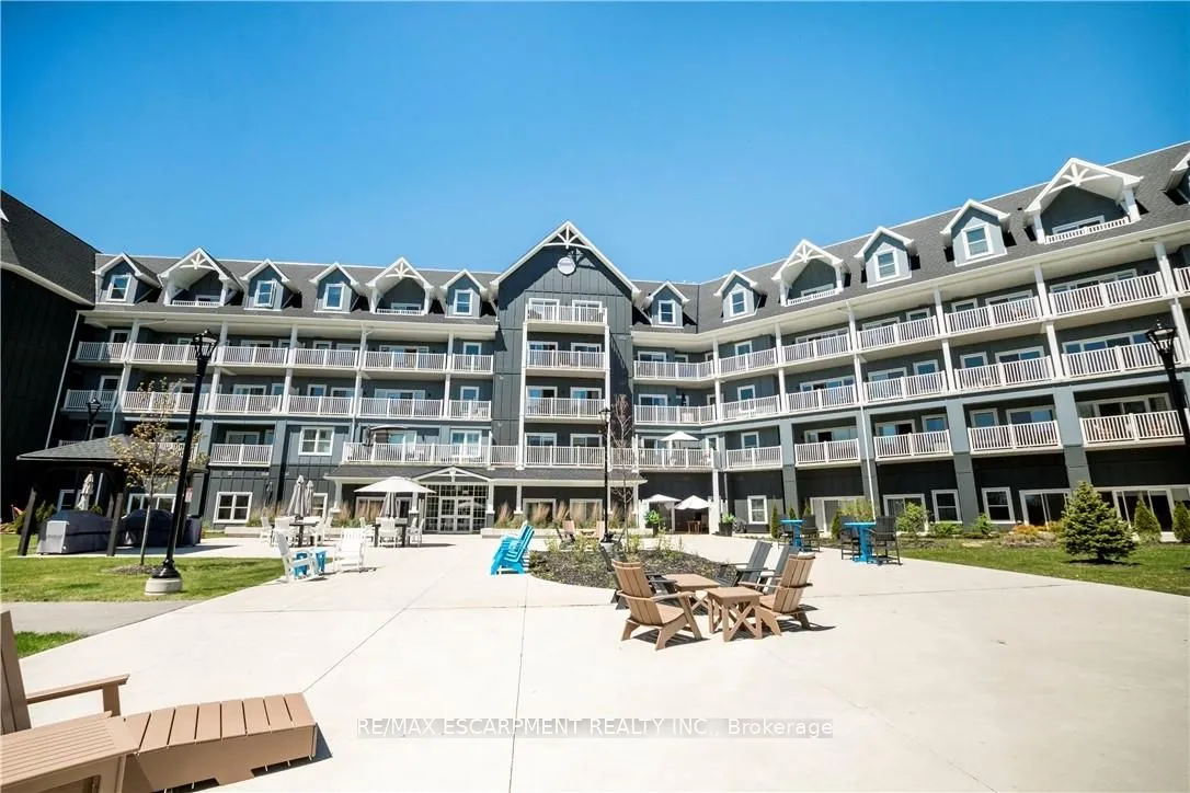 Welcome to the Upper Mill Pond apartments at St. Elizabeth Village, a gated 55+ community offering a vibrant lifestyle with modern conveniences. This home is one of the larger one bedroom layouts at 890 square feet and features open concept living with soaring 10 foot ceilings and luxury vinyl flooring throughout. The kitchen flows seamlessly into the spacious living and dining area and includes a peninsula with seating for casual meals or entertaining. The living space is bright and welcoming, with South-facing windows that fill the home with natural light all day. Step outside to the large 384 square foot private outdoor terrace, available exclusively to this unit, providing a rare opportunity for outdoor living and entertaining. The home has been tastefully updated with wainscoting throughout, a custom stone fireplace in the living room, and built-in cabinets in the bedroom for added storage. Additional conveniences include underground parking and a private storage locker. Residents of this building enjoy access to outstanding amenities including a heated indoor pool, gym, saunas, hot tub, and golf simulator. The Village also offers a wide range of services just steps away such as a doctors office, pharmacy, massage clinic, and public transportation. Within a five minute drive you will also find grocery stores, shopping, and restaurants. This home combines thoughtful updates, a unique outdoor terrace, and a welcoming community atmosphere, creating an exceptional opportunity to enjoy all that St. Elizabeth Village has to offer.