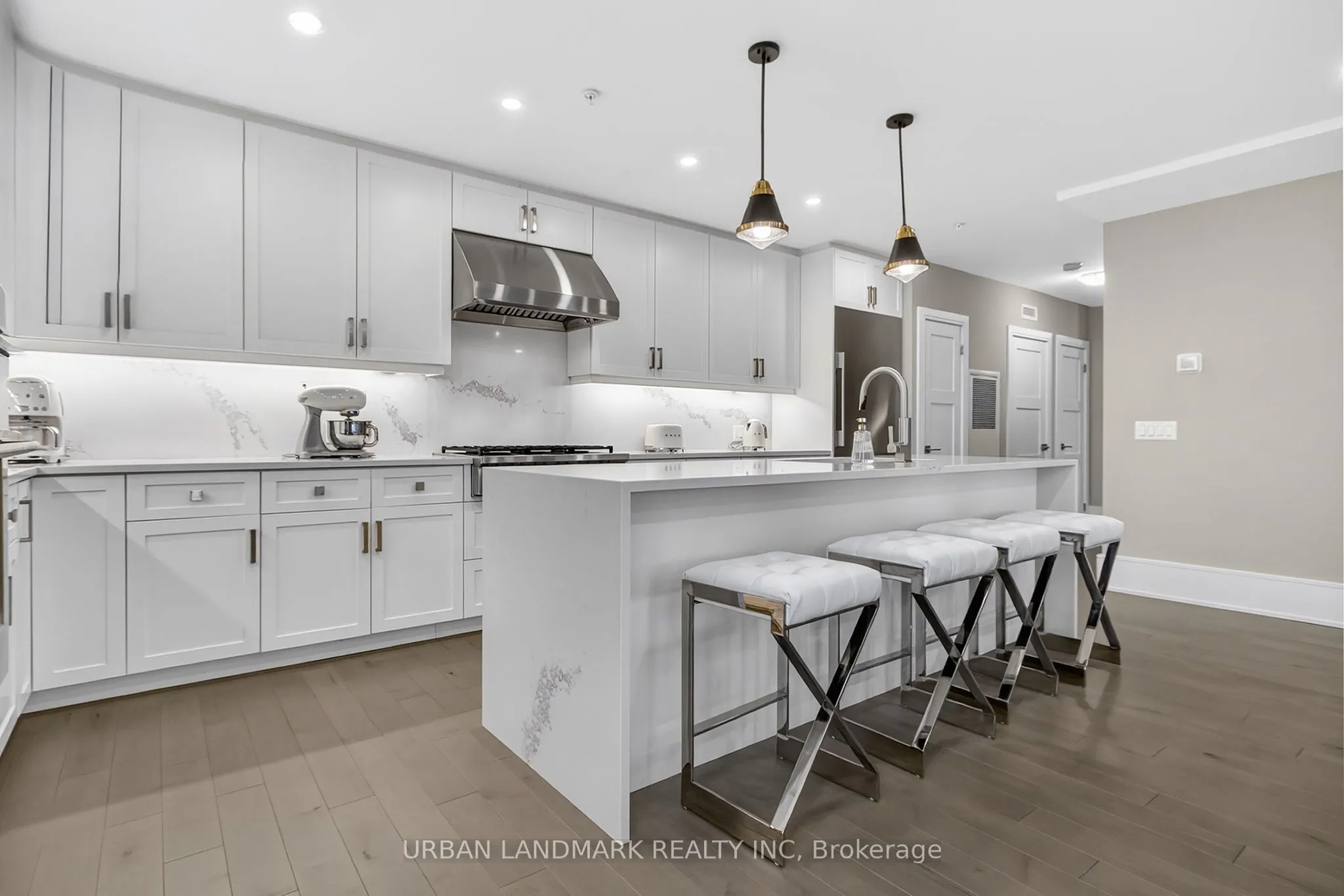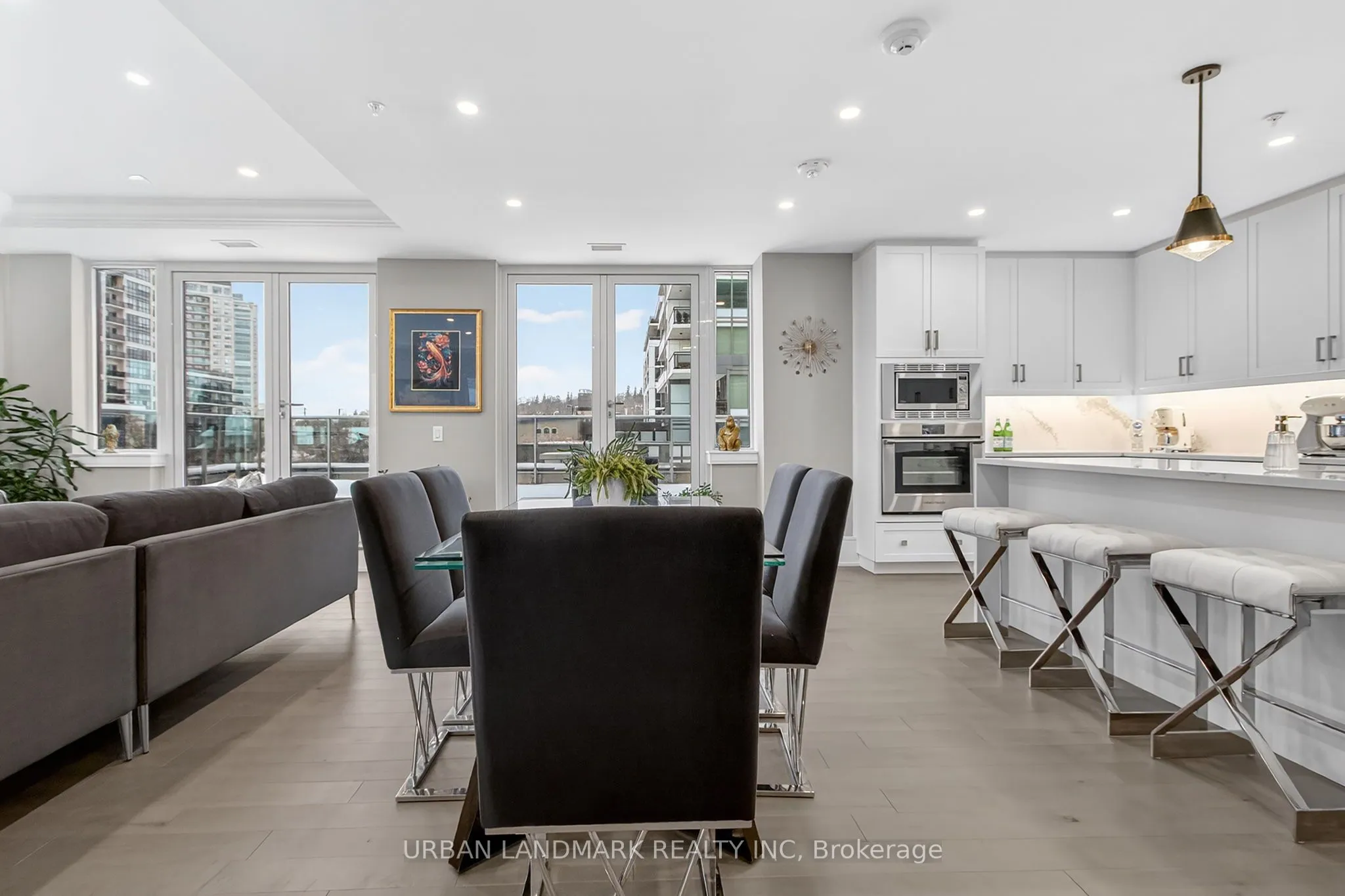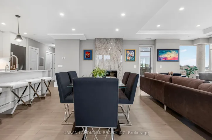 The most coveted River Residence in the entire development is now available for sale. This premier suite offers 3,366 square feet of refined living, including 1,111 square feet of terraces with 110 feet of uninterrupted river and city views. The expansive west-facing windows frame breathtaking sunsets every evening, turning the sky into a daily masterpiece of color and light. The entry sets the tone immediately. Coffered ceilings define an impressive foyer and introduce the level of craftsmanship carried throughout the home. The living room is expansive and bright, framed by oversized windows and anchored by a Dimplex Electric fireplace-an elevated space designed for both quiet evenings and sophisticated entertaining.The kitchen is a true gourmet workspace, equipped with Fisher & Paykel stainless steel appliances, a 6-burner gas rangetop, wall-mount oven, fridge, built in microwave, washer and dryer, quartz countertops, shaker cabinetry, and a waterfall island. Every detail supports both function and style.The primary ensuite delivers a spa-grade experience: a deep soaker tub, double sinks, premium fixtures, and a mosaic shower floor. Additional upgrades include a Samsung stacked washer/dryer, Panasonic microwave, recessed lighting in principal rooms, brushed-nickel hardware, and 5-inch-wide maple grey flooring.Two expansive terraces extend your living space outdoors, providing a private front-row view of the river-ideal for morning coffee, evening cocktails, or larger-scale entertaining.Practical advantages include three parking spaces, two heated storage lockers, and full access to Metalworks’ exclusive amenities, including the private speakeasy. Location advantages: 10-minute walk or 3-minute drive to the GO Station 15 minutes to Highway 401 5-minute drive to the University of Guelph 1 hour to Pearson Airport.