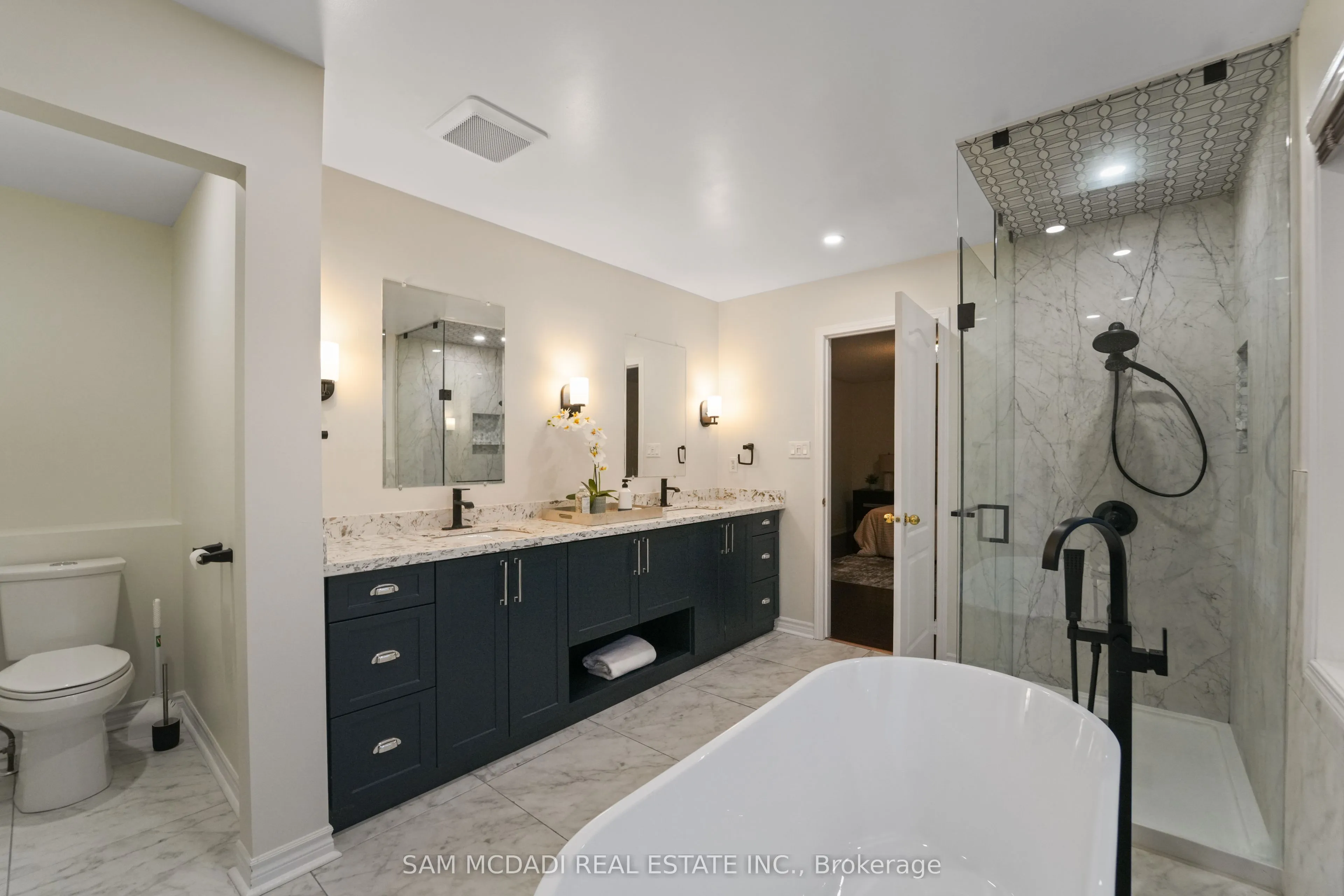 Welcome to this thoughtfully curated residence nestled in Mississauga’s family-friendly Lisgar neighbourhood. Designed for modern family living, this detached home offers 4+2 bedrooms, 4 bathrooms, a nearly 4,000 SF of interior living space. A grand open-to-above foyer with 9-ft ceilings sets the tone, complemented by pot lights, tray ceilings with crown moulding and hardwood floors. The custom-designed kitchen is both a culinary haven as it is functional, featuring premium built-in appliances, granite countertops, a centre island, full-height stone backsplash, and elegant cabinetry with pullout pantry, Lazy Susan, wine rack, cutlery organizers, and lit glass display cabinets. Overlooking the backyard, the great room with a gas fireplace provides a warm space for everyday living, while French doors open to a private main-floor office, ideal for a work from home setup. Above, the primary suite offers a walk-in closet and a newly renovated 5-piece ensuite with soaker tub and glass shower. Three additional bedrooms, one with vaulted ceilings, share a renovated bath with a separate shower and enclosed toilet room. A spacious laundry room with sink completes the upper level. The professionally finished basement includes a second kitchen, 3-piece bath, two bedrooms including one with custom built-ins, a den, and a large recreation area with pot lights and hardwood flooring. This flexible space is ideal as an in-law suite or for income potential. Additional highlights include fresh interior paint, a 2016 roof, and newer windows in select bedrooms. Located in a vibrant, family-focused community just minutes from top-rated schools, scenic parks, playgrounds, walking trails, community centres, and Meadowvale Town Centre. Enjoy quick access to Osprey Marsh, Lisgar GO Station and major highways 401, 403, and 407 for easy commuting. This is a rare opportunity to own a beautifully updated, move-in ready home.