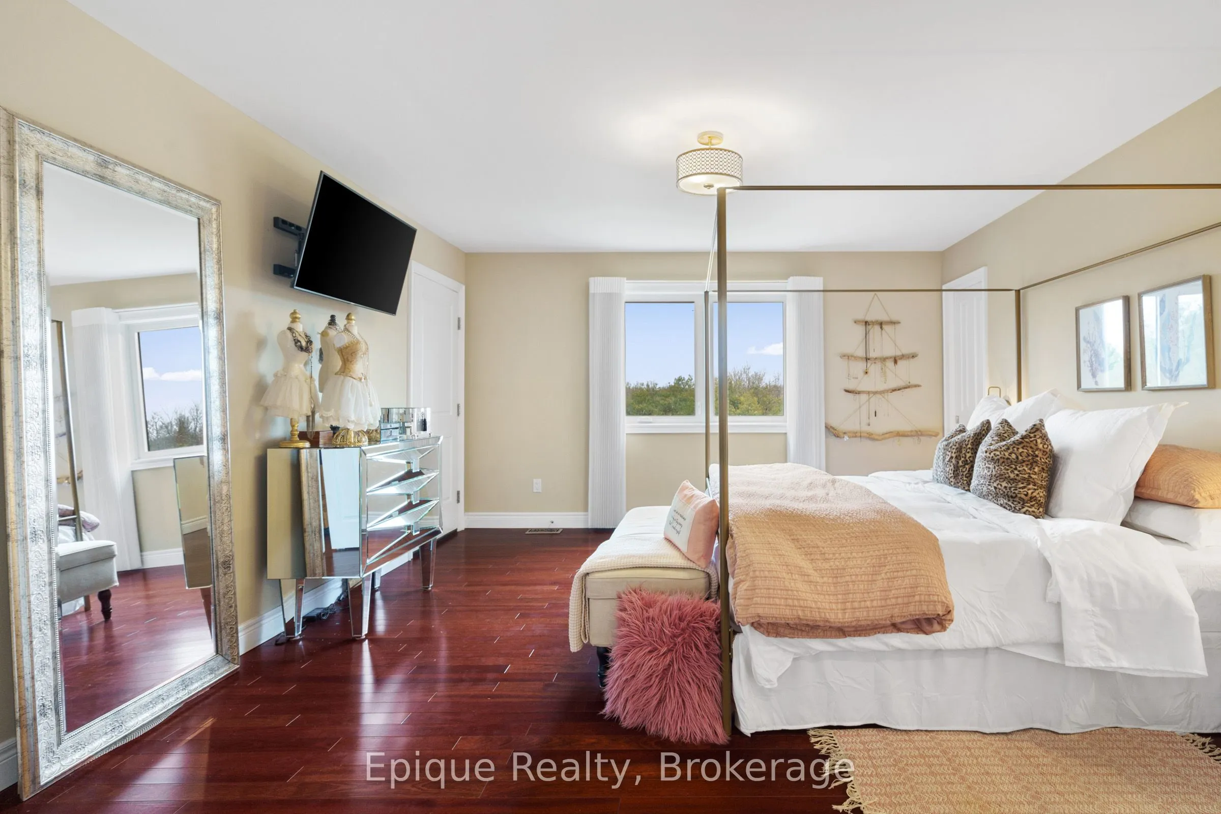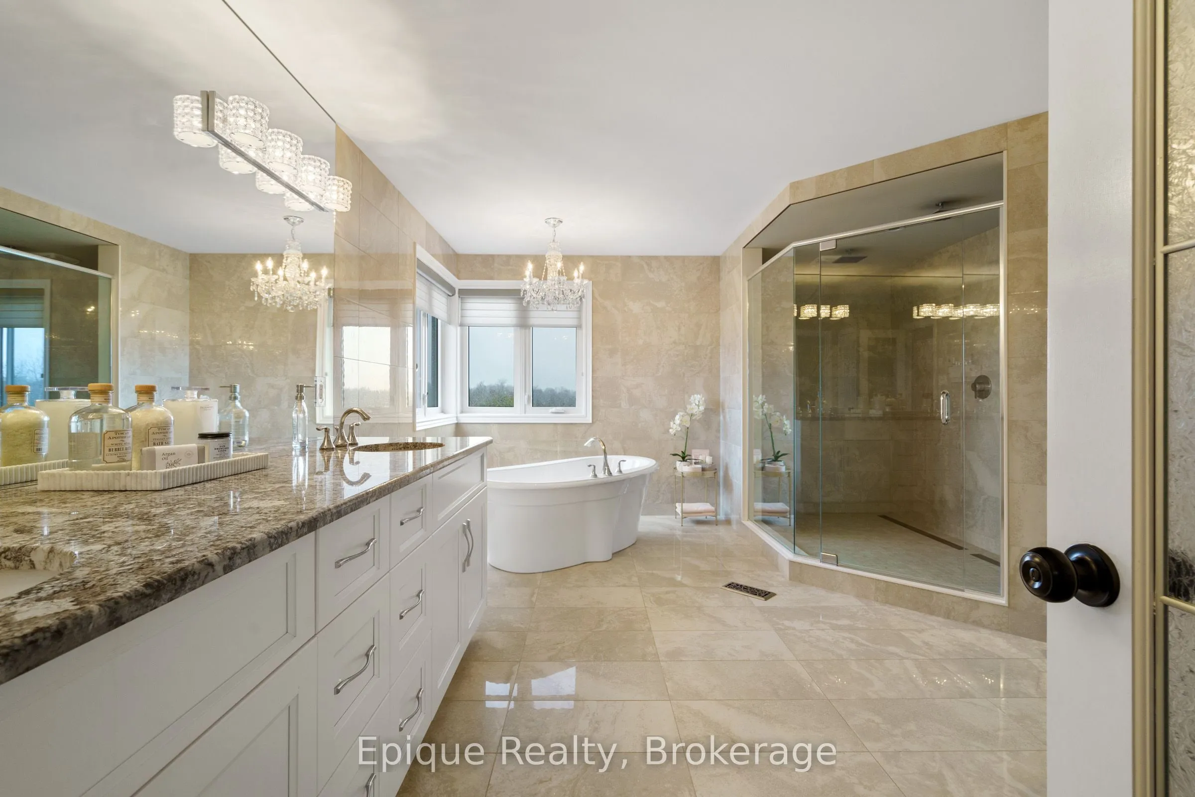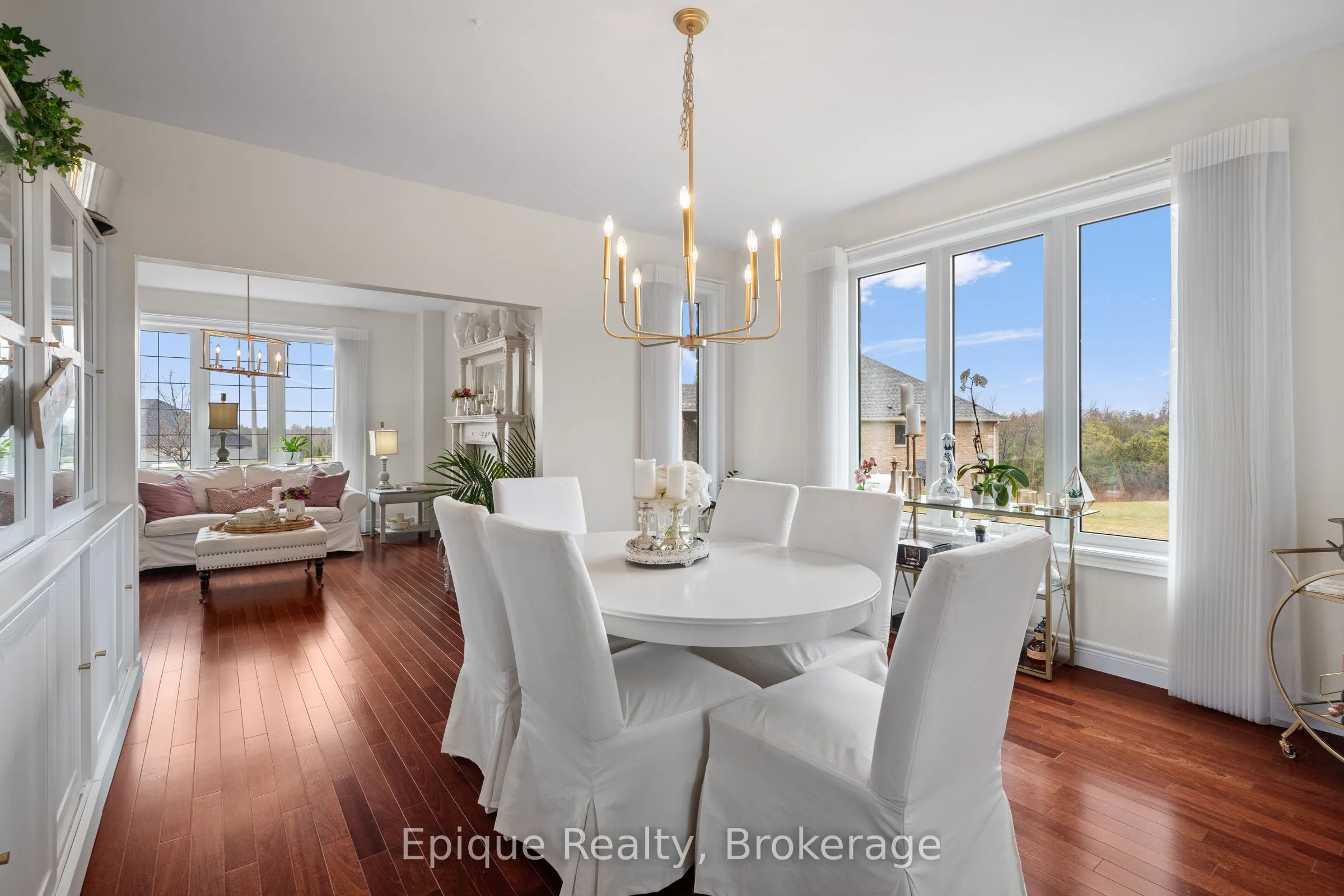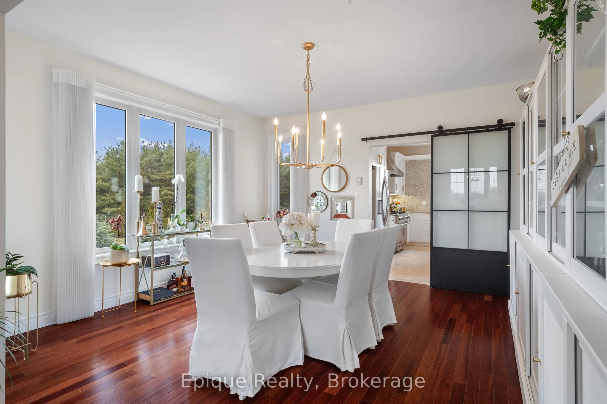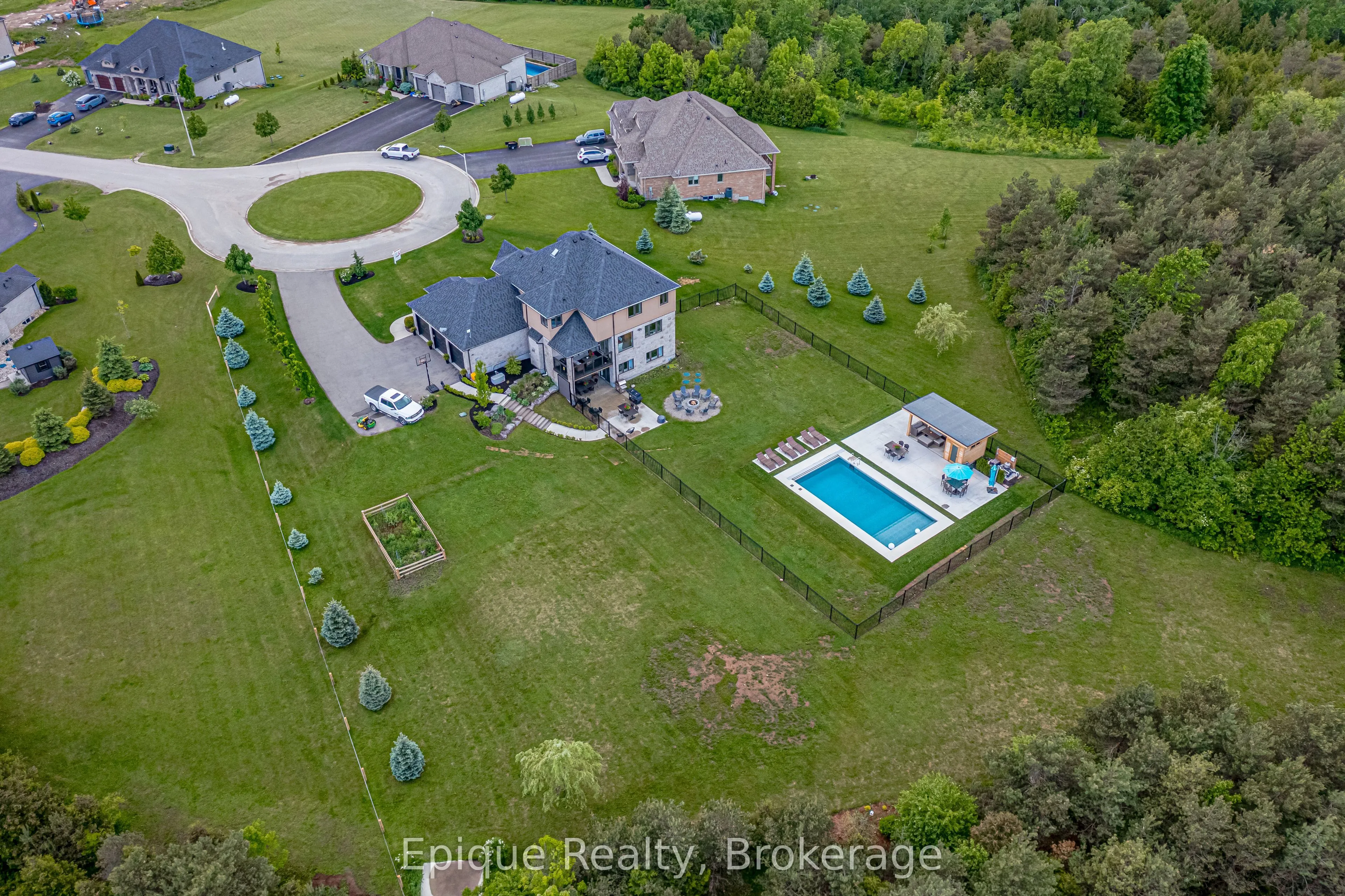 Luxury lives in this Thomasfield-built trophy home in coveted Crewson Ridge Estates. Situated on 3.4 acres of with no rear neighbours, it features 6 bedrooms, 5 bathrooms, and over 5,200 sq.ft. of finished space. Highlights include 2 kitchens, a heated saltwater pool (built in 2023) with an automated safety cover, geothermal heating, and a lavish primary suite with an 8-piece ensuite, walkout basement w/ rental potential incl. 2 add’l bedrooms and a separate entrance. A backup generator and energy-efficient systems complete this turnkey estate. A two-story grand entrance with 9′ ceilings and luxurious finishes, including heated marble floors and scratch-resistant engineered cherry wood floors. Custom Kitchen: Paragon-designed with quartz counters, slab backsplash, soft-close cabinetry, extraordinary storage space, and a striking massive cherry wood island. Outfitted with Brigade commercial-grade appliances for a chefs dream. Living & Dining Areas: Spacious and elegant, designed for entertaining.Family Room: Cosy gathering space featuring shiplap feature wall and gas (propane) fireplace. Upper Floor: Primary Suite: Features two walk-in closets, an 8-piece ensuite with heated floors, and a versatile adjacent space for an office or nursery. Bedrooms: Three additional generously sized bedrooms, offering ample privacy and comfort for family or guests. Walkout Basement: Self-Contained Living Quarters: Offers 1,823 sq. ft. with 9′ ceilings, two bedrooms, two bathrooms, and a full kitchen with quartz counters. Large above-grade windows, a family room, office or gym space, and a separate entrance, ideal for rental or multi-generational living. Outdoor Amenities: Heated inground saltwater pool with an automated safety cover, pool cabana, lush forested 3.4-acre property.This exquisite estate seamlessly blends elegance, comfort, and functionality, perfect for luxurious living.