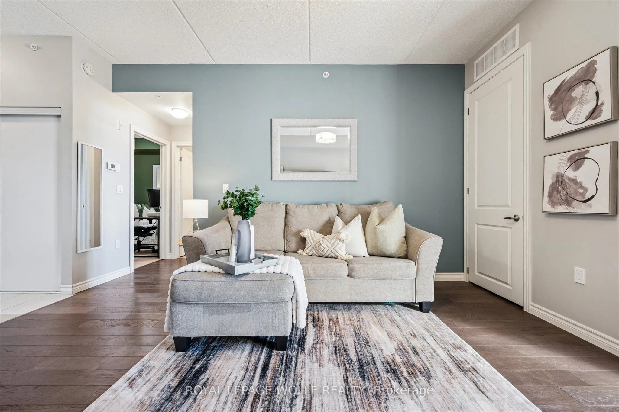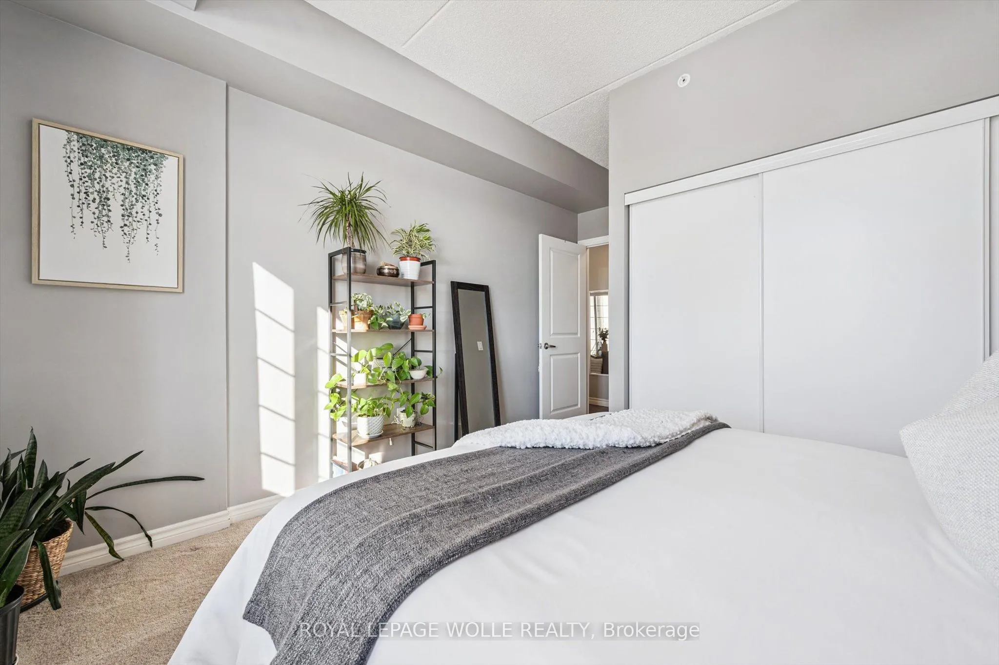 Welcome to this stunning and meticulously maintained one bedroom plus den condo in Guelph’s sought-after south end, complete with a dedicated parking space and a convenient storage locker located on the same floor. This sunlit unit boasts 9 ft ceilings, oversized windows, and tastefully updated hardwood flooring in the living area and carpet in the bedroom creating a bright and welcoming atmosphere. The open concept layout is flooded with natural light, making the space feel airy and spacious. The versatile den offers endless possibilities as a home office, study, or guest room, catering to your specific needs. The modern kitchen offers plenty of space and is fitted with granite countertops, a breakfast bar, updated appliances, backsplash, and seamless access to the stackable laundry closet. Enjoy your morning coffee or unwind after a long day on the private balcony that overlooks serene green space, providing a peaceful retreat right at home. The prime location is unbeatable, just minutes away from the University of Guelph, Stone Road Mall, grocery stores, restaurants, and the bus station, with easy access to the 401 for commuters. Whether you’re a first-time buyer, downsizing, or investing, this well-appointed condo offers a fantastic opportunity in a highly desirable south-end location, with every convenience at your fingertips. Don’t miss your chance to call this beautiful condo your new home!