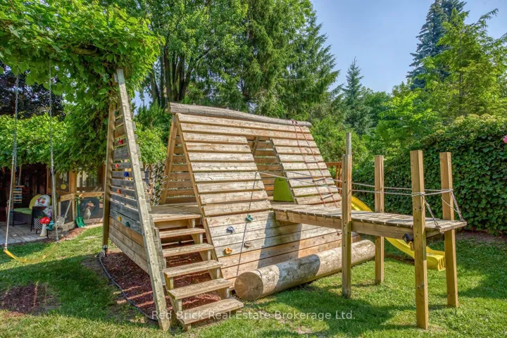 Updated 3 Bedroom Side Split in Stanley Park with backyard oasis! Perfectly located in the leafy, friendly Stanley Park neighborhood, walk to schools, parks, shopping and conservation area. This updated 3 bedroom sidesplit has a bright, open main floor layout, a huge eat in kitchen with new sliding glass doors, 3 generous bedrooms (the principle bedroom fits a king size bed!), an updated bathroom, and ample closet and storage spaces. The basement is nice and bright thanks to two big windows and has a large finished rec room big enough to also be an office, gym or guest bedroom. The unfinished portion has great storage ( a fabulous crawl storage space under the kitchen) and a huge built in work bench. This home boasts a glorious 56×134 ft lot, fully fenced with delightful play structure, greenhouse, chicken coop and sheds surrounded by mature perennial gardens. Many places to sit and enjoy your privacy or host friends and family for a bbq, picnic or garden party. You may never want to leave your backyard! Furnace and AC 2018, sliding glass doors 2025, luxury vinyl plank flooring 2025, freshly painted throughout. Come and see it today!