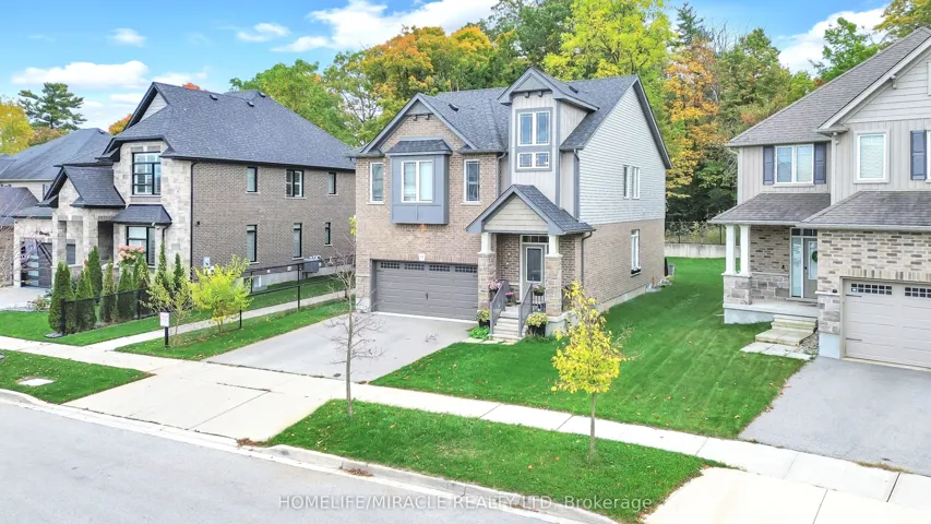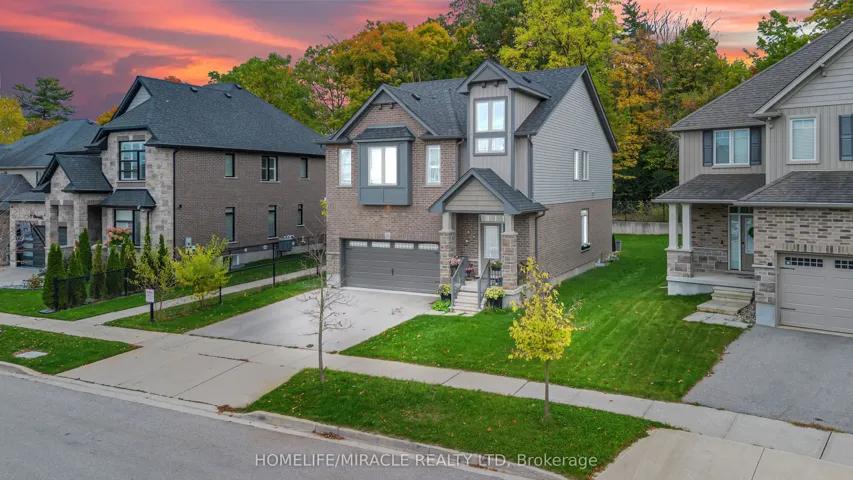 Premium Ravine Lot!Welcome to this stunning home offering approximately 2,385 sq ft of elegant living space plus a builder-finished basement with a full bath. Built in 2017 and meticulously maintained, this home sits on a wide premium lot backing onto a beautiful greenbelt, ensuring privacy and serene views. The owners invested nearly $100K in lot and upgrades, making this a truly exceptional property.Premium Ravine Lot no rear neighbours, green belt behind 9 ft ceilings with an open-to-above foyer for a grand entrance Bright, open-concept layout with living, dining & spacious family room Elegant oak staircase with metal pickets Spacious primary suite with ensuite bath + 2 additional large bedrooms Finished basement by builder featuring a 4-pc bathroom and extra living space Double car garage with ample parking Located on a quiet, kid-friendly street Minutes to Hwy 401 perfect for commuters Close to Conestoga College, schools, shopping, and all amenities Family-oriented neighbourhood surrounded by nature trails & parks Finished top to bottom and move-in ready, this home combines comfort, functionality, and premium upgrades perfect for families looking for both style and convenience! Don’t Miss it before it sold