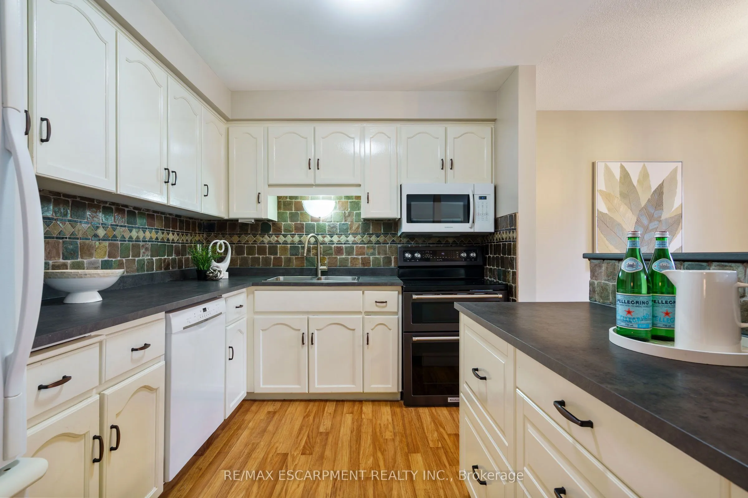 Welcome to 85 Chelsea Crescent in Sherwood Village! This beautifully maintained 3-bedroom, 3-bathroom freehold townhome is located in highly sought-after Lower Stoney Creek and offers a rare double-car garage with inside entry, garage door opener, and double driveway. Inside, you’ll find a bright open-concept living and dining area that flows into the updated kitchen, complete with a large breakfast bar-perfect for family time and entertaining. The main floor features newer laminate flooring, and the dining room opens through sliding doors to a lovely two-tier deck with a gas BBQ hookup and a fully fenced backyard. Upstairs, there are two bedrooms plus a full main bath, along with a private principal suite on its own level, featuring a 2-piece ensuite and two large closets. The additional bedrooms also offer generous closet space. The finished lower level provides even more living space with a spacious family room, plenty of storage, and a convenient 3-piece bathroom with a separate shower. The home has been freshly painted, and the exterior showcases well-kept landscaping-making it completely move-in ready. All of this in a quiet, family-friendly location, close to schools, parks, shopping, churches, and with easy access to the highway. Property is virtually staged.
