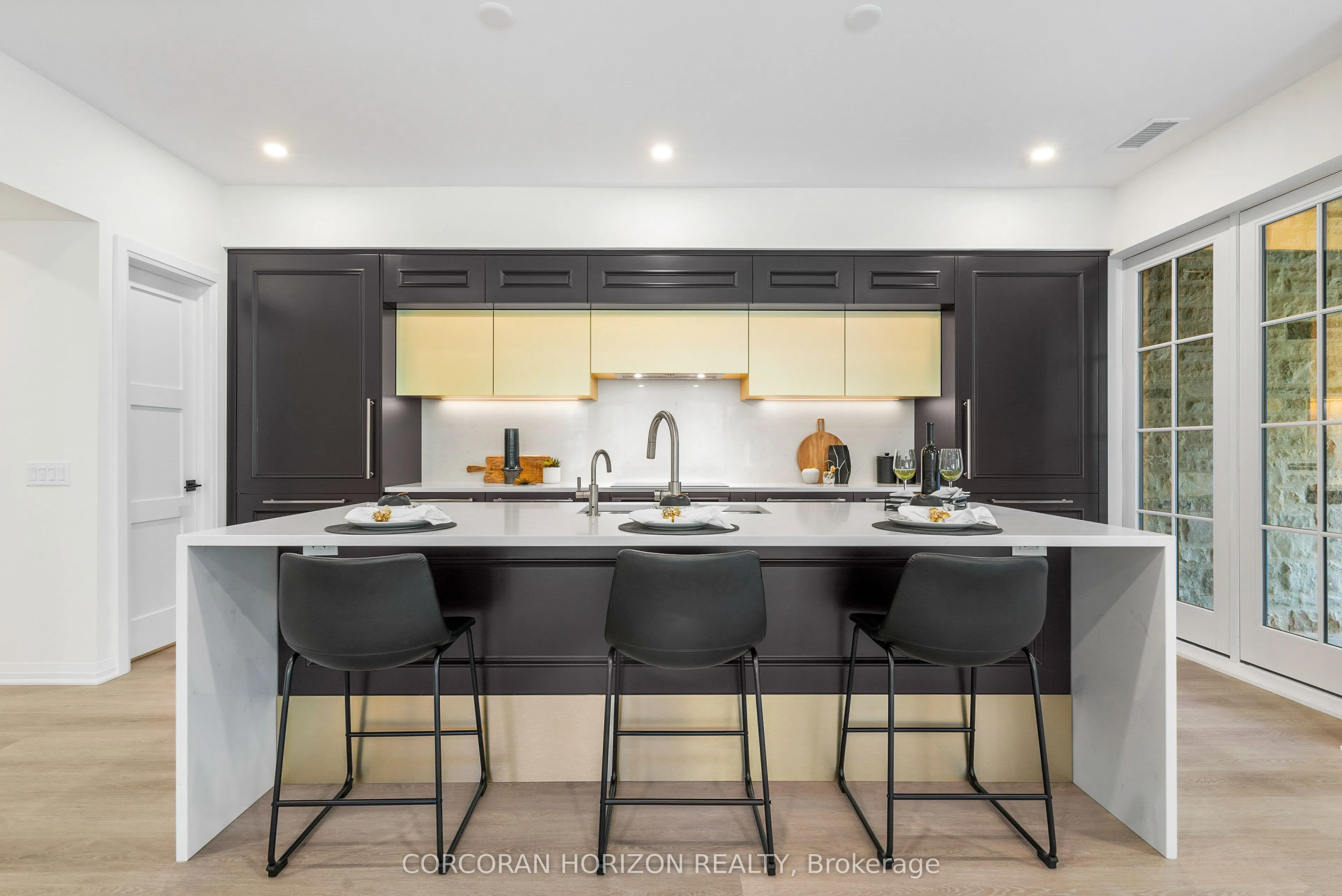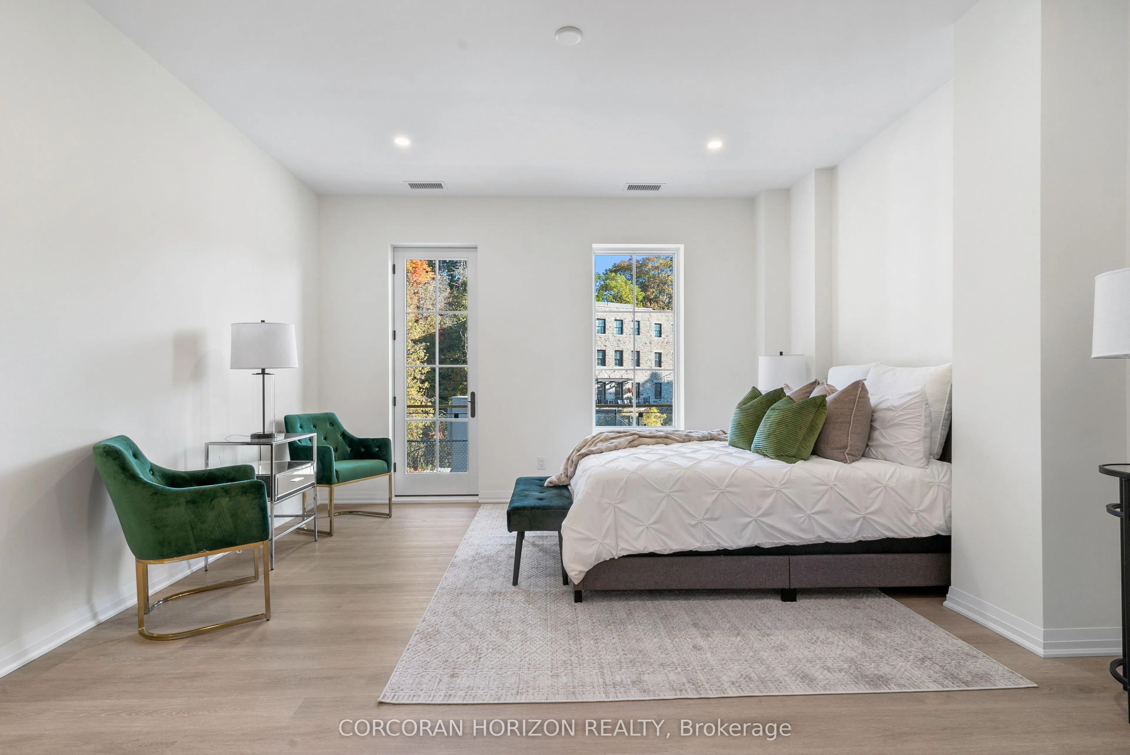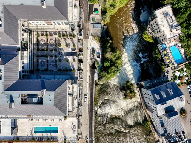 This one of a kind 2 bedroom plus den, 3 bath suite is an expansive 2,330 sq ft Custom Residence. Perfectly designed with a traditional home layout, its ideal for downsizers transitioning to condo living offering plenty of space and the ability to keep your large furniture. The open concept layout includes 10′ ceilings and features a spacious kitchen with a large island with seating for four, and a rare walk-in pantry. A walkout leads to a private patio, perfect for outdoor dining and relaxation. The generous dining room accommodates a large table and is surrounded by windows with views of lush greenery. The open living room, with a cozy gas fireplace, offers space for multiple seating areas. Wall-to-wall windows frame stunning views of the Elora Gorge, the Elora Mills stonework, and Tranquil River views. Retreat to one of two expansive primary suites, each with walk-in closets, ensuite bathrooms, and walkouts to a private balcony overlooking the river. Fall asleep to the soothing sounds of flowing water. A versatile den is ideal for an office, TV room, or guest room. Additional highlights include being the only residence in the building with large laundry room complete with cabinetry and sink, gas fireplace, indoor parking with EV charger, and a storage locker just steps from the front door. Located on the highly desirable riverside trail level, this unit is especially appealing to pet owners and those who value the option of having direct access without reliance on an elevator. Just steps from Elora’s top restaurants, shops and cafes, residents also enjoy resort style amenities including a Concierge, Lobby Coffee Bar with daily fresh pastries, Furnished Outdoor terrace, Elegant Lounge and Party Room, Fitness Center, Yoga Studio and Outdoor Pool with Spectacular River Views!!