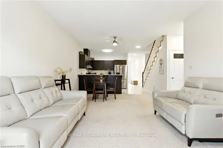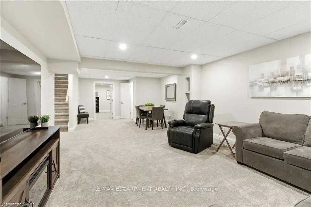 Unique 2-storey townhome with complete main floor living in desirable Binbrook. This spacious 4-bedroom, 4-bath home includes 2 office spaces and is located in a safe, family-friendly complex. Unit #20 backs onto greenspace with a walking trail. The main floor offers an open-concept kitchen, dining and living area with gas fireplace and 9 ft ceilings, a primary bedroom with 3pc ensuite, office, and laundry. Upstairs features 2 large bedrooms and a full bath overlooking the yard. The lower level, finished in 2023, includes a family room, play area, bedroom, 2pc bath with space to add a shower, office, and utility/storage room. Upgrades and thoughtful finishes throughout.